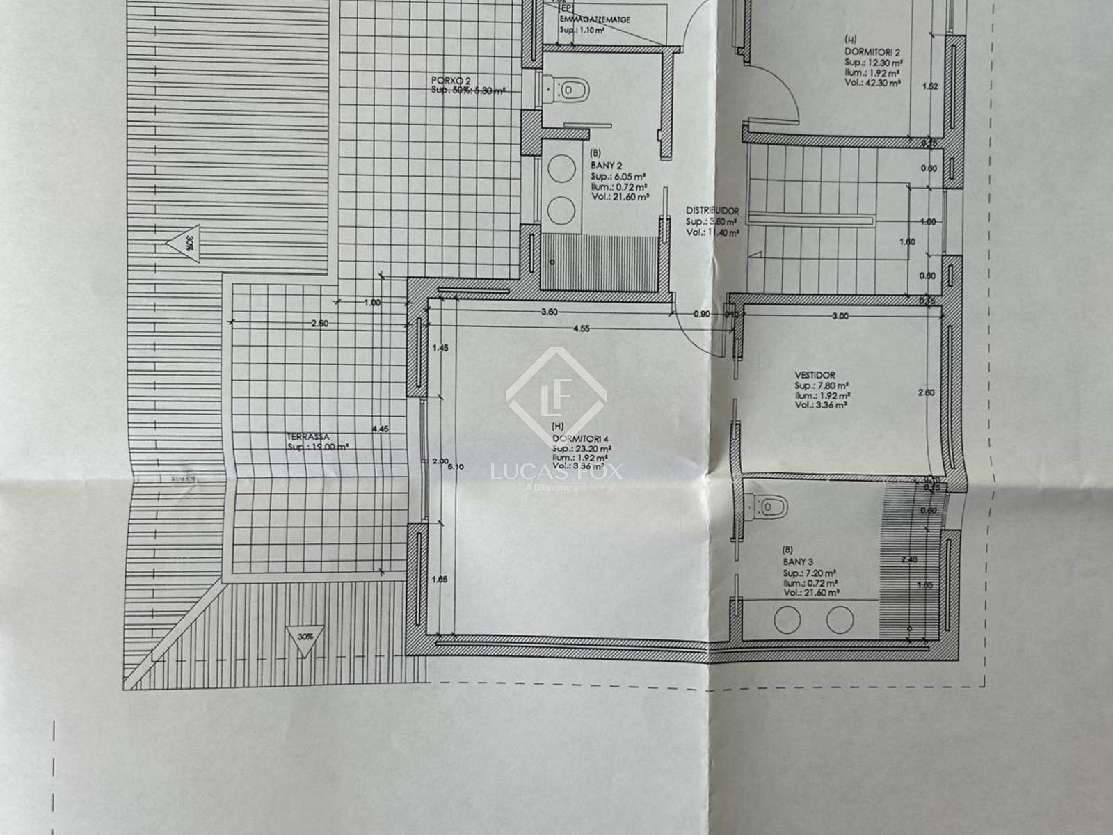 O andar superior abriga os quartos. O destaque é a suíte principal de quase 40 m², que oferece um verdadeiro refúgio privativo com banheiro completo e closet. Neste mesmo andar, encontram-se dois quartos de casal adicionais e um banheiro completo, proporcionando amplo espaço e conforto para toda a família. O terraço neste andar oferece vistas agradáveis para o mar e para o Castelo de Tamarit.