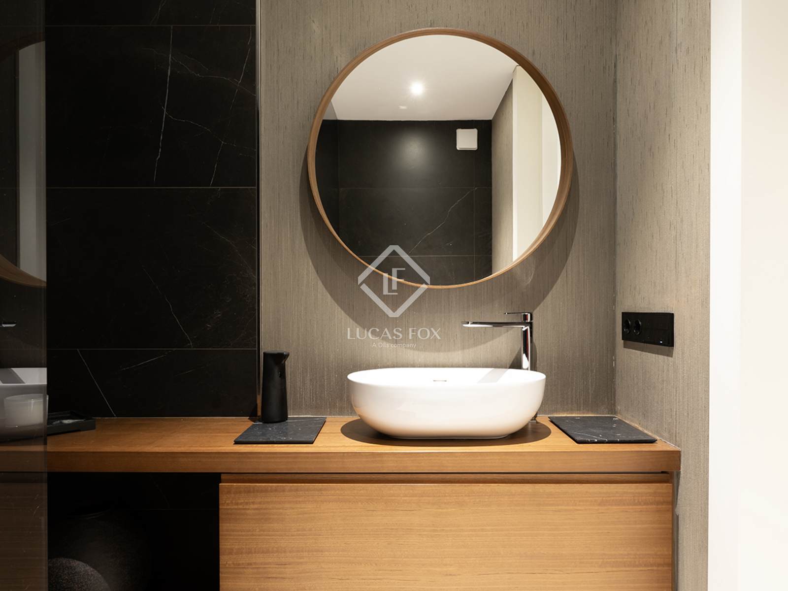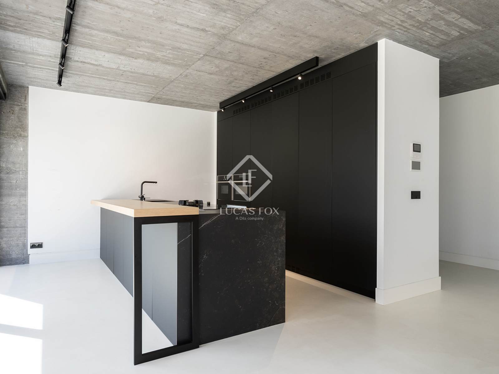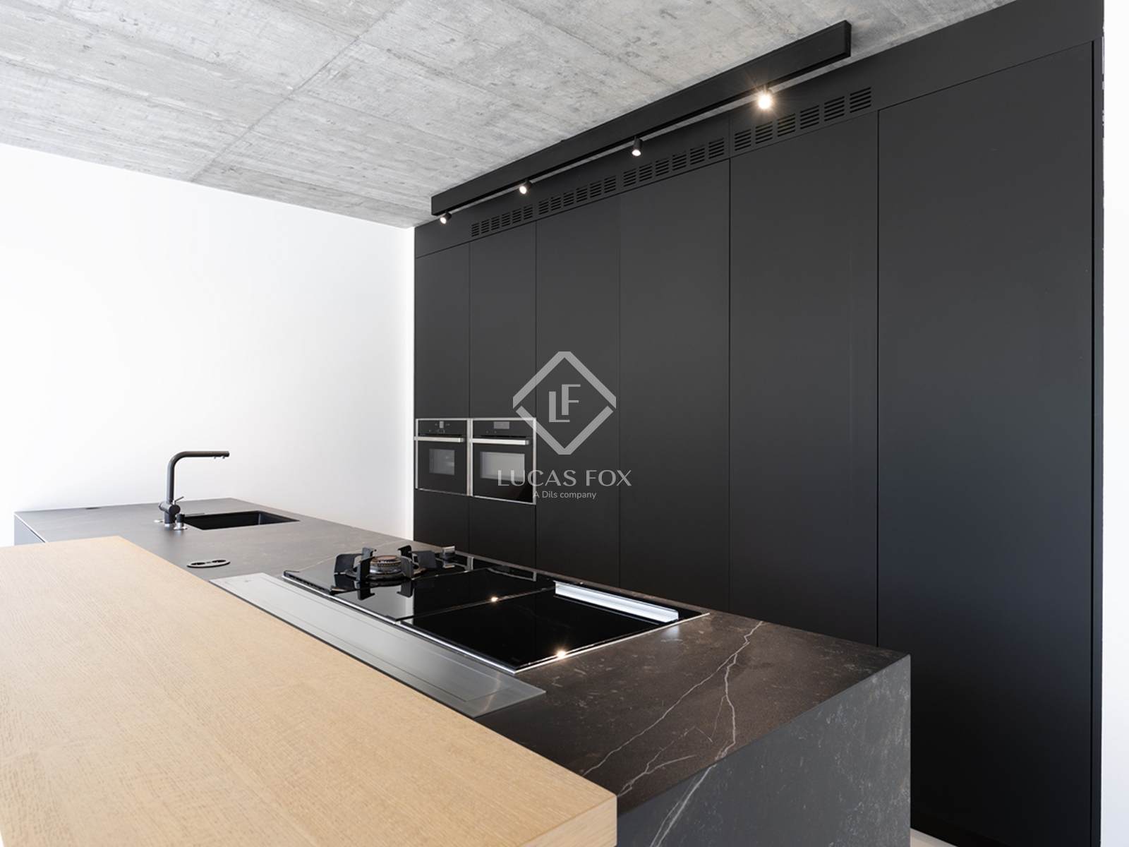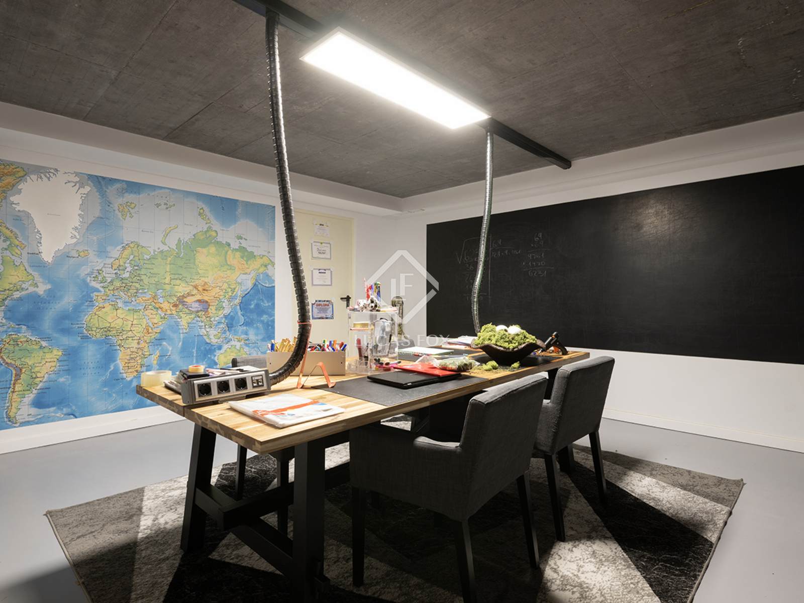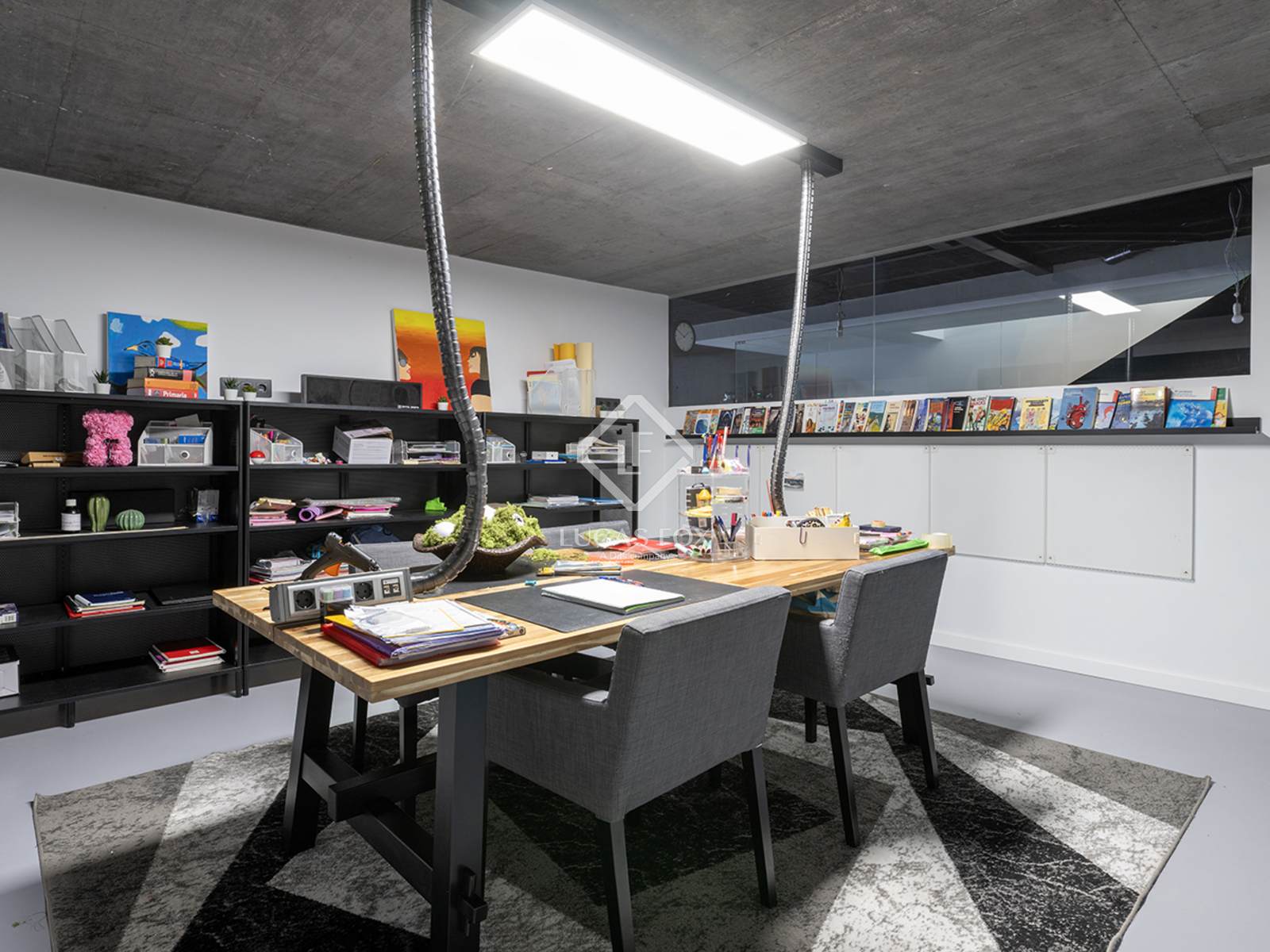No térreo, encontramos uma ampla área aberta, com muita luz natural proporcionada pela fachada envidraçada, voltada para o sul, dando à casa a orientação perfeita para aproveitar o sol o dia todo no terraço externo à área de estar e, claro, à piscina. A cozinha e a sala de estar são integradas, com concreto aparente e um toque industrial, além de instalações de alta qualidade. A sala de estar tem vista para o jardim e a área da piscina, com o lado sul da casa sendo quase inteiramente envidraçado.