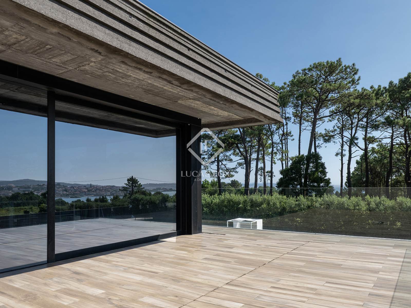 Uma elegante vila contemporânea com piscina aquecida, vistas deslumbrantes do mar e privacidade, localizada a poucos passos de uma linda praia, construída recentemente com o design como prioridade, no estuário de Arousa.