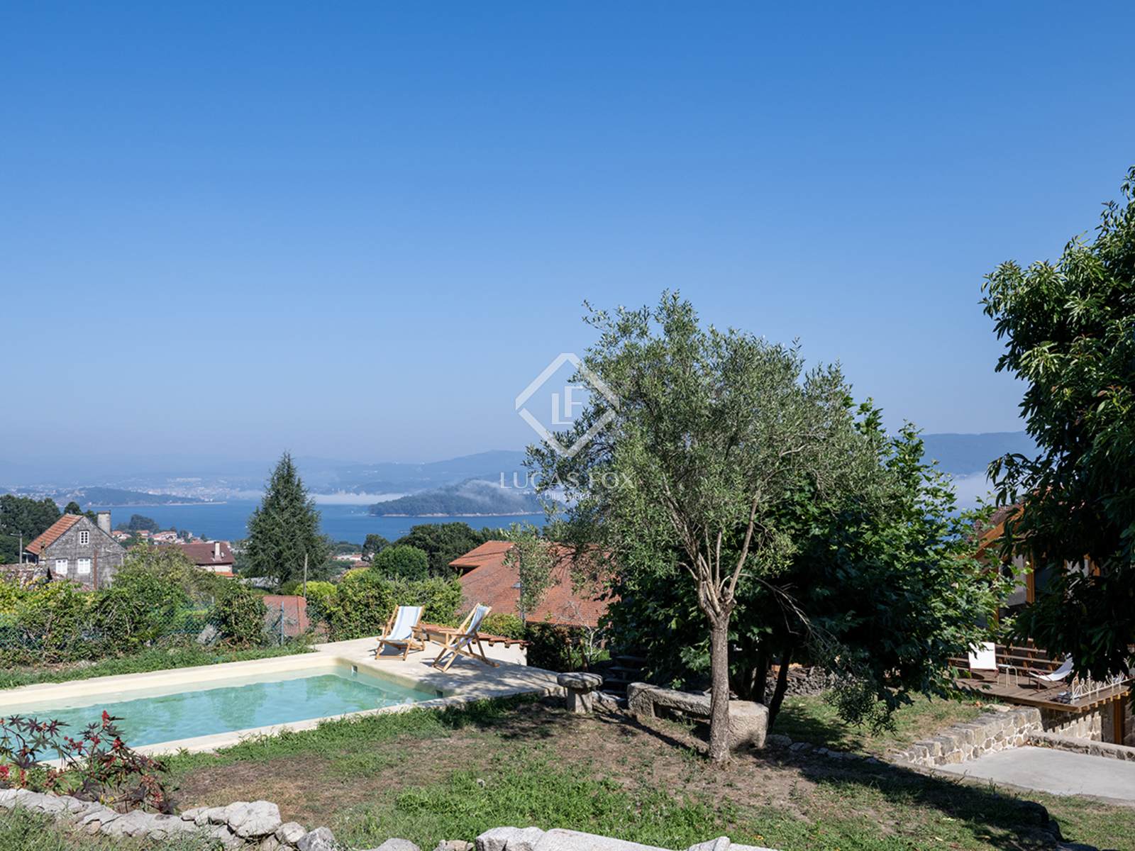 Com vista para o estuário de Pontevedra a partir do seu miradouro elevado, esta deslumbrante propriedade é uma joia escondida. Situada em Samieira, entre a cidade costeira de Sanxenxo e a cidade de Pontevedra, com a vila de Combarro e uma seleção de praias de areia a cinco minutos de carro.