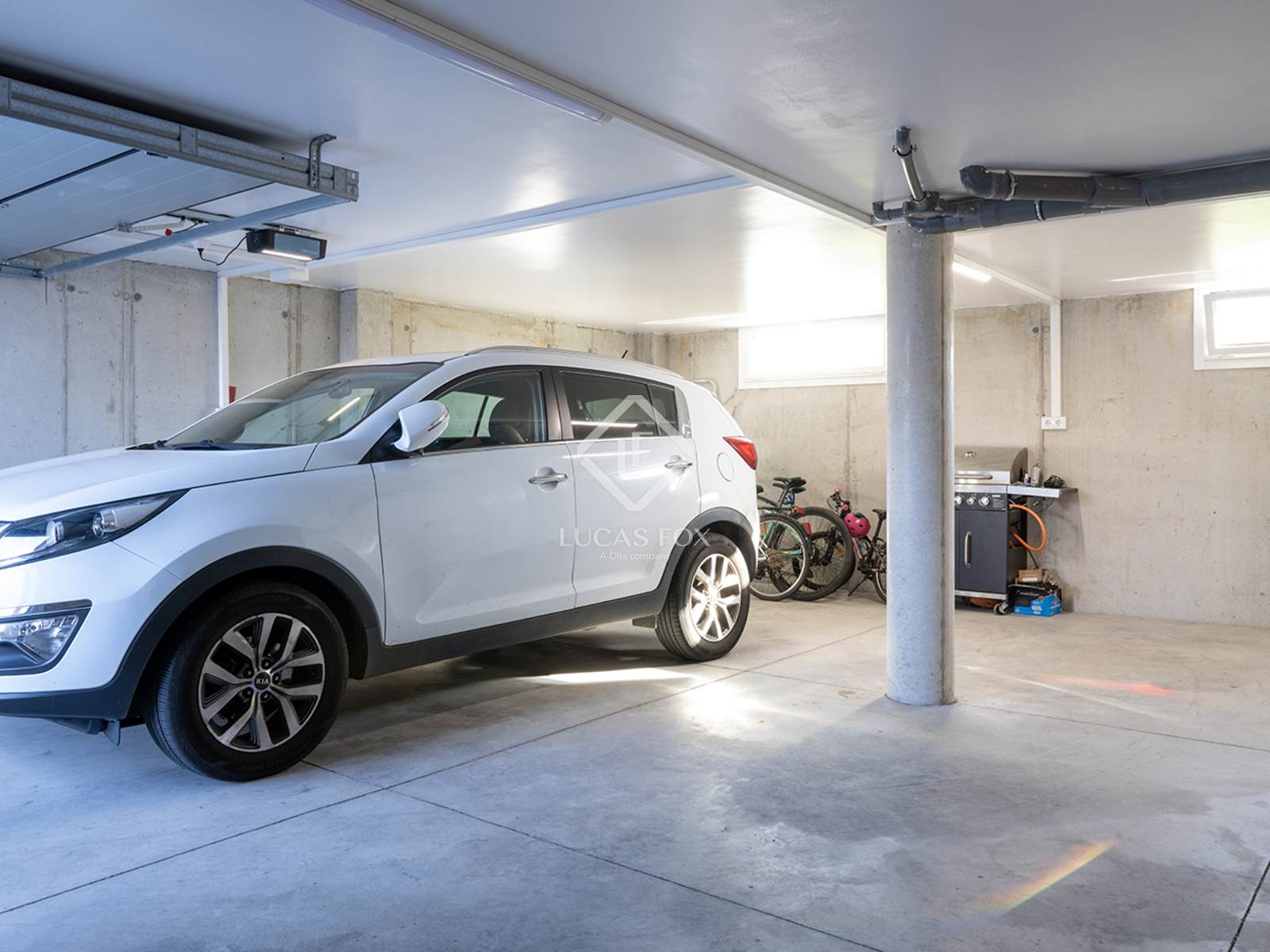 A propriedade está localizada em uma área residencial da ilha, em um pequeno terreno, e possui garagem privativa no subsolo. Do lado de fora, tem uma aparência contemporânea, mas é construída principalmente com pedra tradicional.