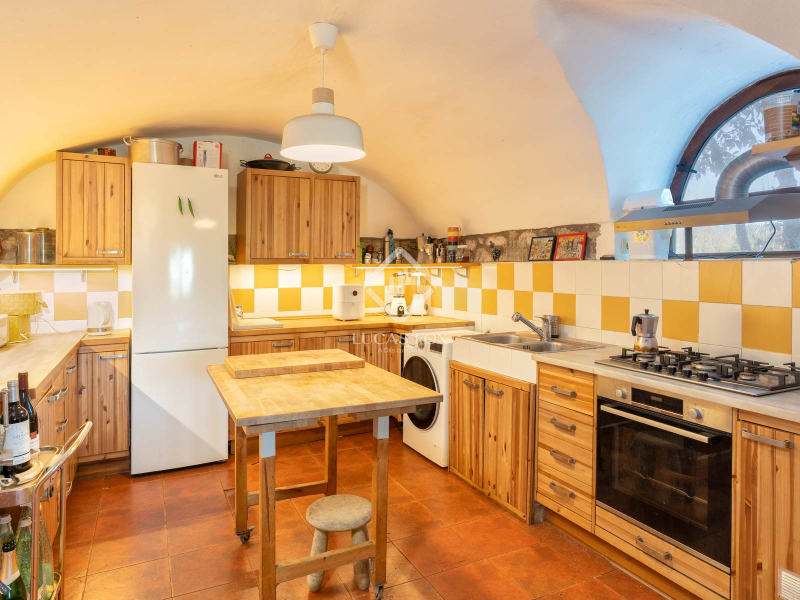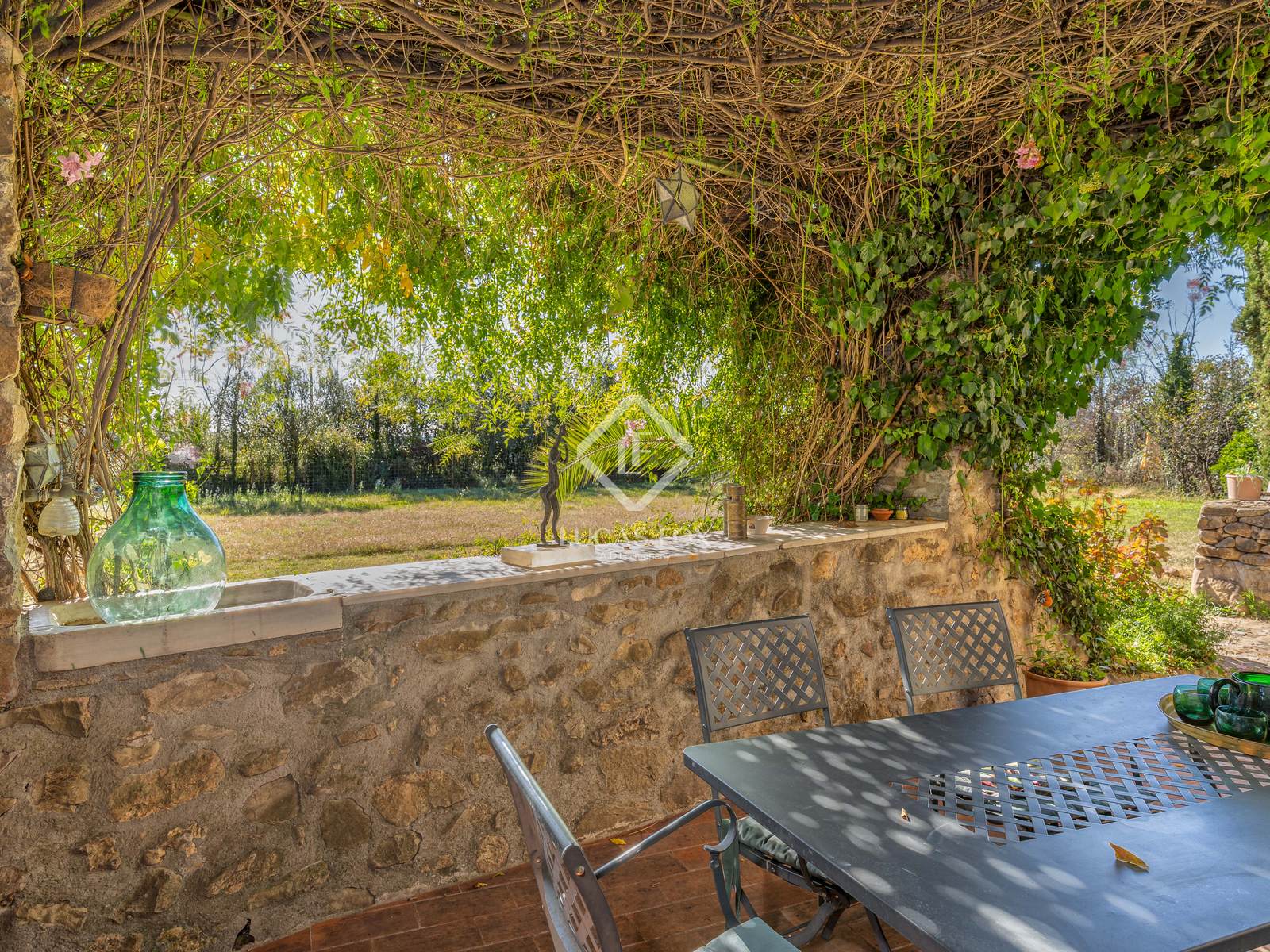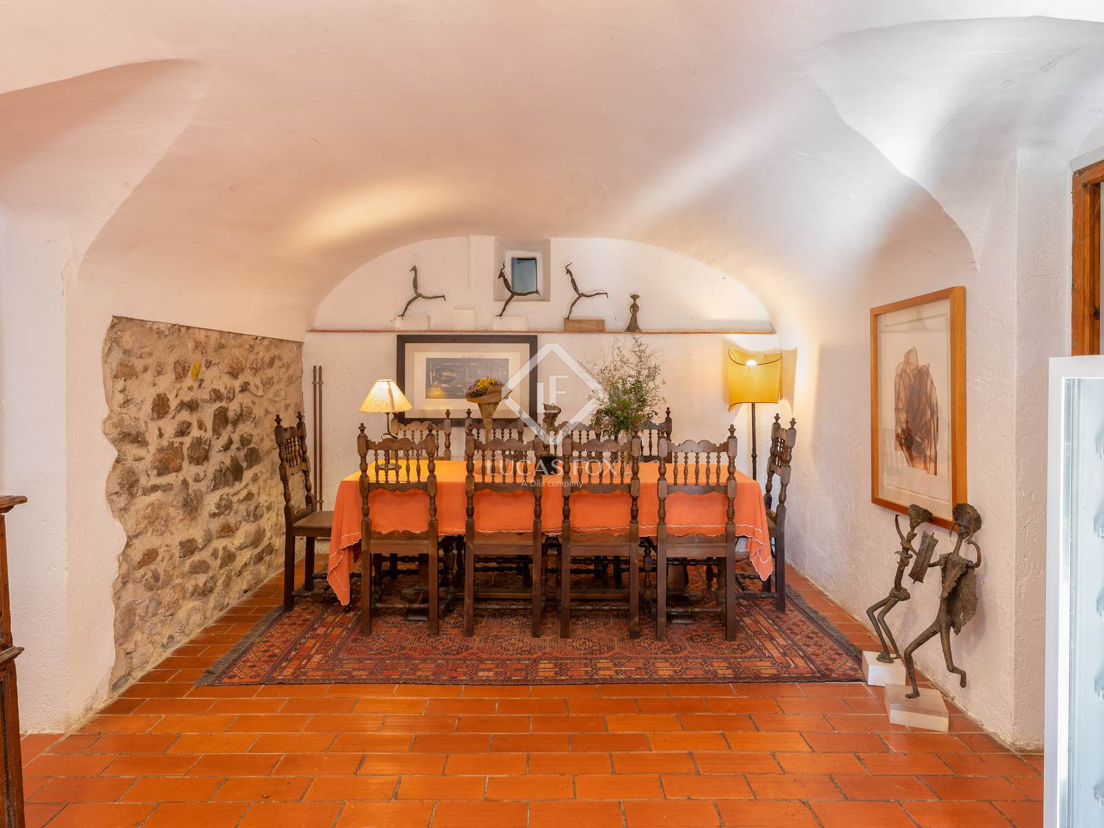 A propriedade, com aproximadamente 390 m² de área útil, conserva o caráter das tradicionais casas de campo catalãs: paredes de pedra, tetos com vigas aparentes e ambientes banhados por luz natural. Sua essência é simples, e sua atmosfera acolhedora convida a desfrutar do ritmo tranquilo da vida no campo em cada canto.