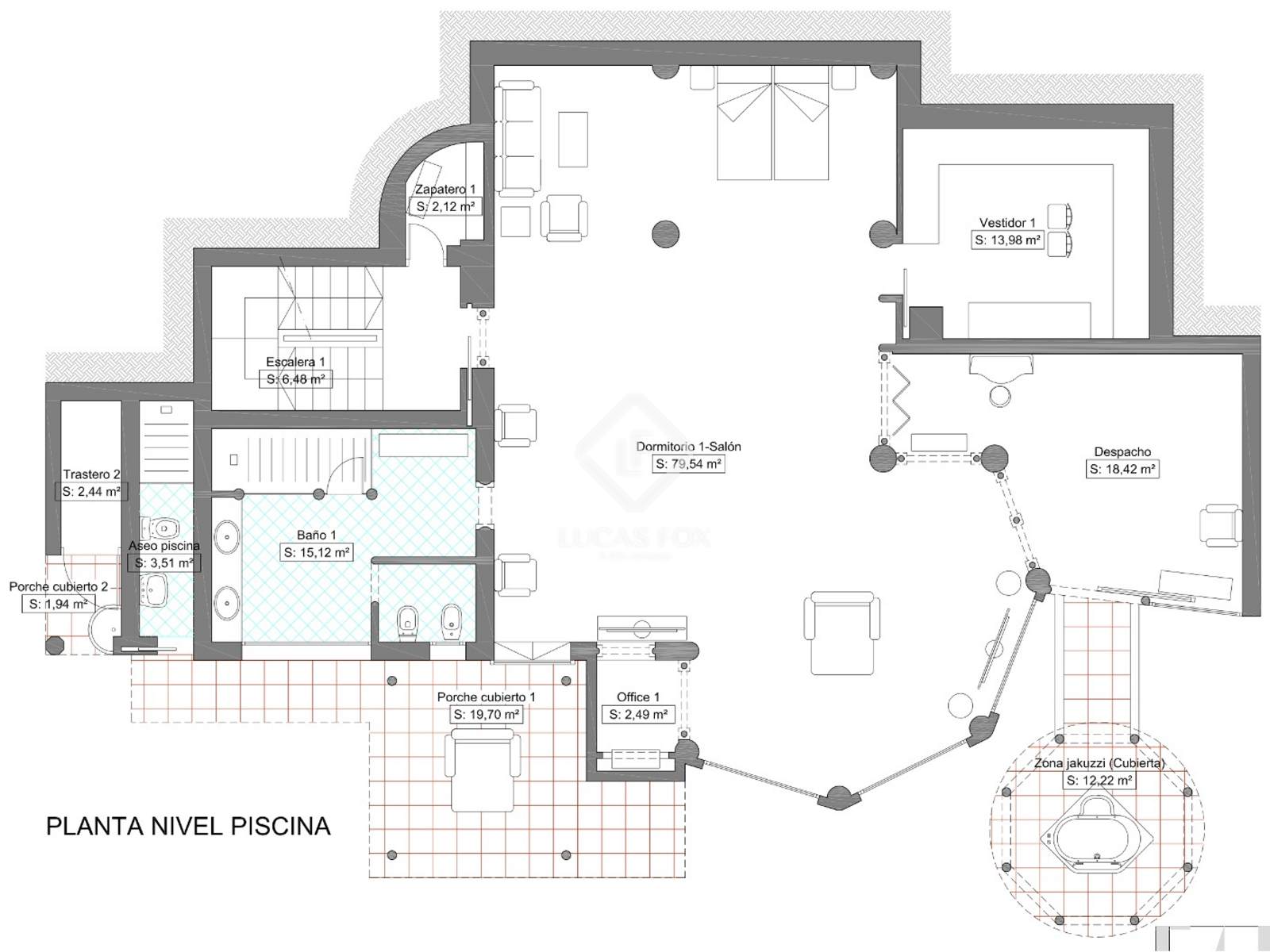 - Suíte com quarto, banheiro completo, área de escritório, frigobar, closet e acesso à jacuzzi.