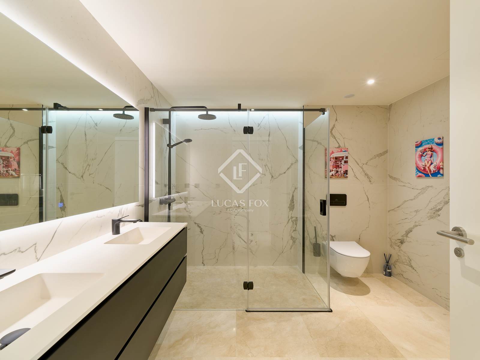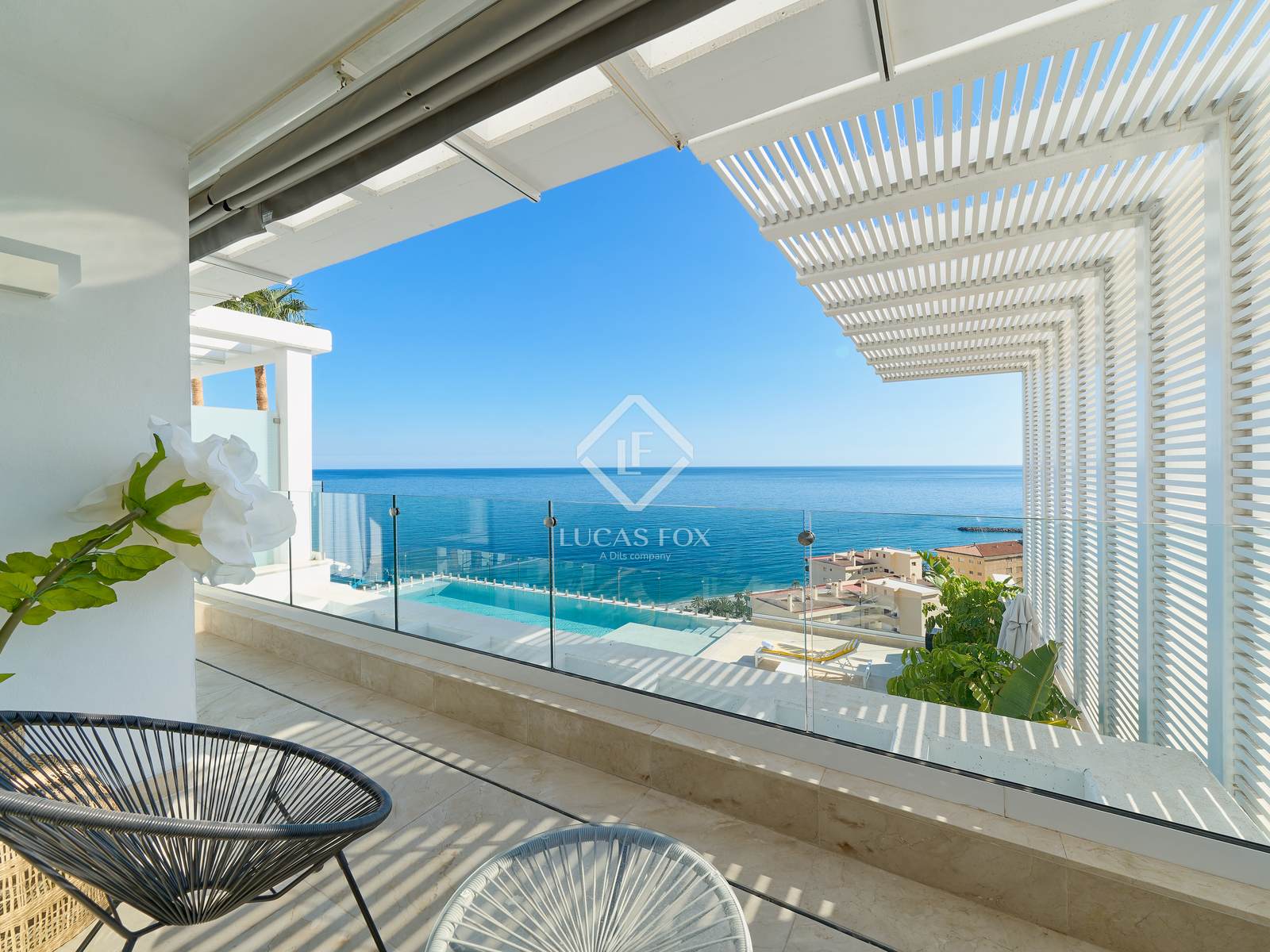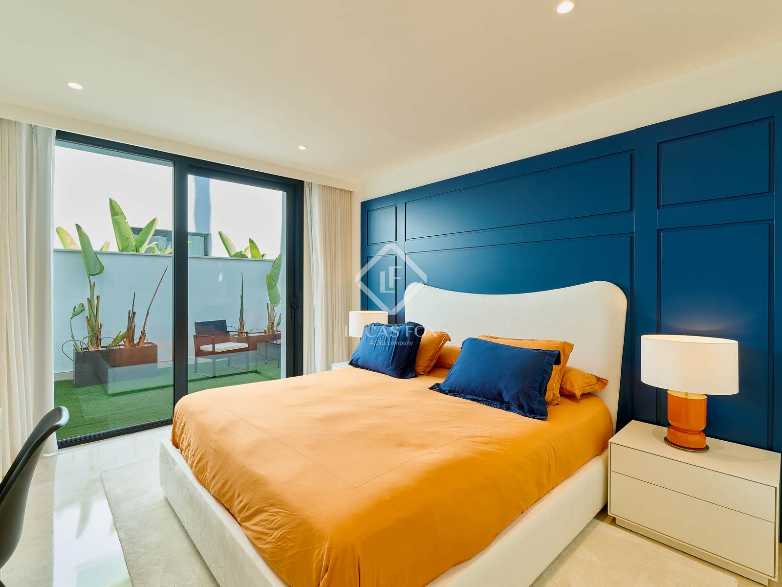 O andar superior abriga a área de dormir, dominada por uma majestosa suíte principal de 35 m² com banheiro privativo com banheira e chuveiro, closet e terraço privativo com jacuzzi, oferecendo vistas espetaculares do Mediterrâneo. Os outros dois quartos, ambos com banheiro privativo e guarda-roupas embutidos, compartilham um terraço. Por fim, um elegante escritório completa este andar, ideal para teletrabalho.