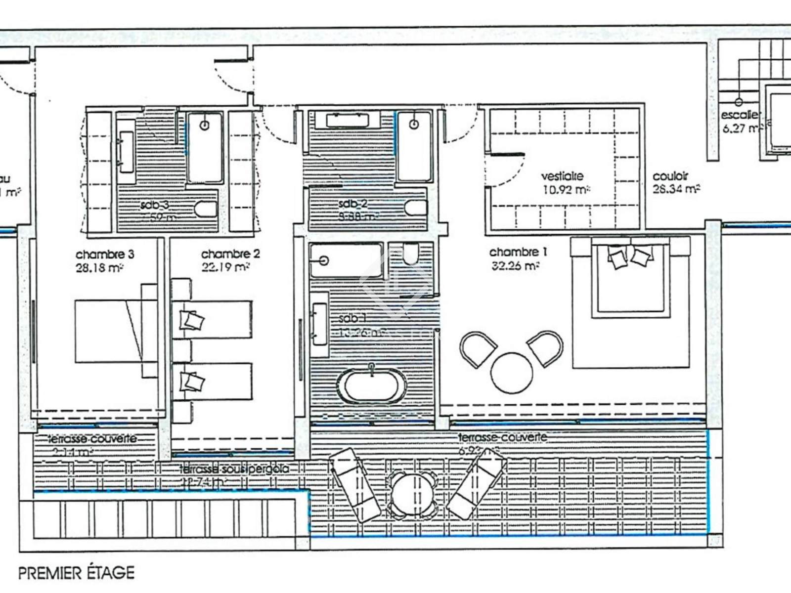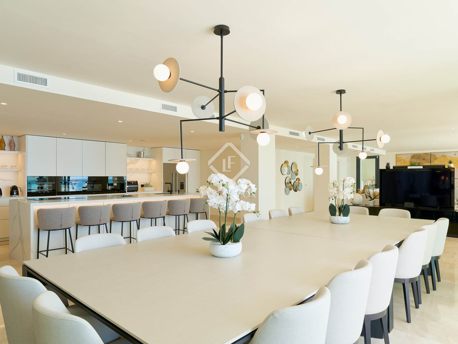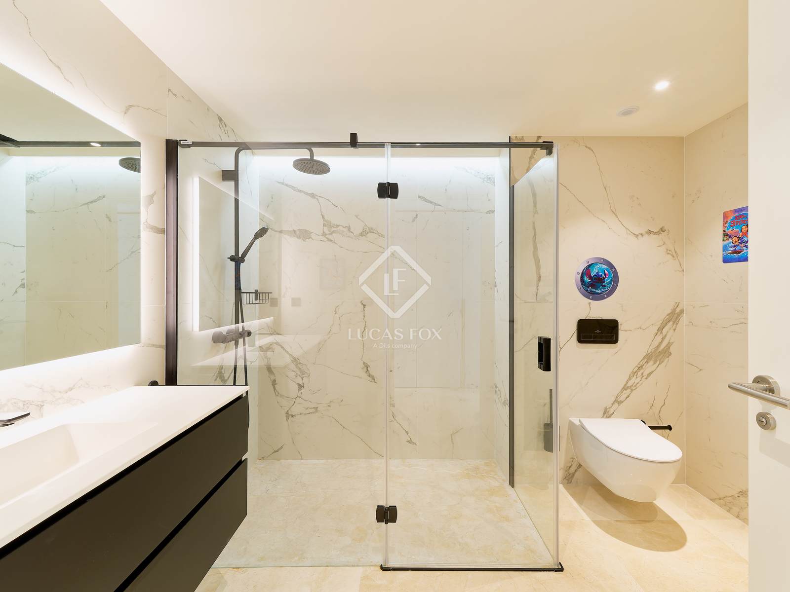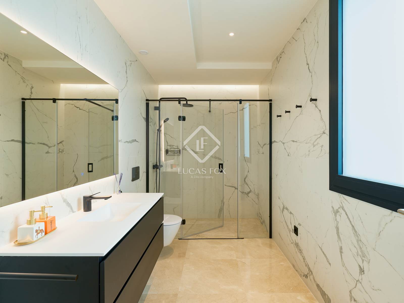 O andar superior abriga a área de dormir, dominada por uma majestosa suíte principal de 35 m² com banheiro privativo com banheira e chuveiro, closet e terraço privativo com jacuzzi, oferecendo vistas espetaculares do Mediterrâneo. Os outros dois quartos, ambos com banheiro privativo e guarda-roupas embutidos, compartilham um terraço. Por fim, um elegante escritório completa este andar, ideal para teletrabalho.