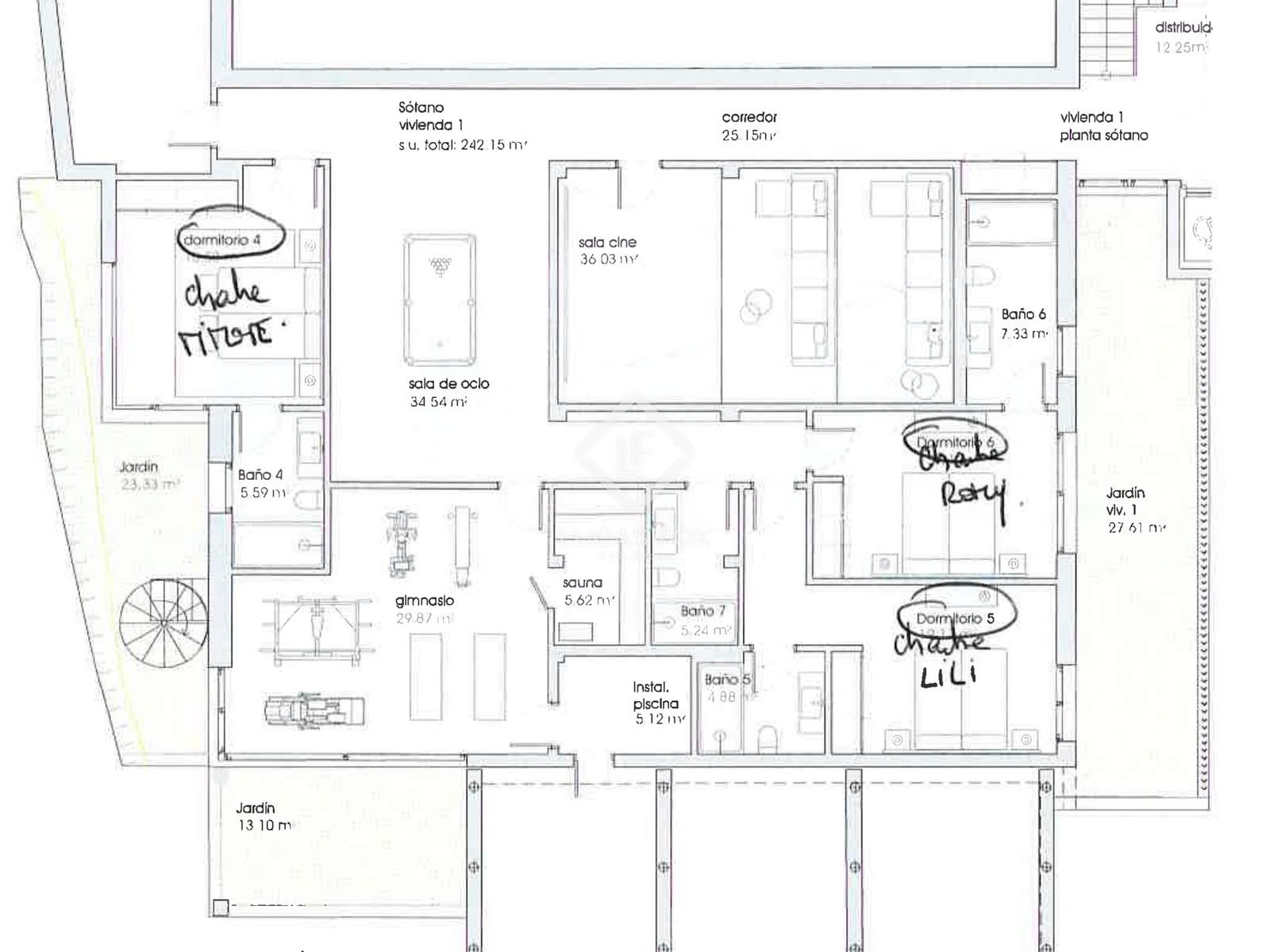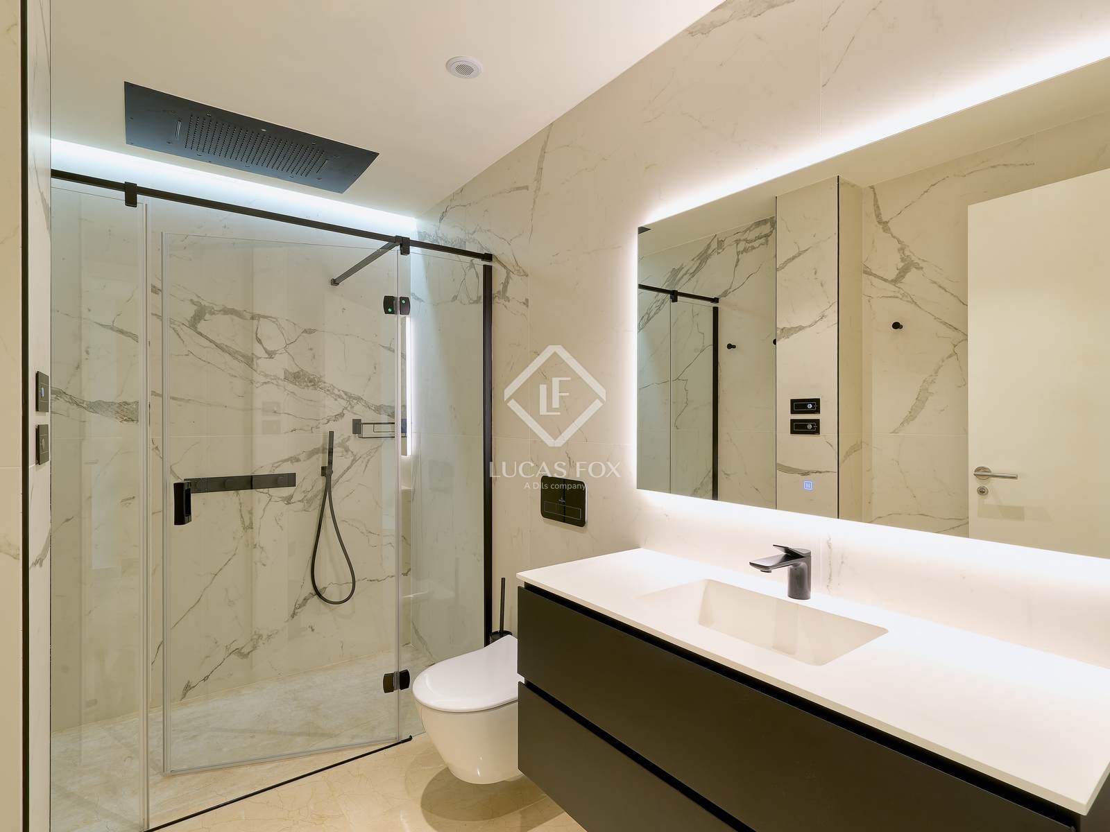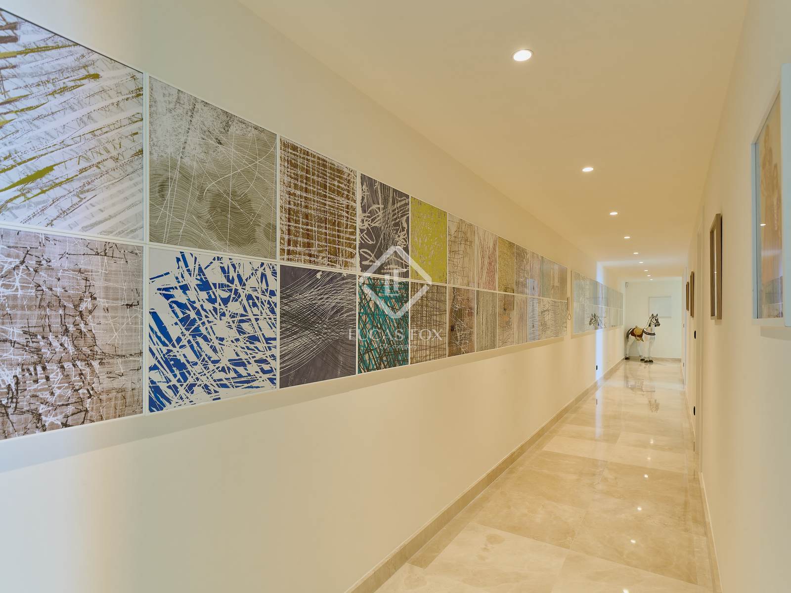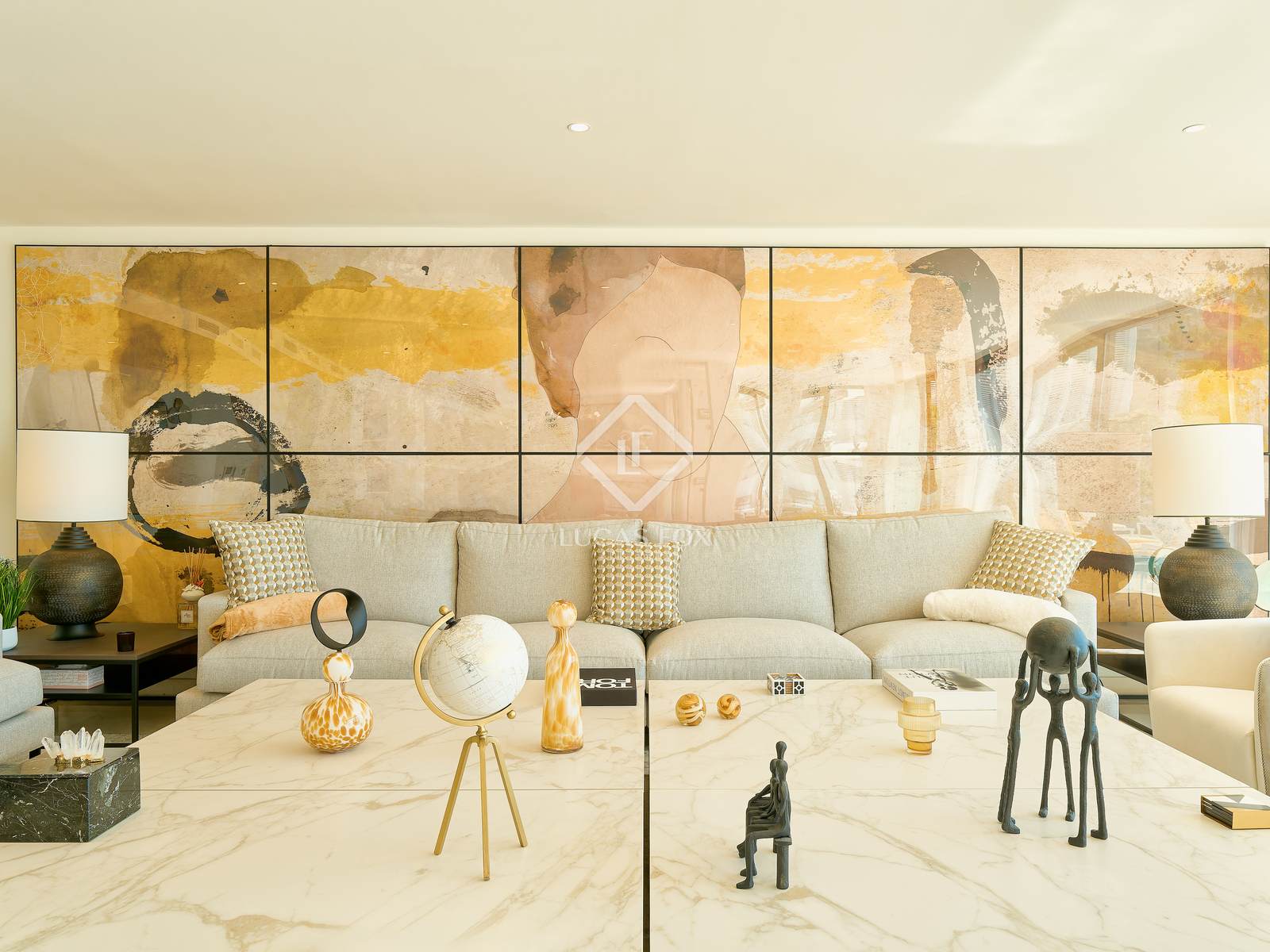 O andar inferior oferece quase 250 m² de espaço de lazer e bem-estar, com sala de cinema privativa, academia totalmente equipada, sauna, sala de jogos para crianças e três quartos espaçosos com banheiros privativos e guarda-roupas embutidos.