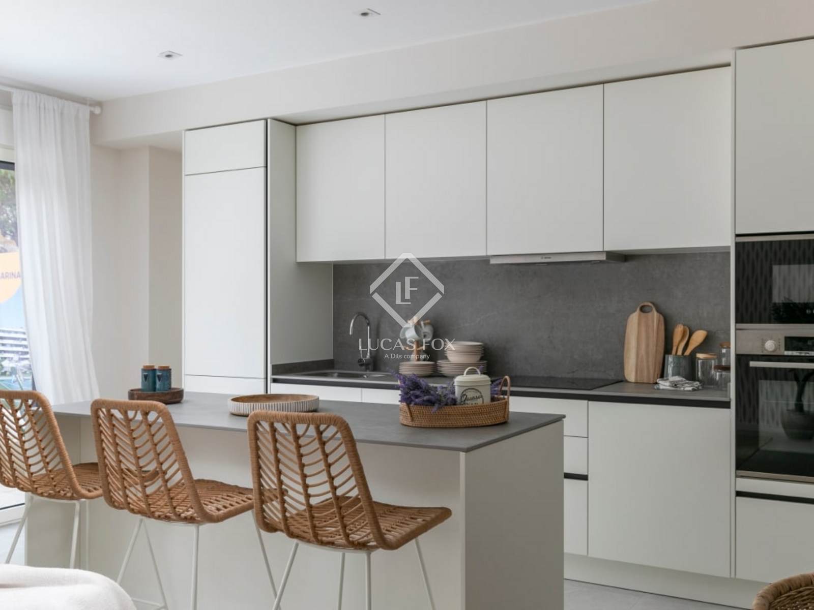O imóvel conta com acabamentos de alta qualidade, incluindo cozinha equipada, marcenaria laqueada em branco, ar-condicionado com bomba de calor e sistema aerotérmico para produção de água quente. Além disso, os proprietários têm a opção de personalizar os pisos e azulejos de acordo com seu estilo pessoal.