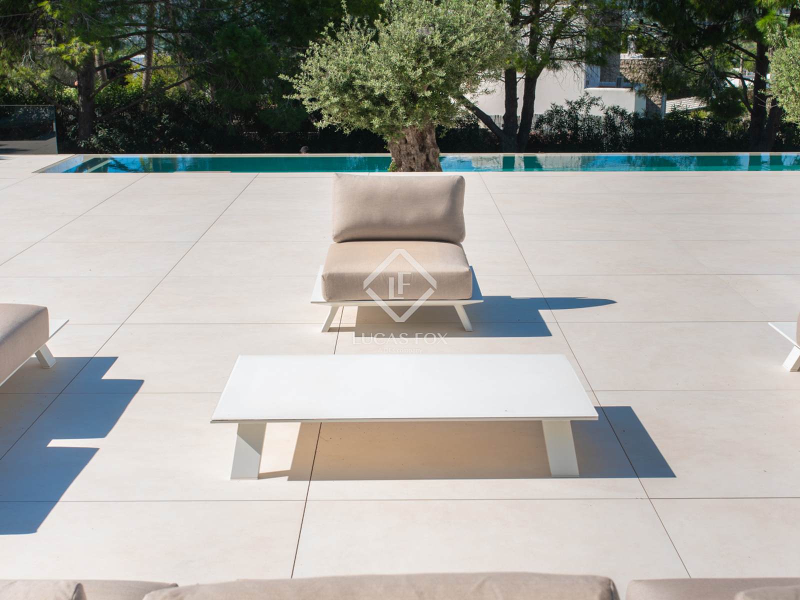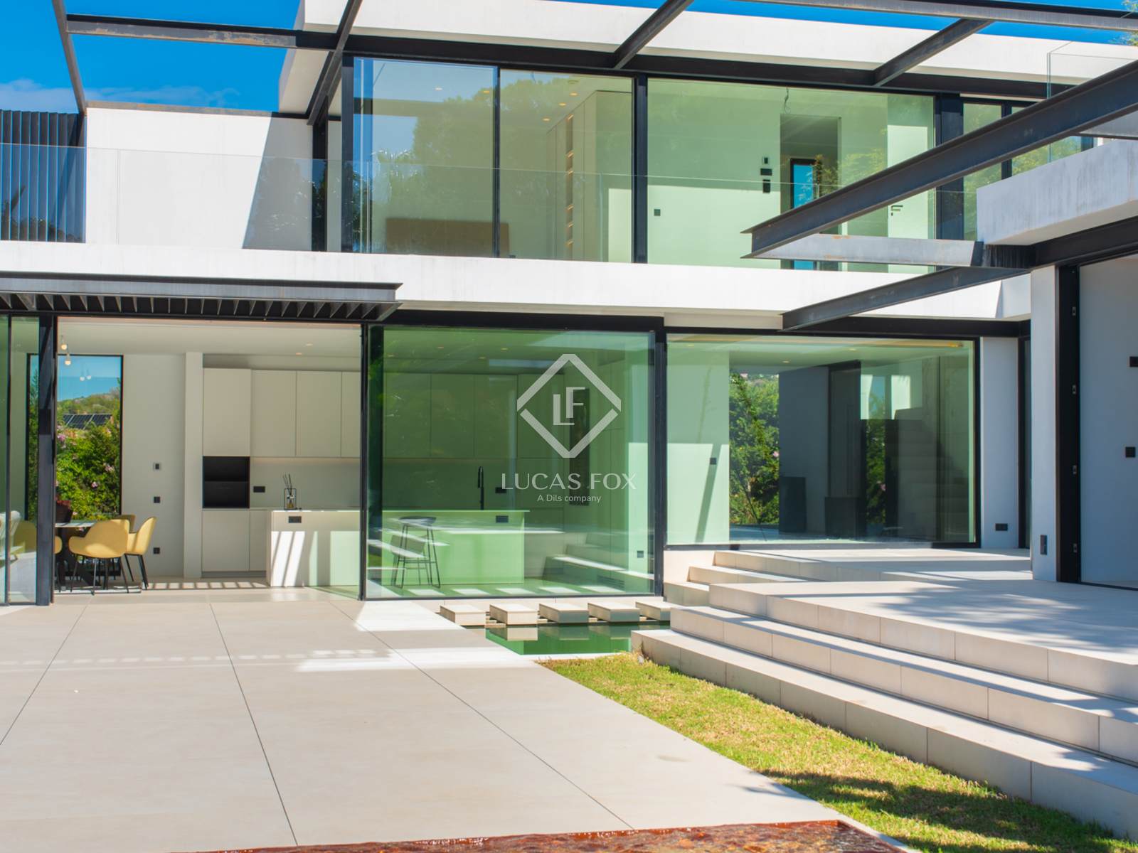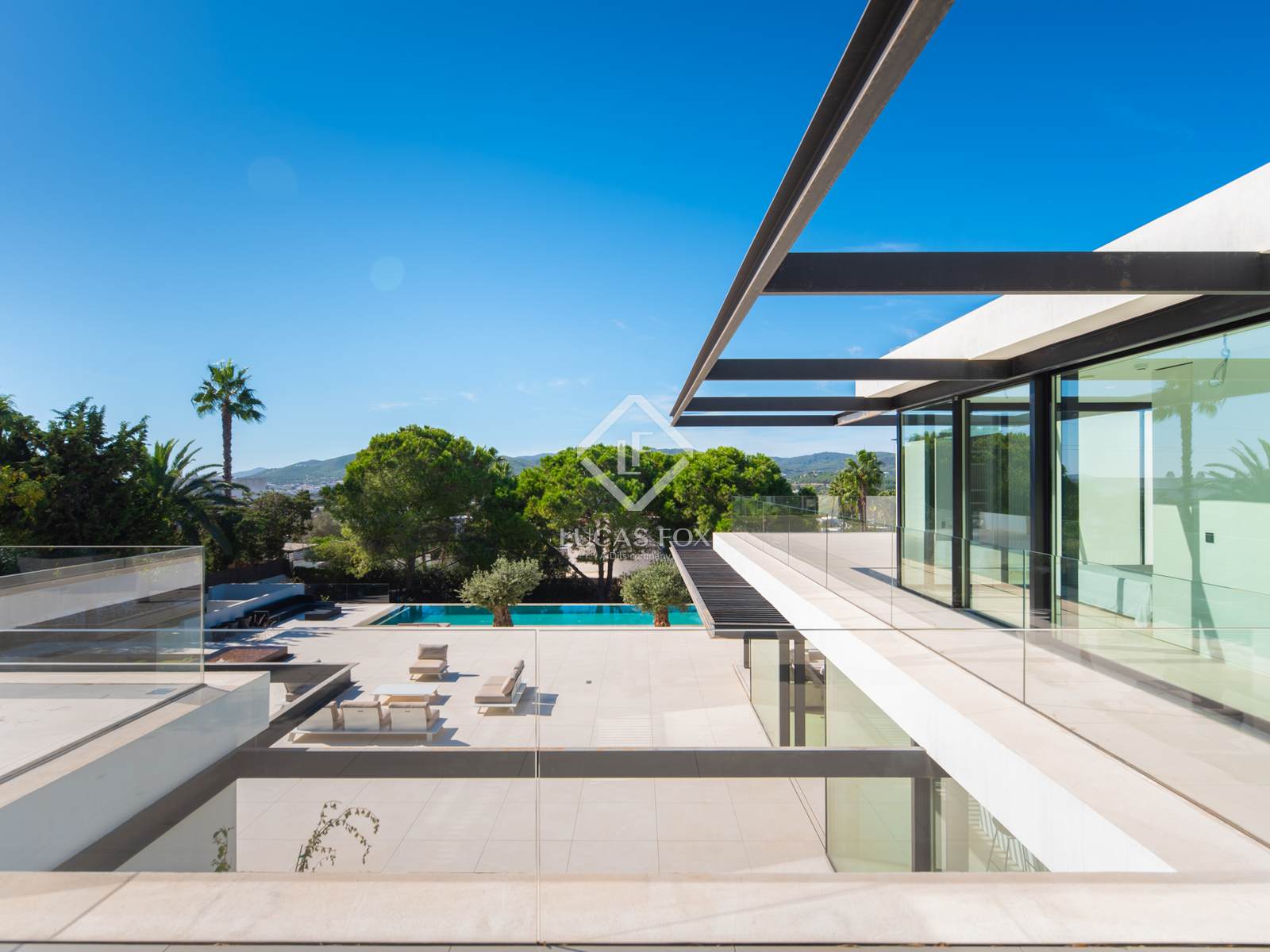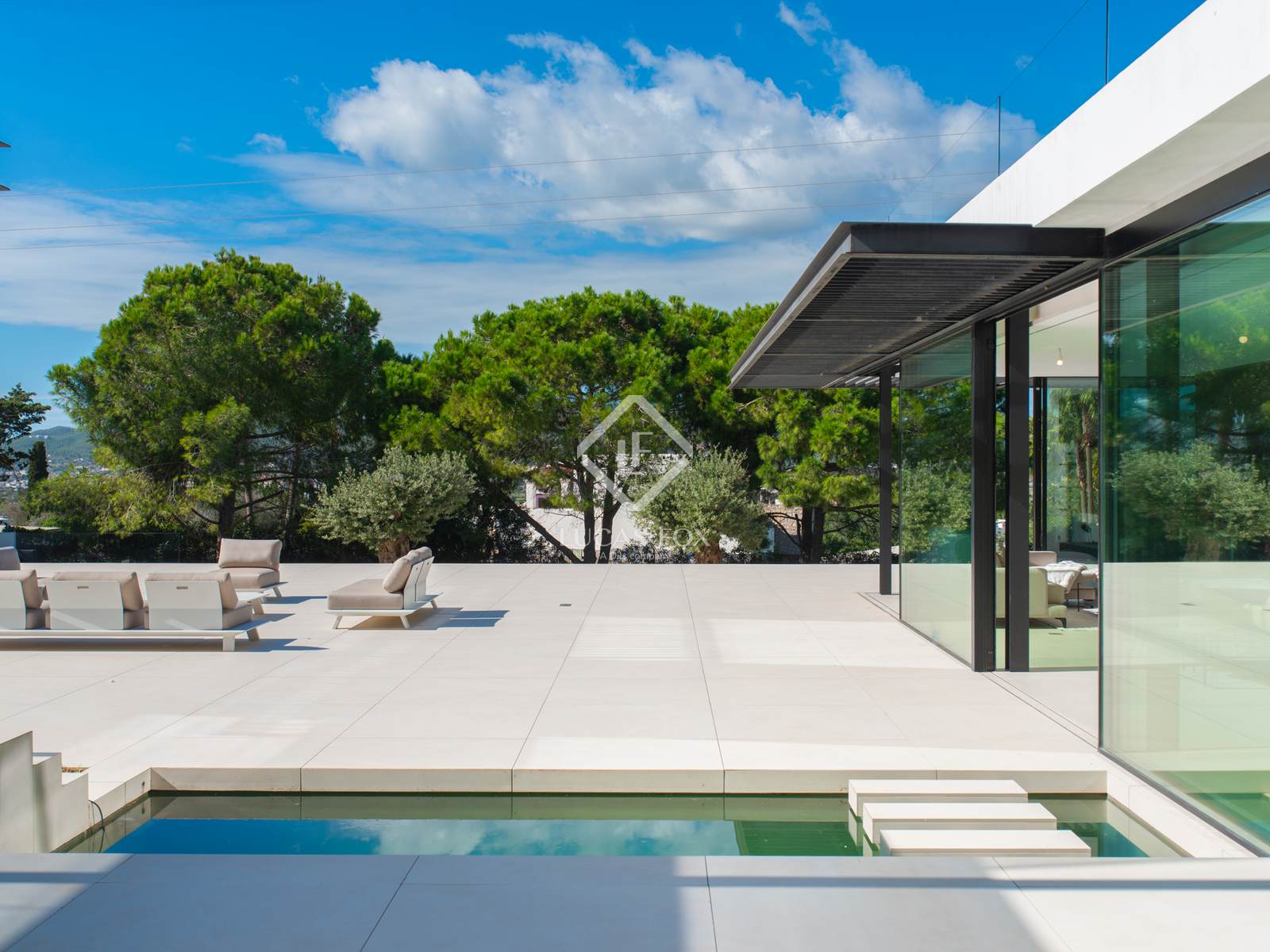 A vila está localizada nos fundos de um belo terreno com vista para o vale. Possui um jardim em estilo ibizano e terraços espaçosos com uma magnífica piscina de borda infinita de 16,5 metros de comprimento.