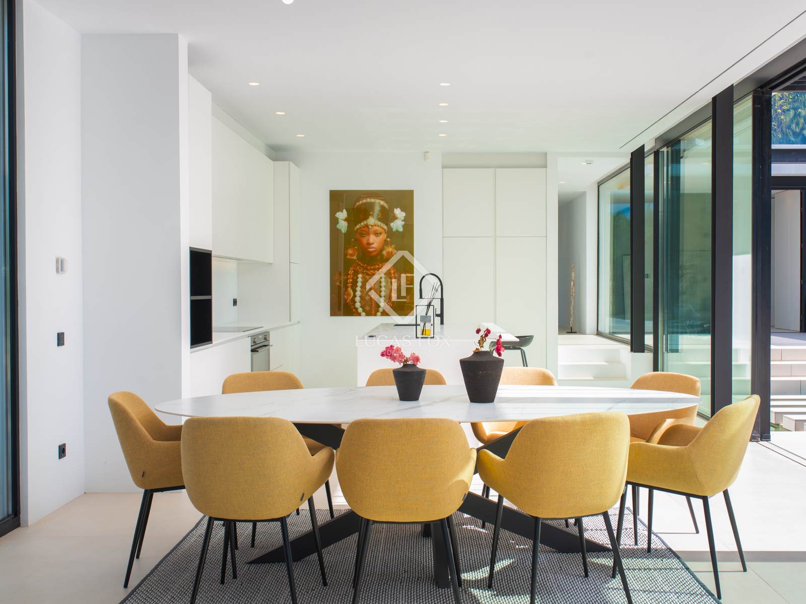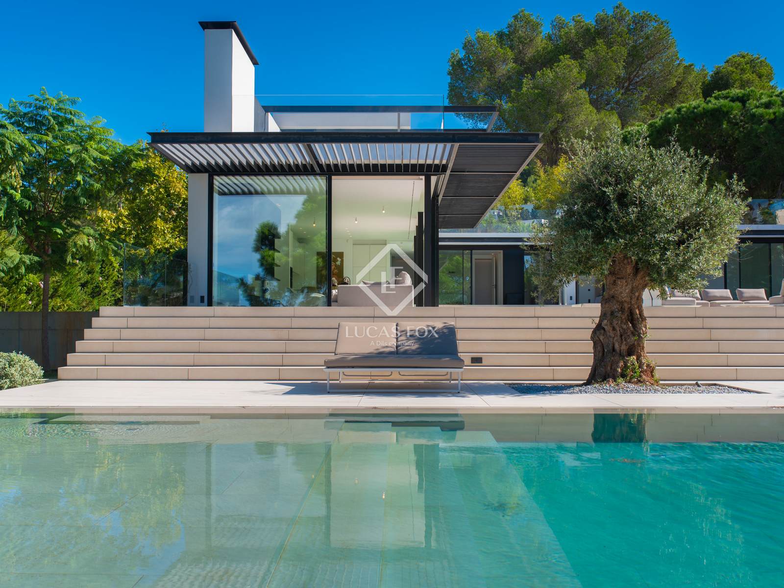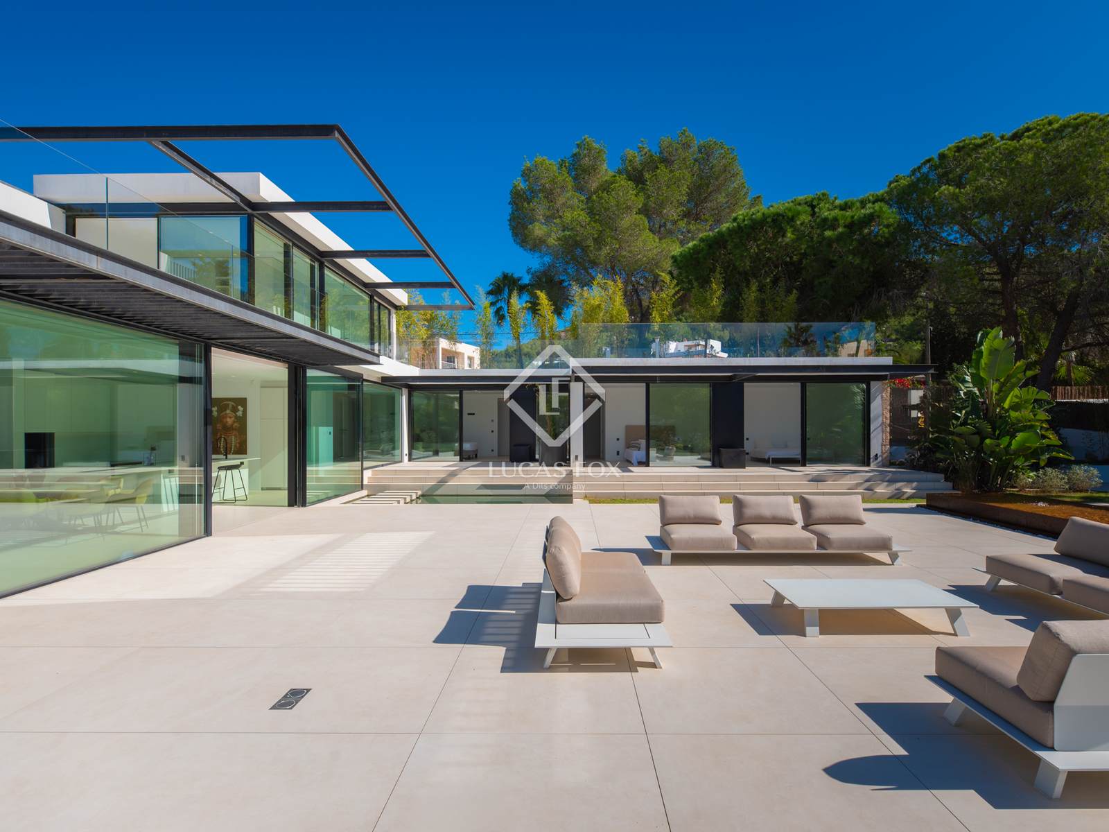 A vila está localizada nos fundos de um belo terreno com vista para o vale. Possui um jardim em estilo ibizano e terraços espaçosos com uma magnífica piscina de borda infinita de 16,5 metros de comprimento.