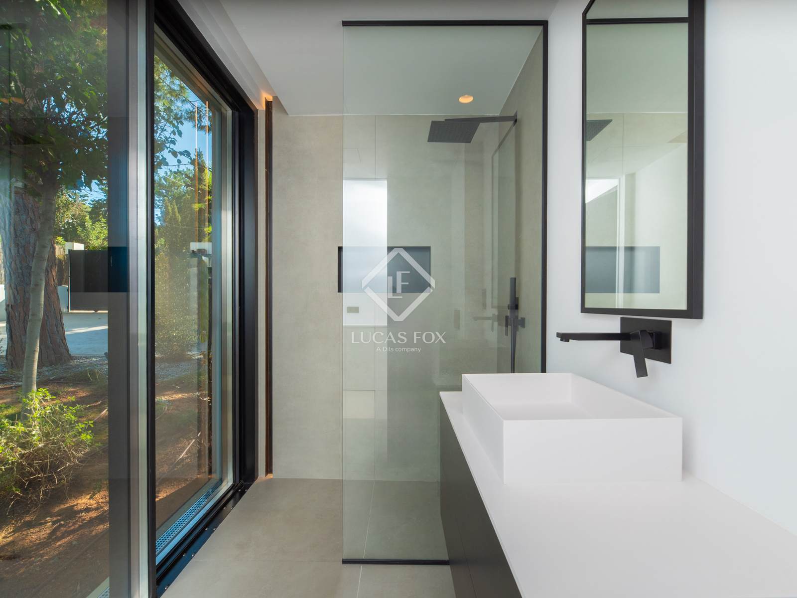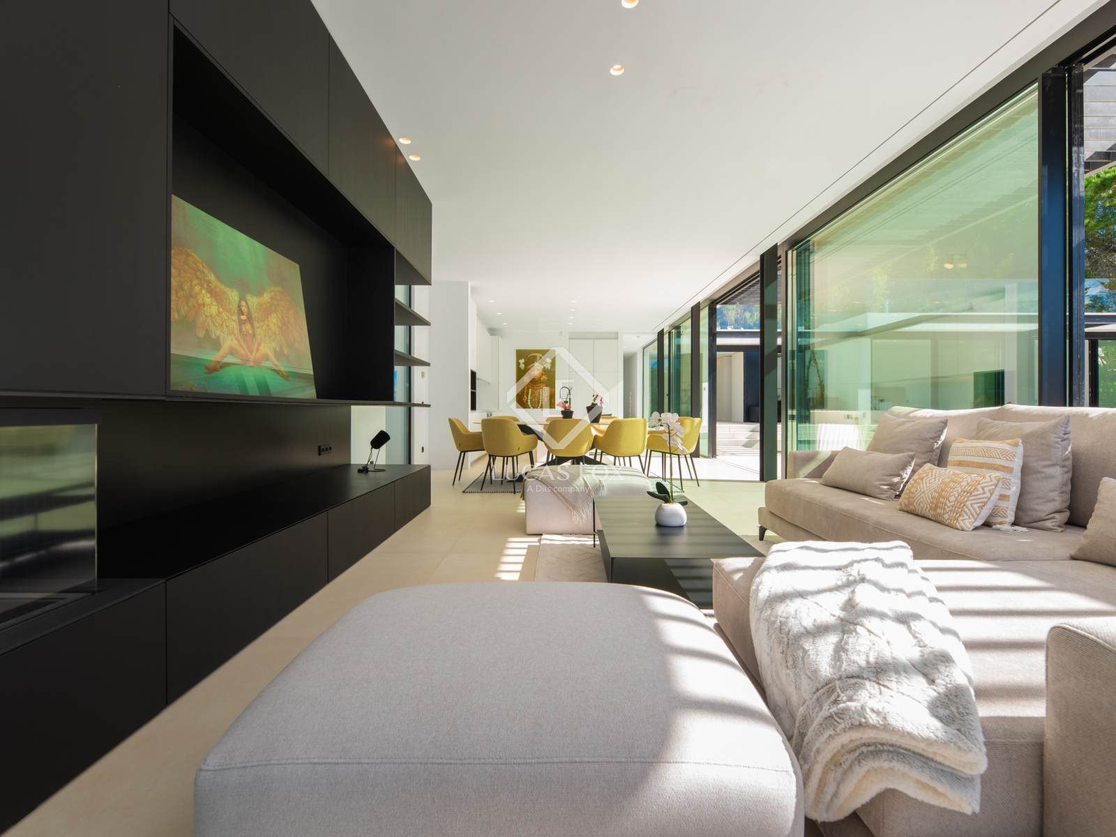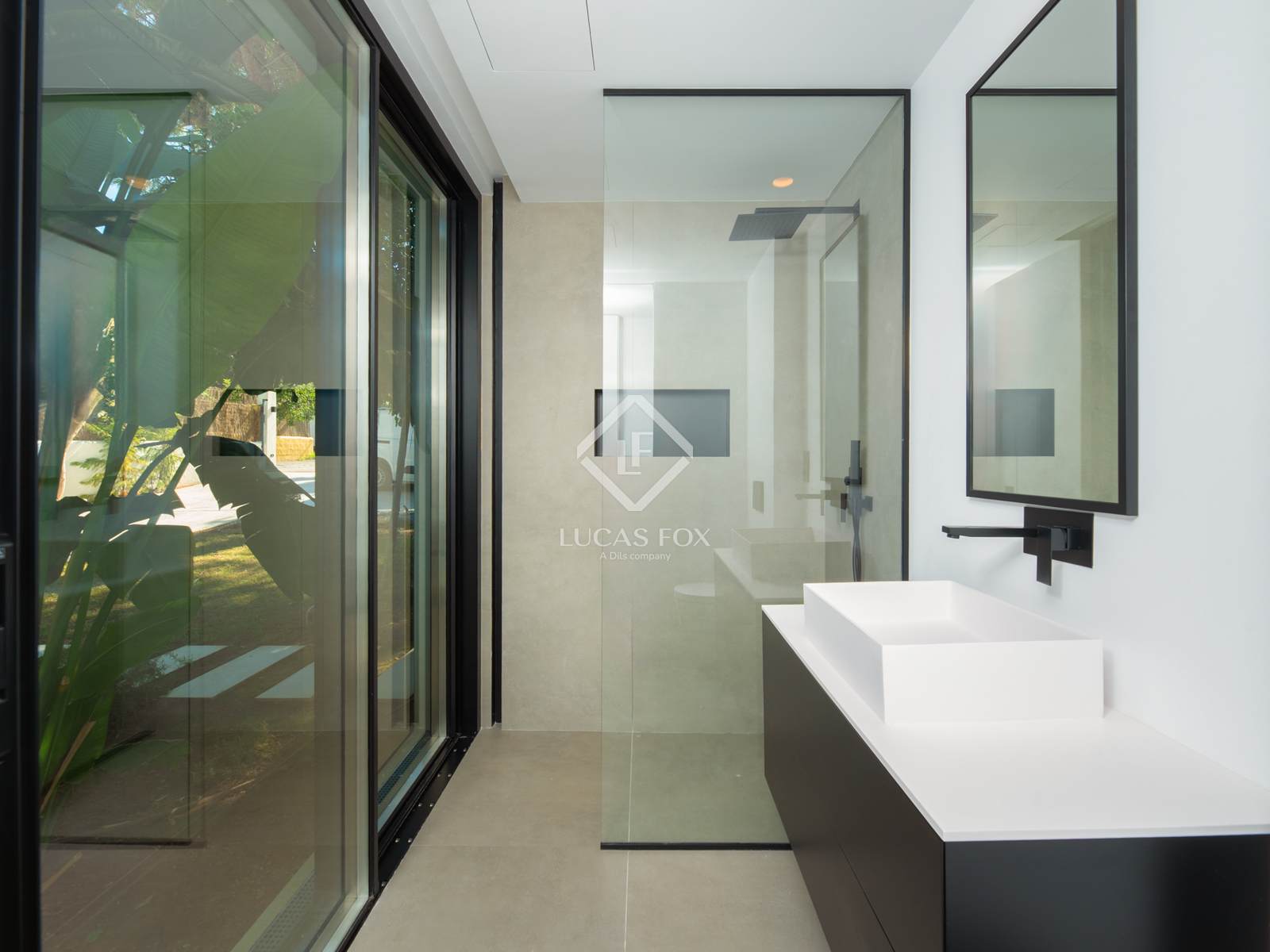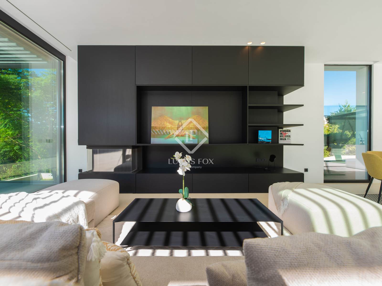 A vila está localizada nos fundos de um belo terreno com vista para o vale. Possui um jardim em estilo ibizano e terraços espaçosos com uma magnífica piscina de borda infinita de 16,5 metros de comprimento.
