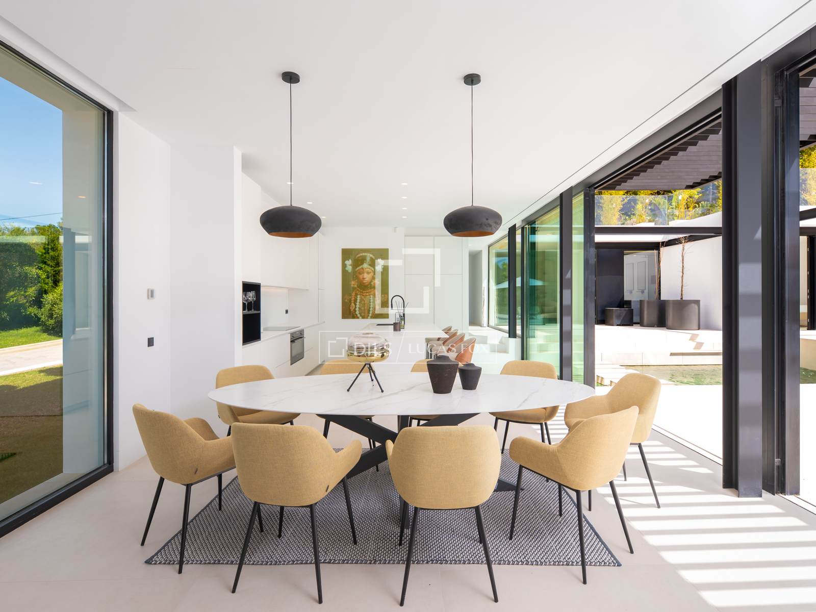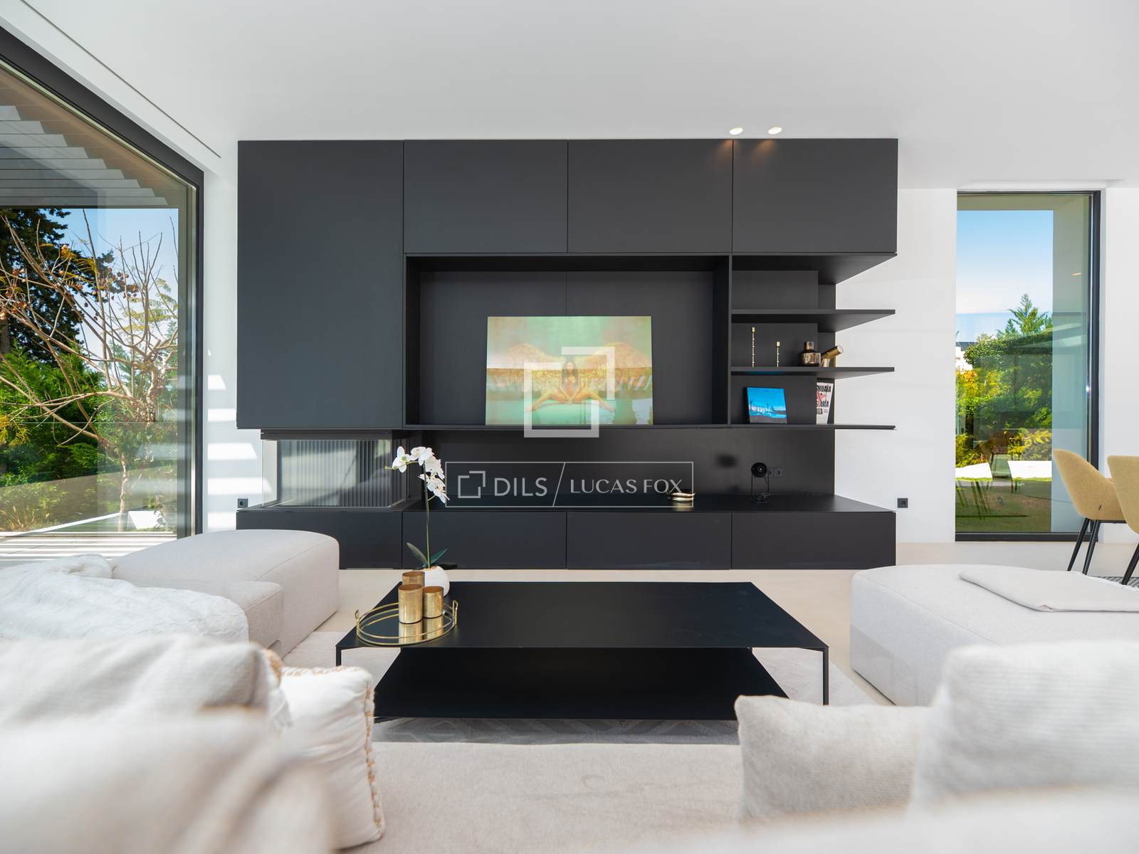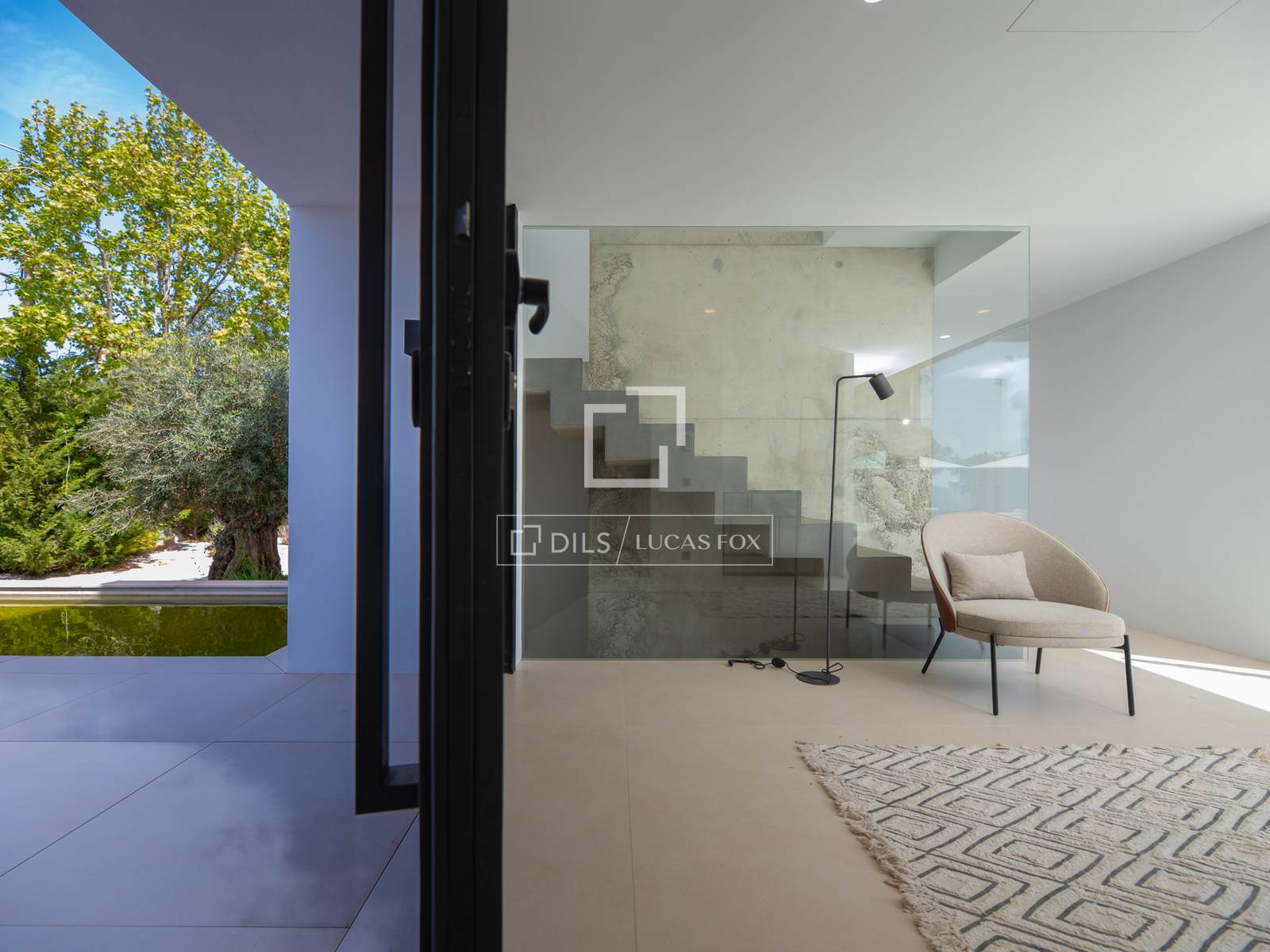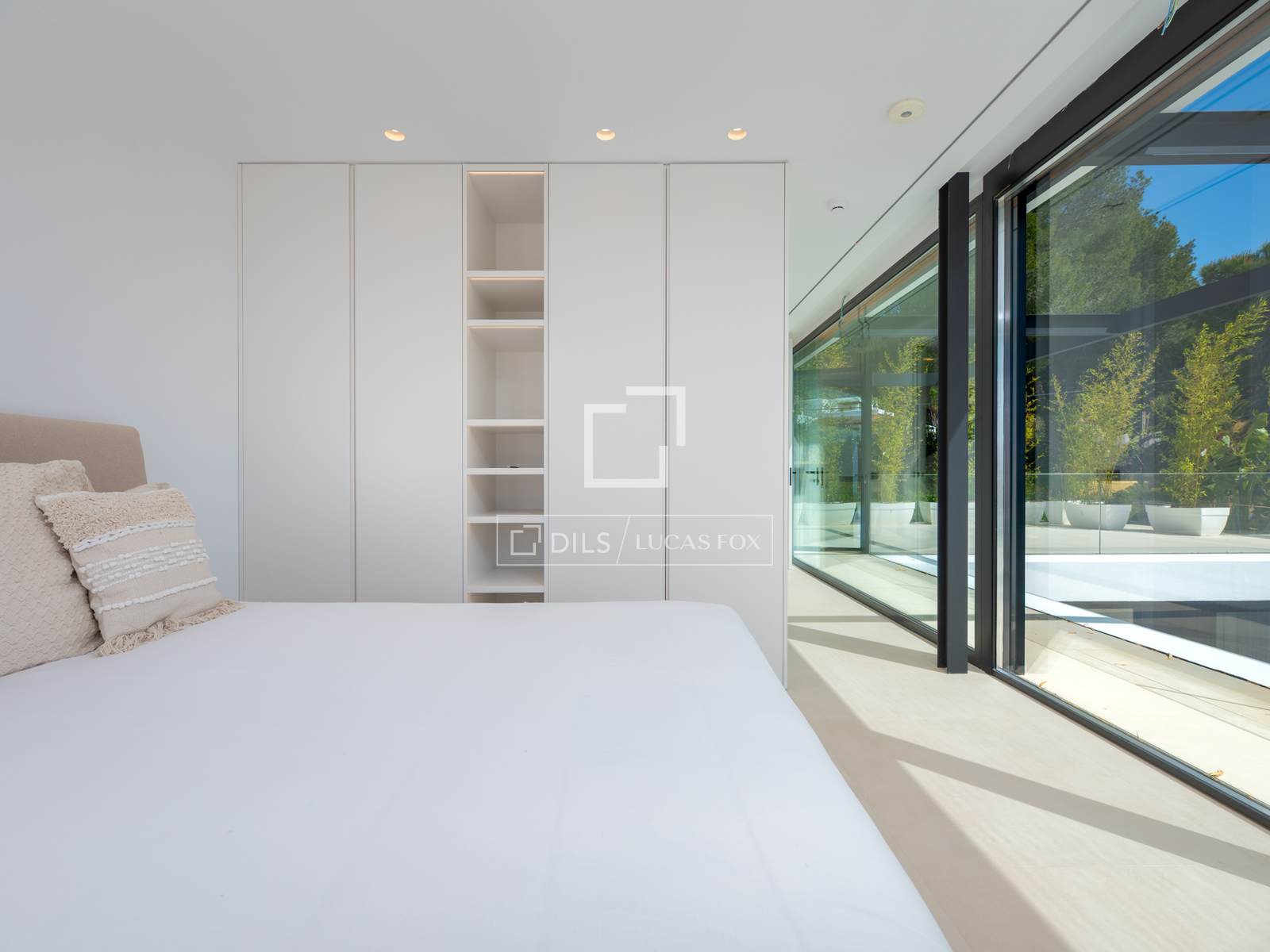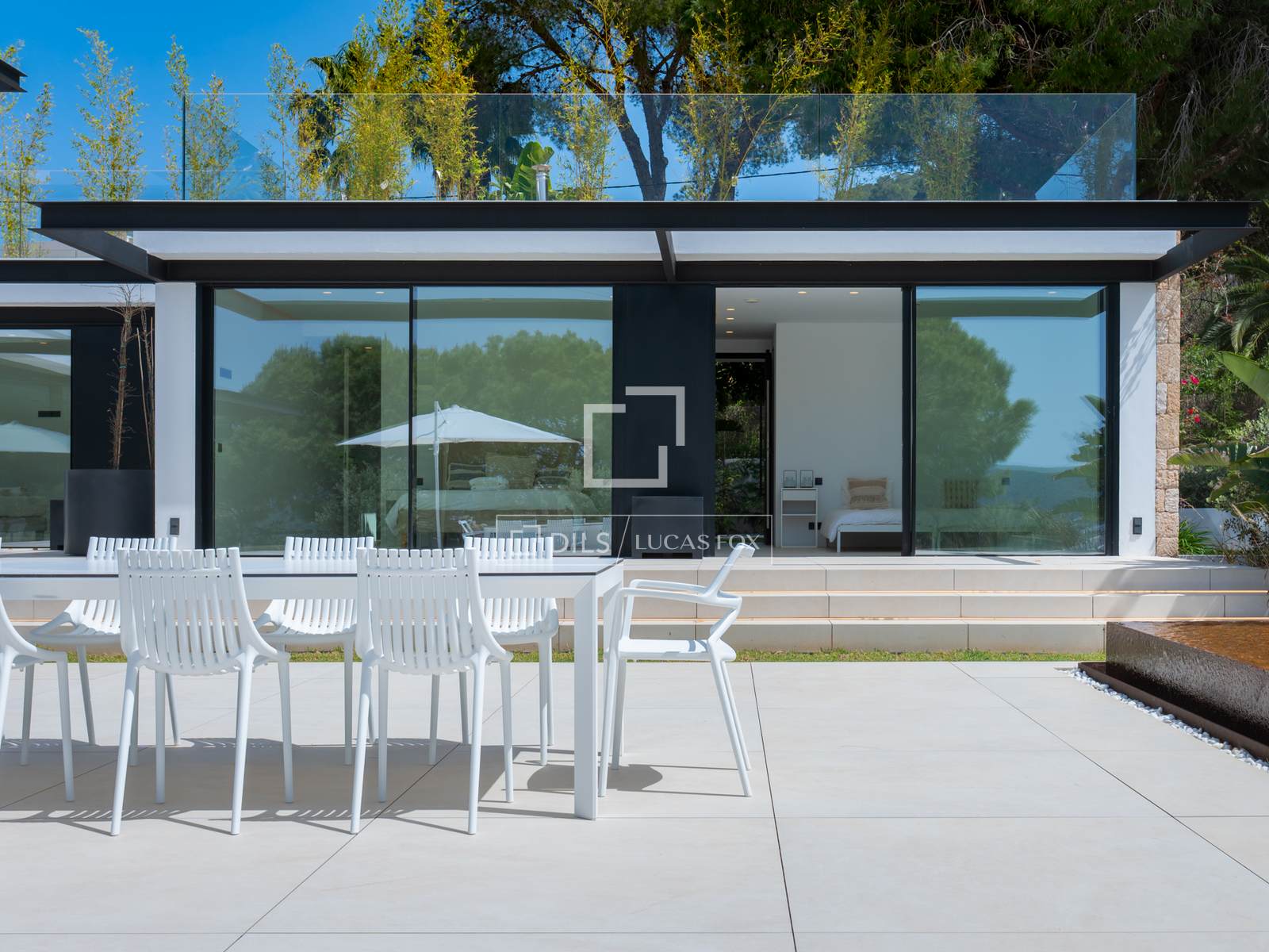 A villa está situada na parte de trás de um belo terreno com vista para o vale. Possui um jardim ao estilo de Ibiza e terraços espaçosos com uma magnífica piscina infinita de 16,5 metros de comprimento.