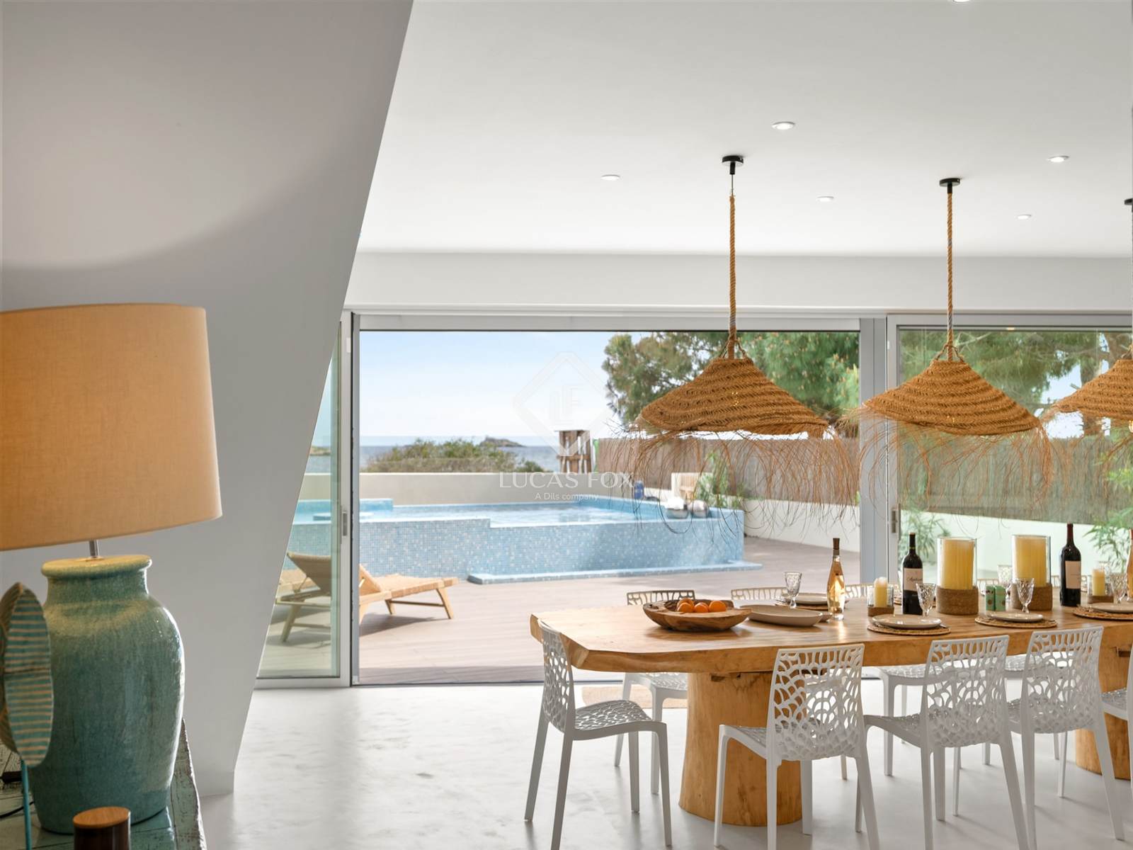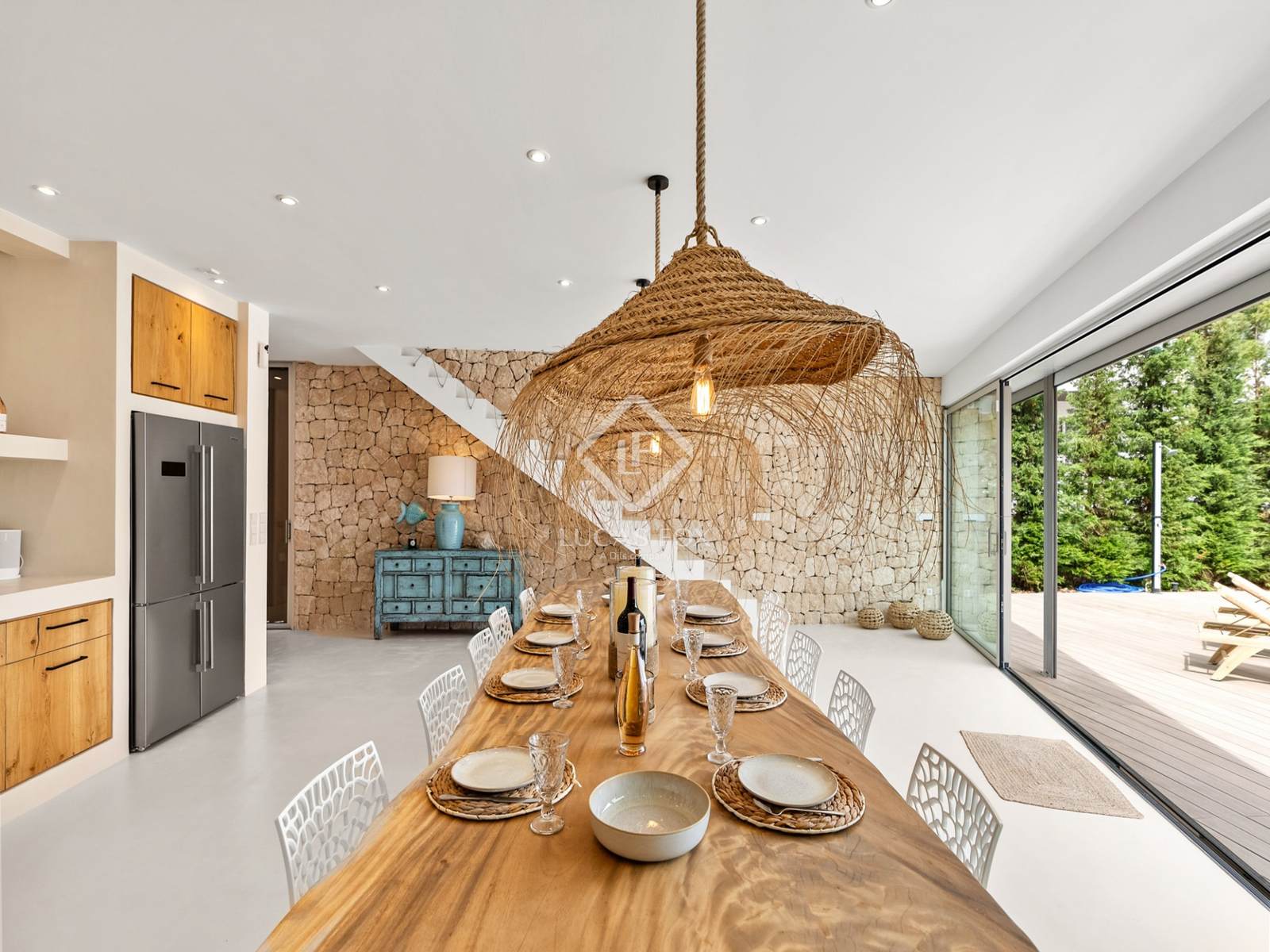 Esta propriedade é uma villa de luxo excepcional à beira-mar, que oferece uma rara praia privada de areia e acesso direto ao mar, uma verdadeira raridade em Ibiza.