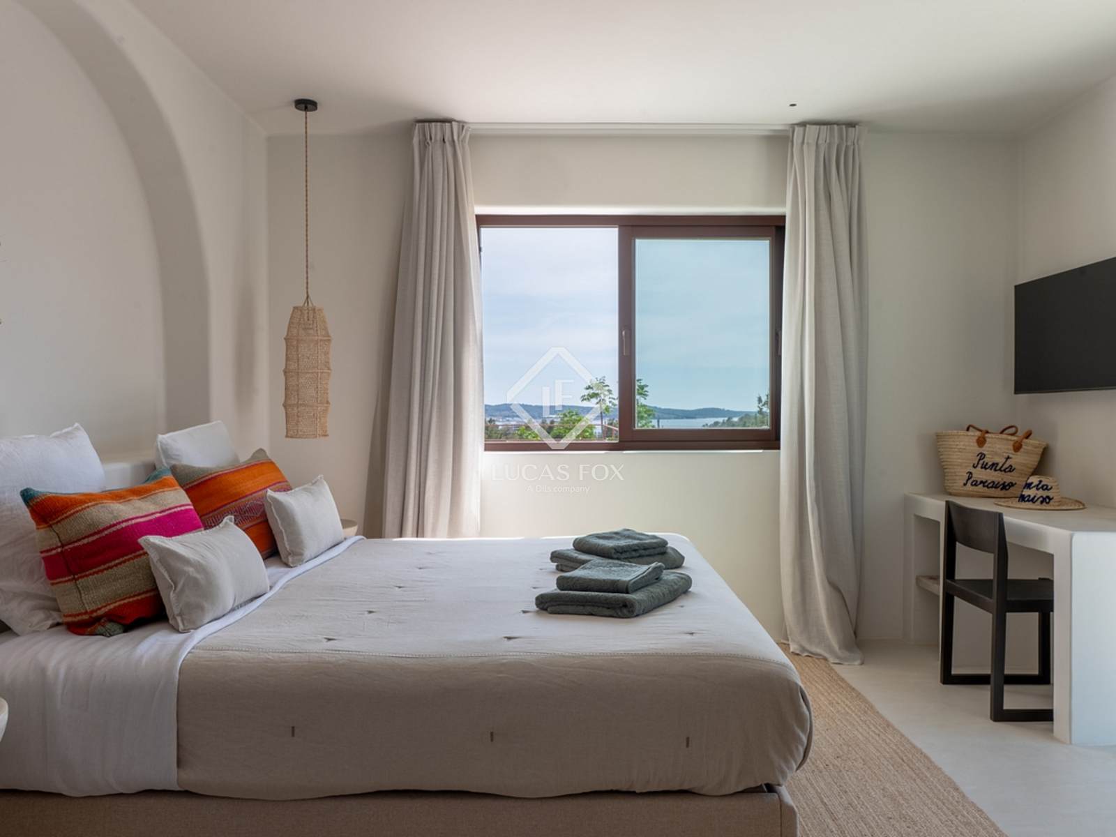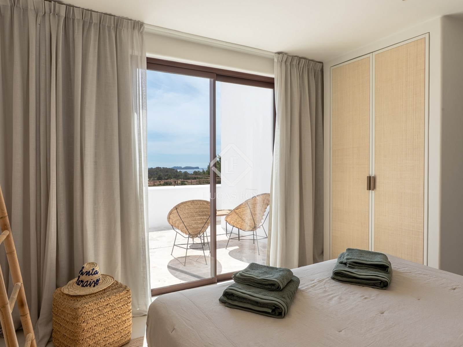 Vila luxuosa de 6 quartos na costa oeste de Ibiza, com vista deslumbrante para o mar, piscina, perto de praias, vida noturna e restaurantes. Combinação perfeita de charme e conforto moderno.