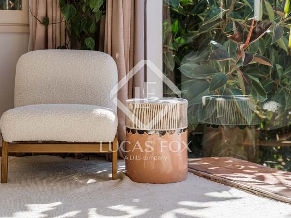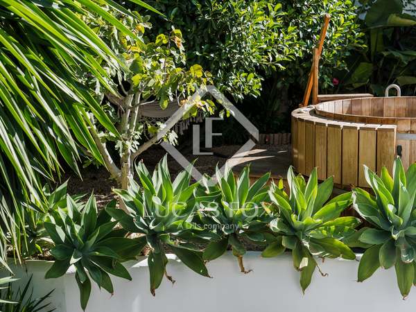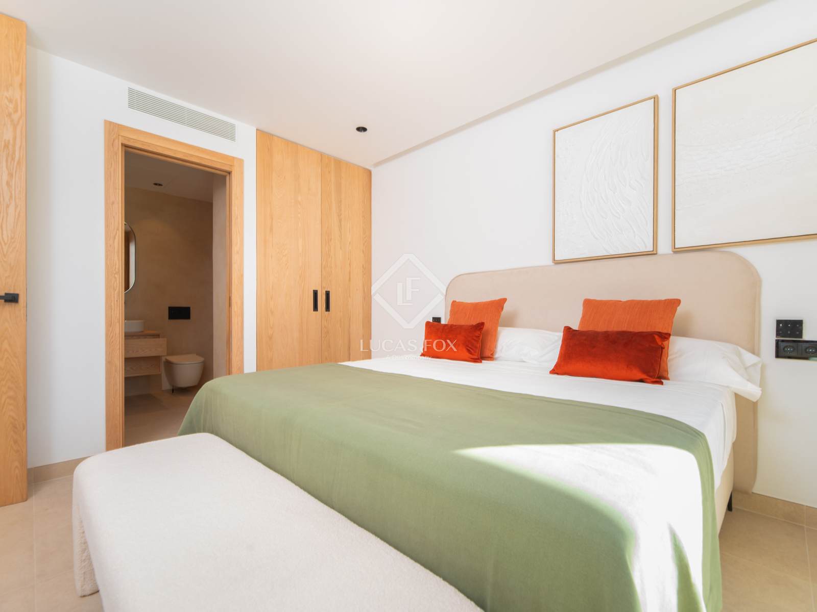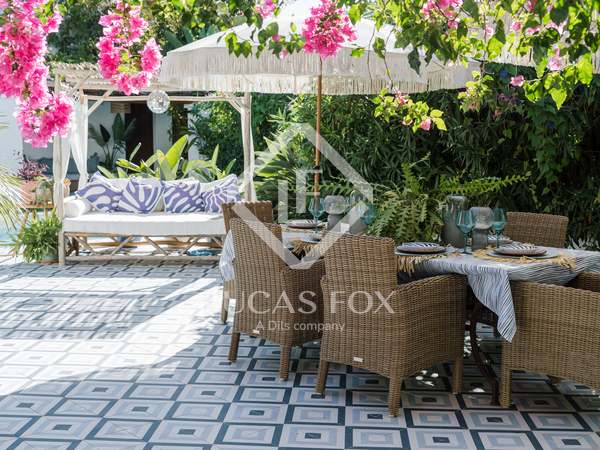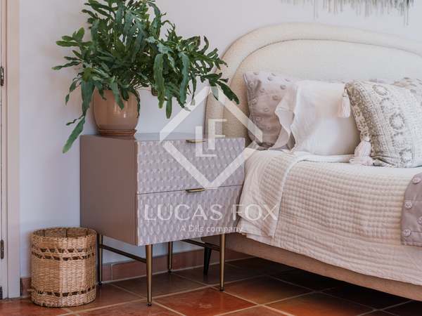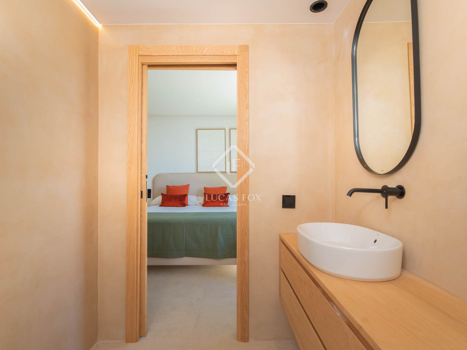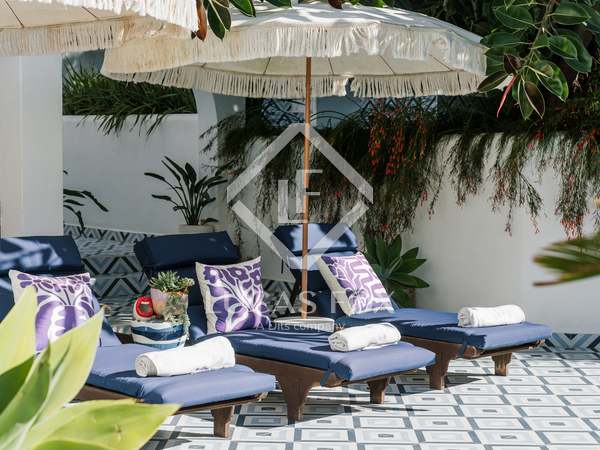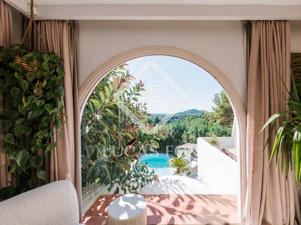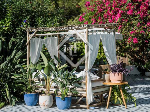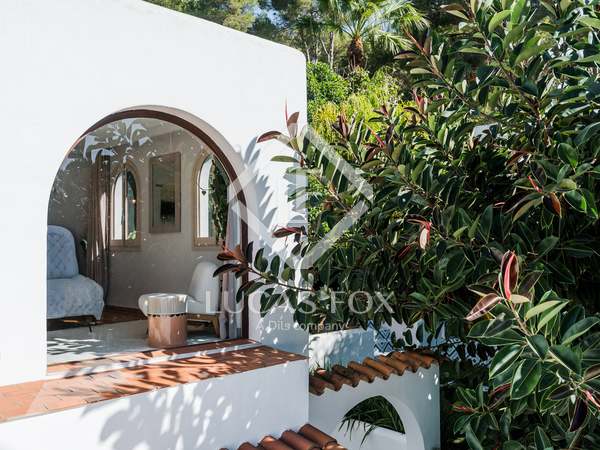 Cada um dos quatro quartos possui banheiro privativo e acesso a um terraço privativo. A área externa inclui uma grande piscina de borda infinita, terraço, jardins paisagísticos e diversas áreas de relaxamento, perfeitas para receber convidados ou relaxar sob o sol de Ibiza.