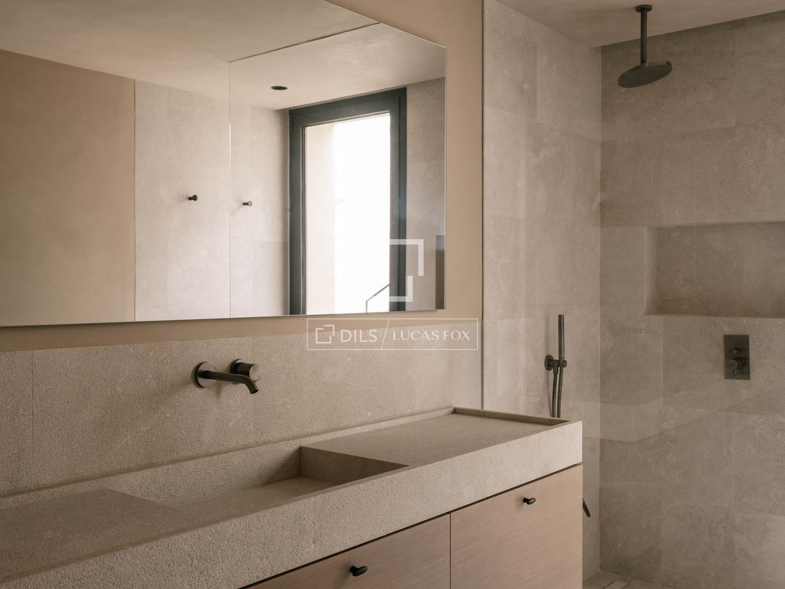 - Iluminação: Lâmpadas LED em todo o ambiente, com ajustes em áreas-chave, e apliques externos em alumínio antracite.
