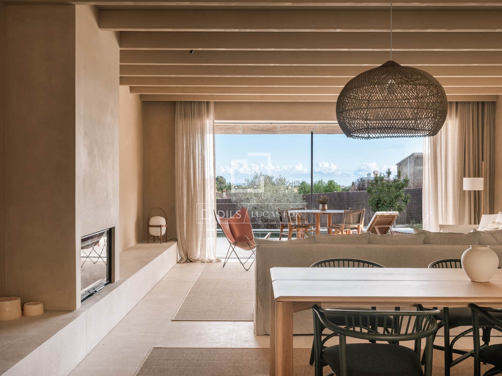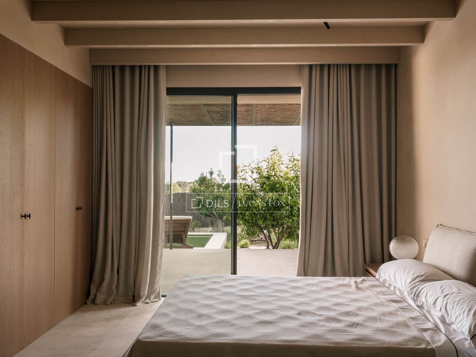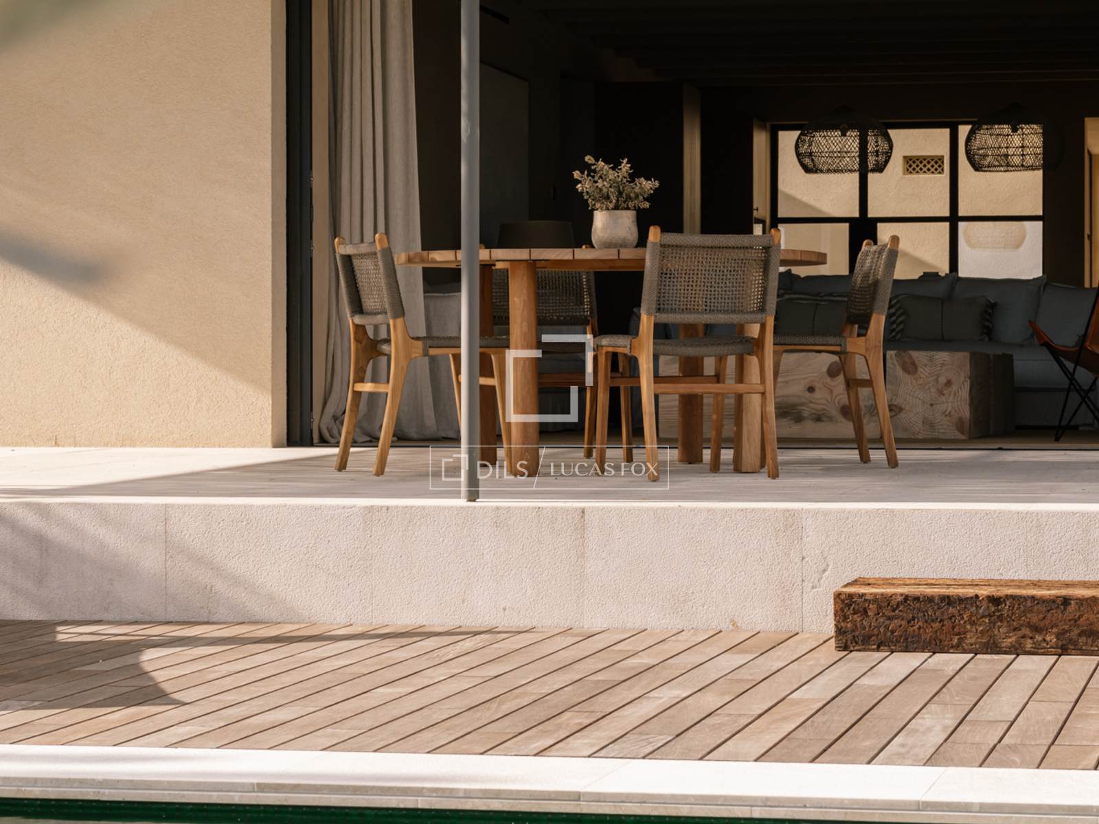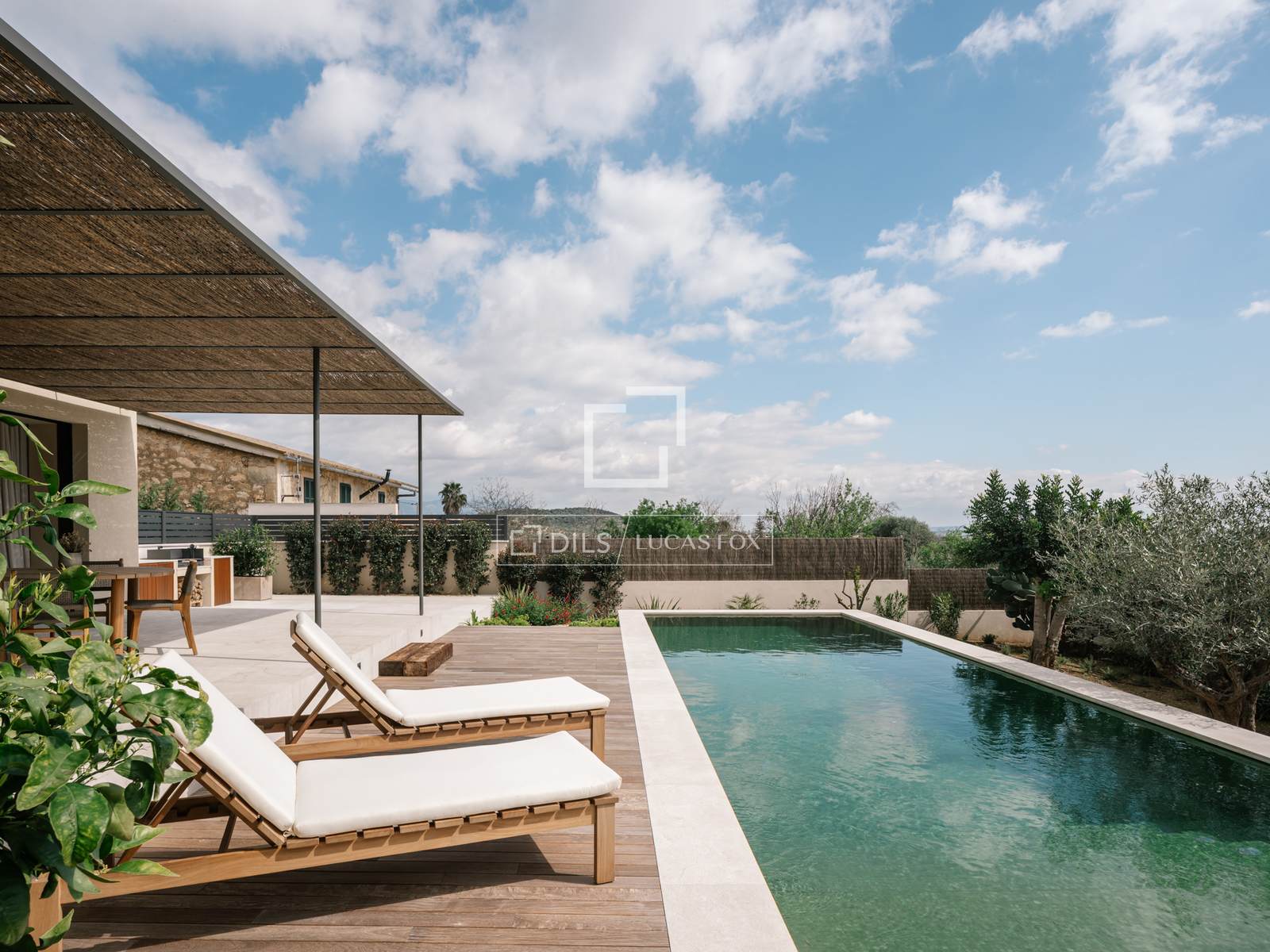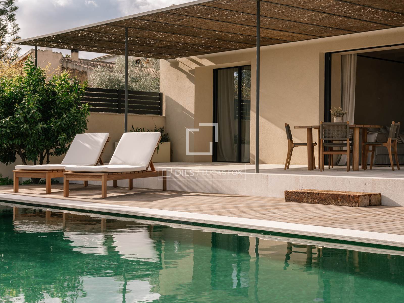 - Terraço com piscina, churrasqueira a lenha e portas de madeira iroko.