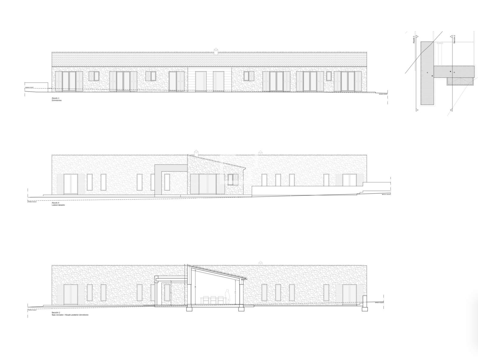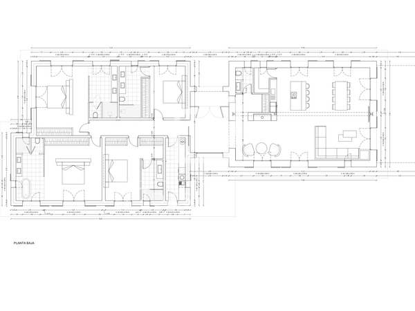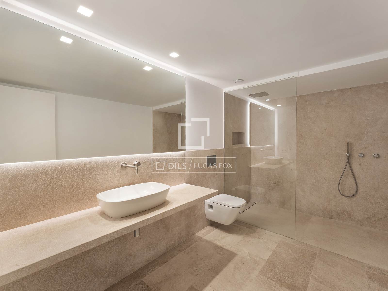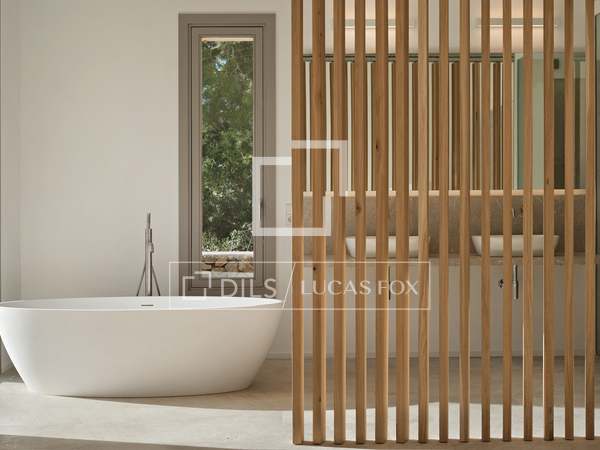 A arquitetura apresenta espaços discretos, porém elegantes, simples e sofisticados, com volumes bem proporcionados e fachadas revestidas em pedra maiorquina, em consonância com a tradição da região. O exterior é complementado por um jardim meticulosamente projetado, terraços em pedra natural com iluminação integrada, um pátio interno e uma grande piscina com deck, criando áreas distintas destinadas ao relaxamento e à vida ao ar livre.