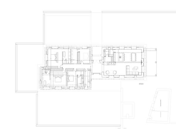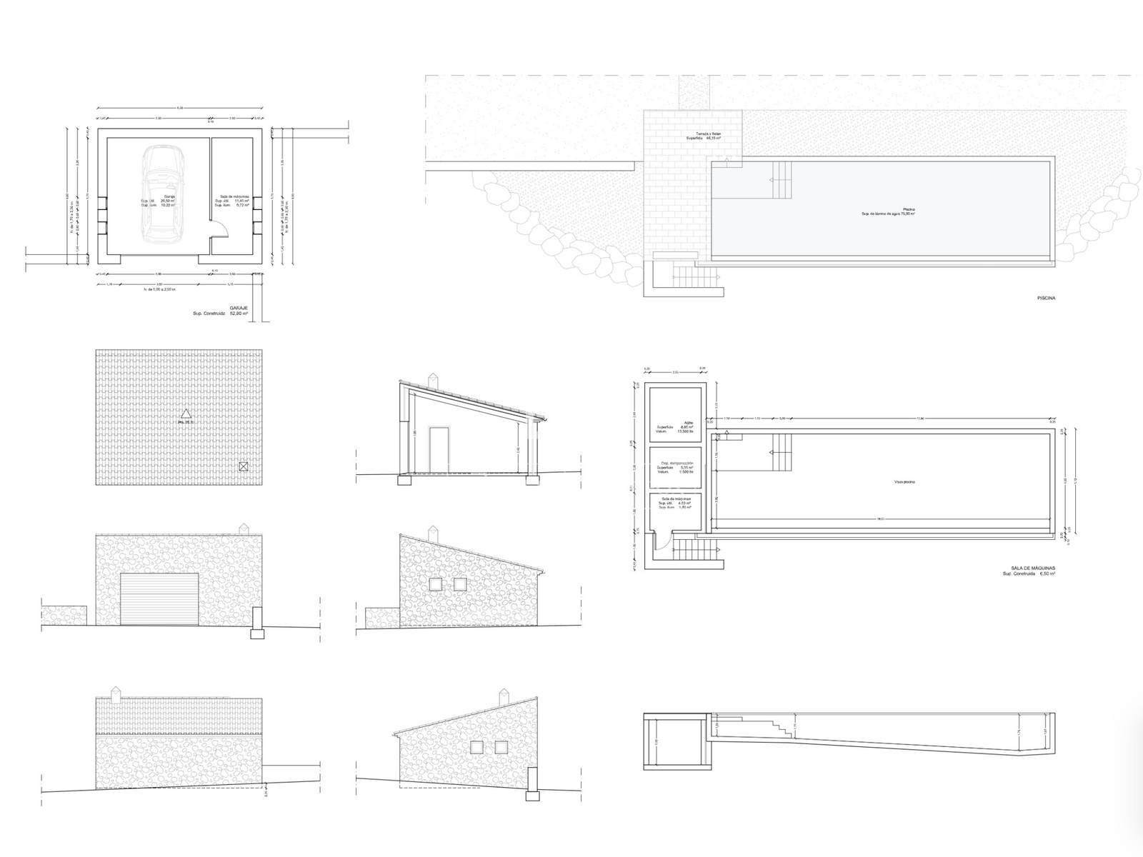 A casa está distribuída em um amplo piso térreo, onde as áreas sociais e íntimas são claramente definidas. A entrada leva à ala esquerda da propriedade, um grande espaço aberto que integra a sala de estar, a sala de jantar e a cozinha, todas conectadas aos terraços, ao jardim e à piscina. Na ala direita, separada do restante da propriedade, encontram-se a biblioteca e as quatro suítes, todas com acesso direto ao exterior. O subsolo completa a propriedade com uma adega, dependências de serviço e um salão multiuso com pátio interno, projetado para atividades de lazer, home theater ou academia.