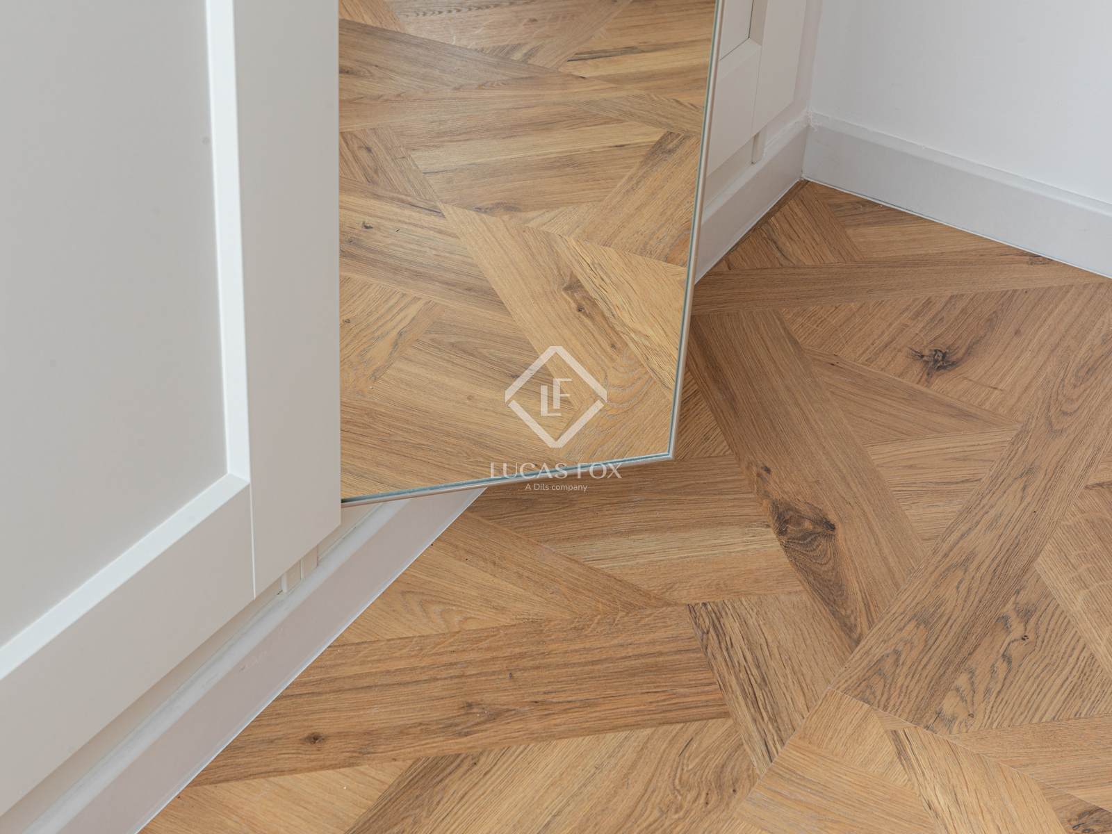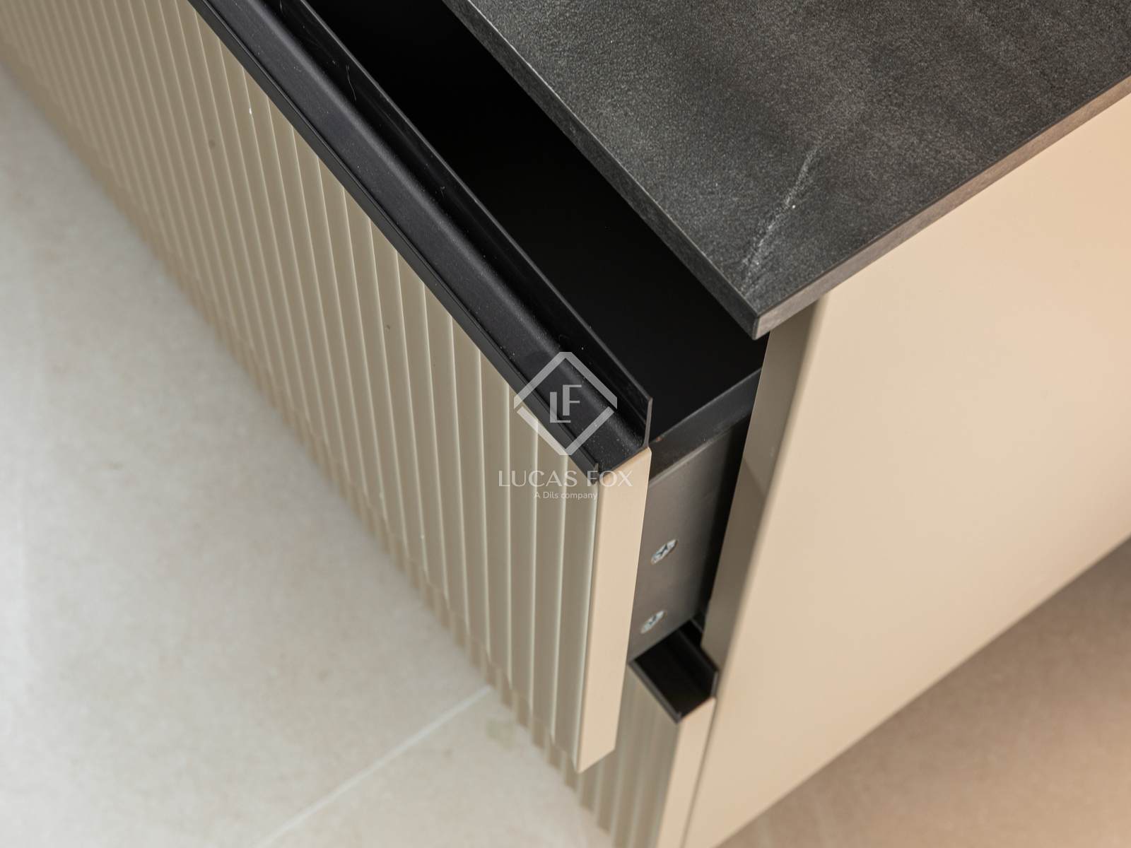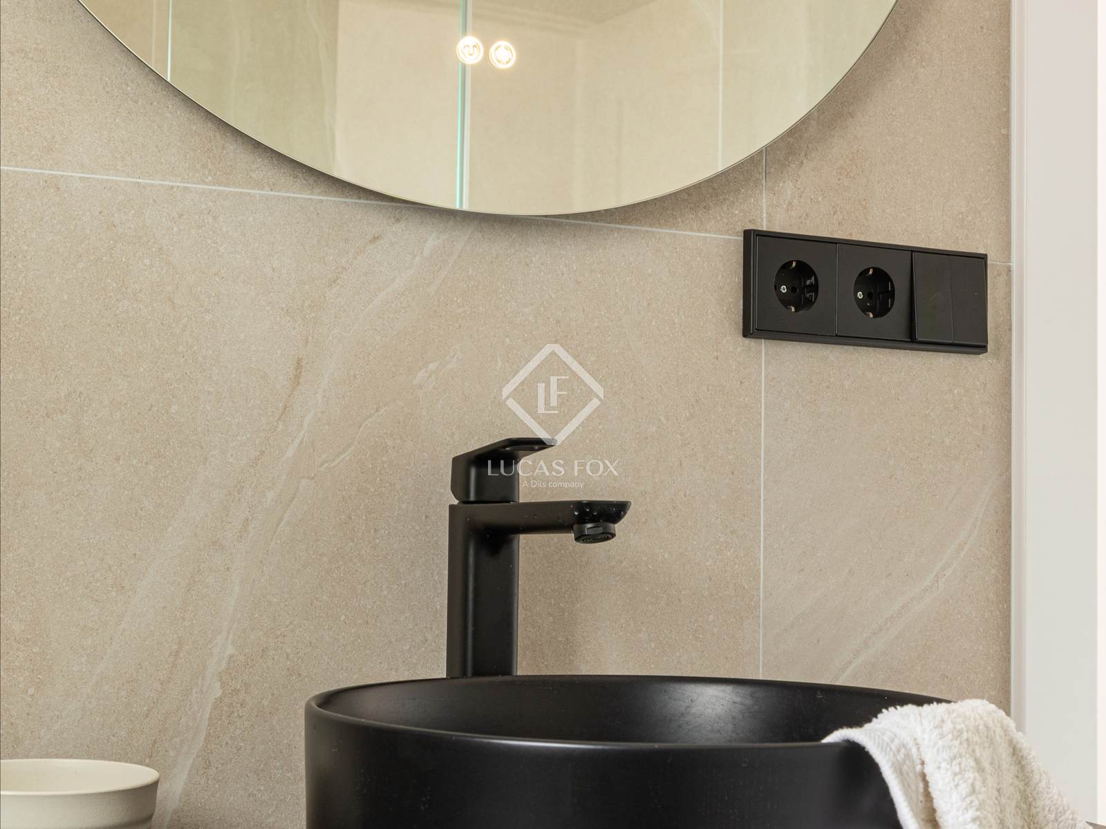 A reforma foi realizada com alto padrão de qualidade, utilizando materiais e acabamentos de primeira linha: janelas de alumínio com vidros duplos, iluminação LED integrada, tomadas USB/USB-C e cozinha equipada com adega e exaustor integrado. O apartamento também dispõe de ar-condicionado e aquecimento Wi-Fi, além de um sistema de ventilação inteligente com sensores de umidade.
