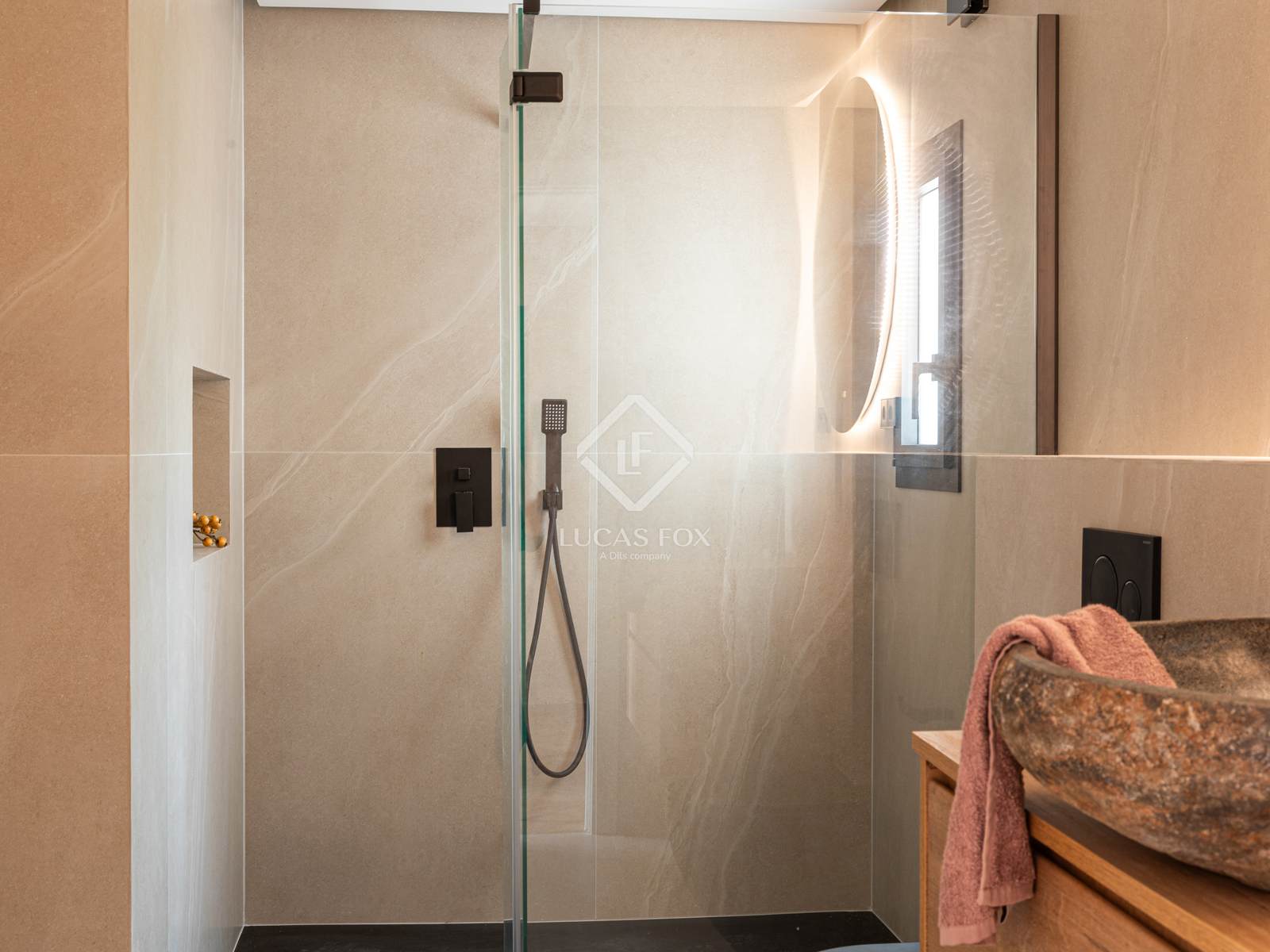 Dispõe de dois quartos espaçosos, incluindo uma suíte master com banheiro privativo, closet e cofre embutido, além de dois banheiros contemporâneos equipados com chuveiros de efeito chuva. A área externa conta com uma varanda de 5 m² voltada para o sul e um terraço compartilhado na cobertura, oferecendo vistas panorâmicas espetaculares do mar.