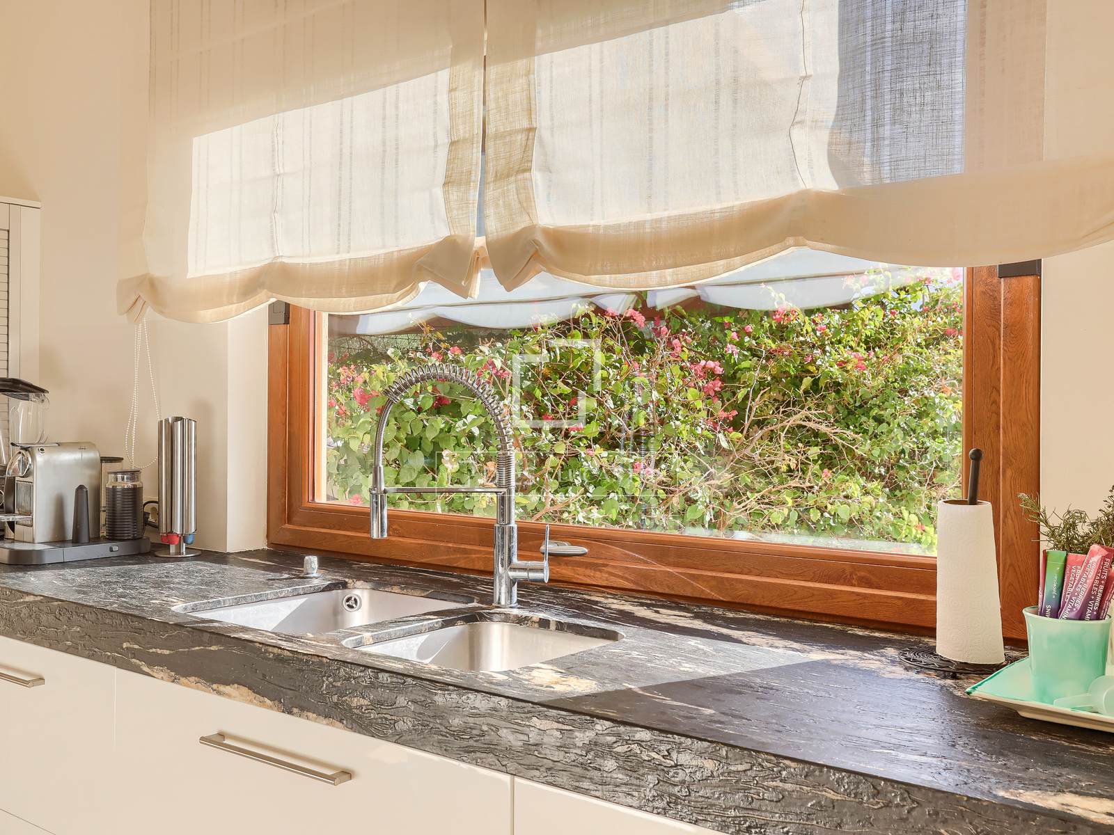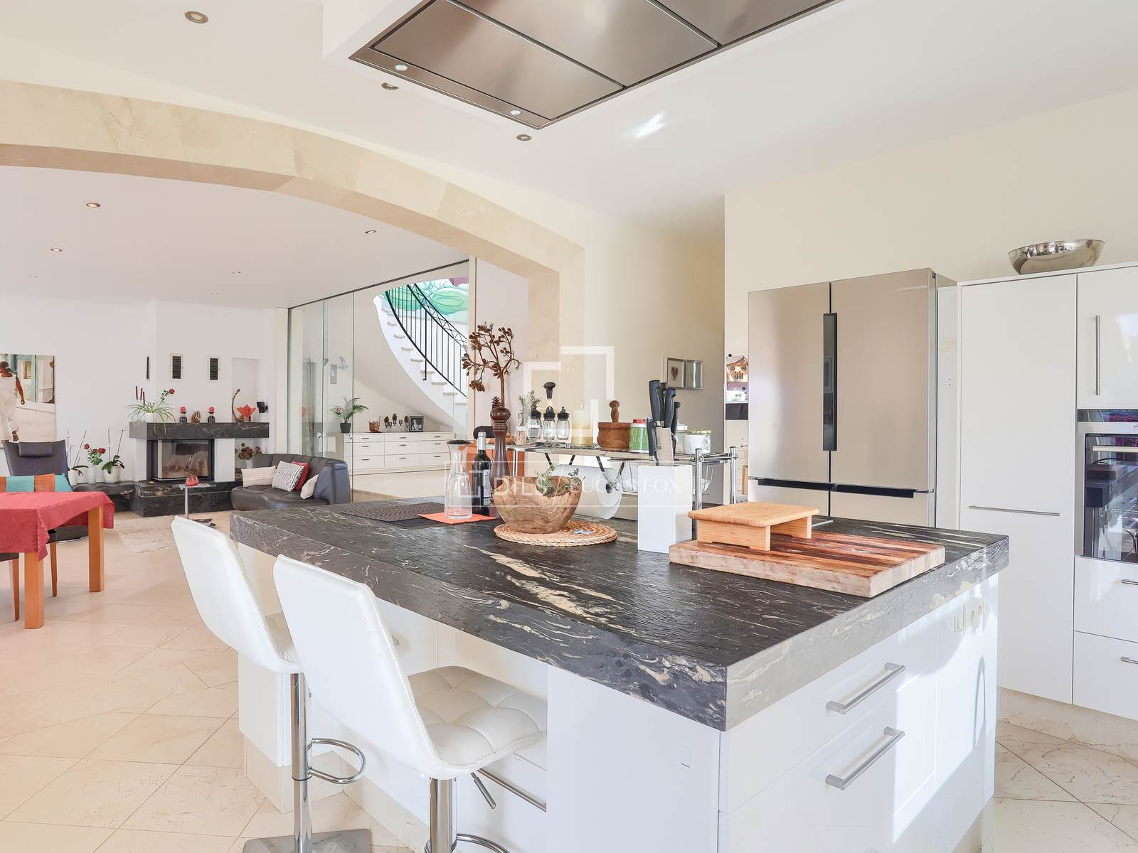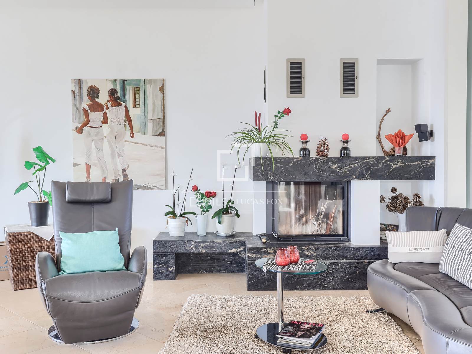 No exterior, o jardim paisagístico circunda uma piscina aquecida de 10 x 5 metros com chuveiro externo, oferecendo um ambiente tranquilo e máxima privacidade. Comodidades modernas, como aquecimento de piso com bomba de calor ar-água, ar condicionado quente e frio, vigas de madeira expostas, lareira, vidros duplos, armários embutidos e sistema automático de irrigação do jardim, garantem um alto padrão de vida durante todo o ano. Uma garagem coberta oferece estacionamento conveniente.