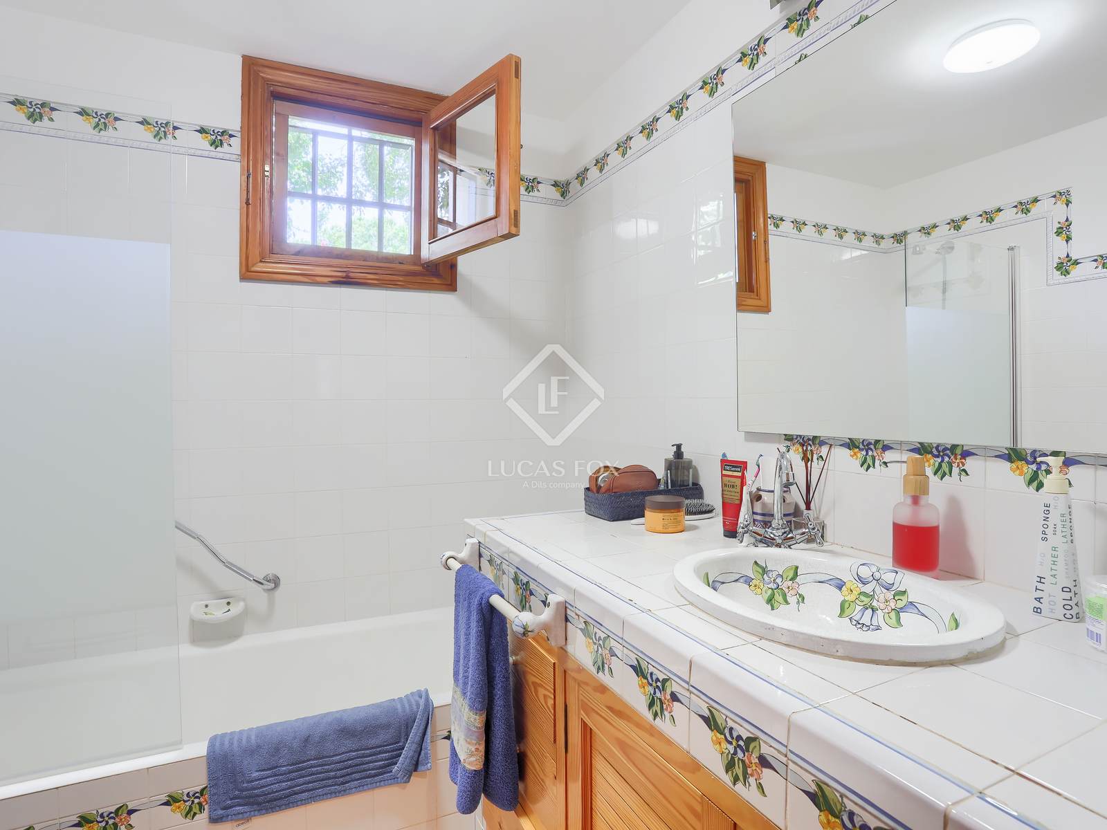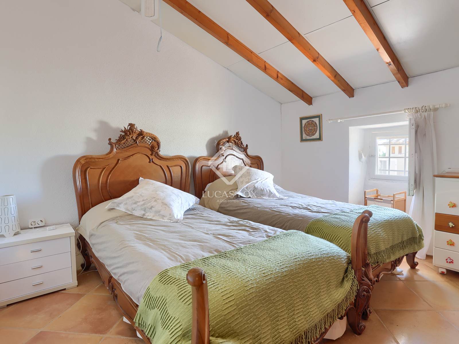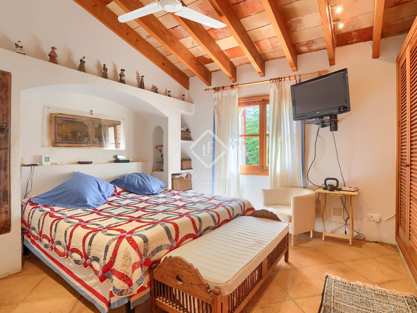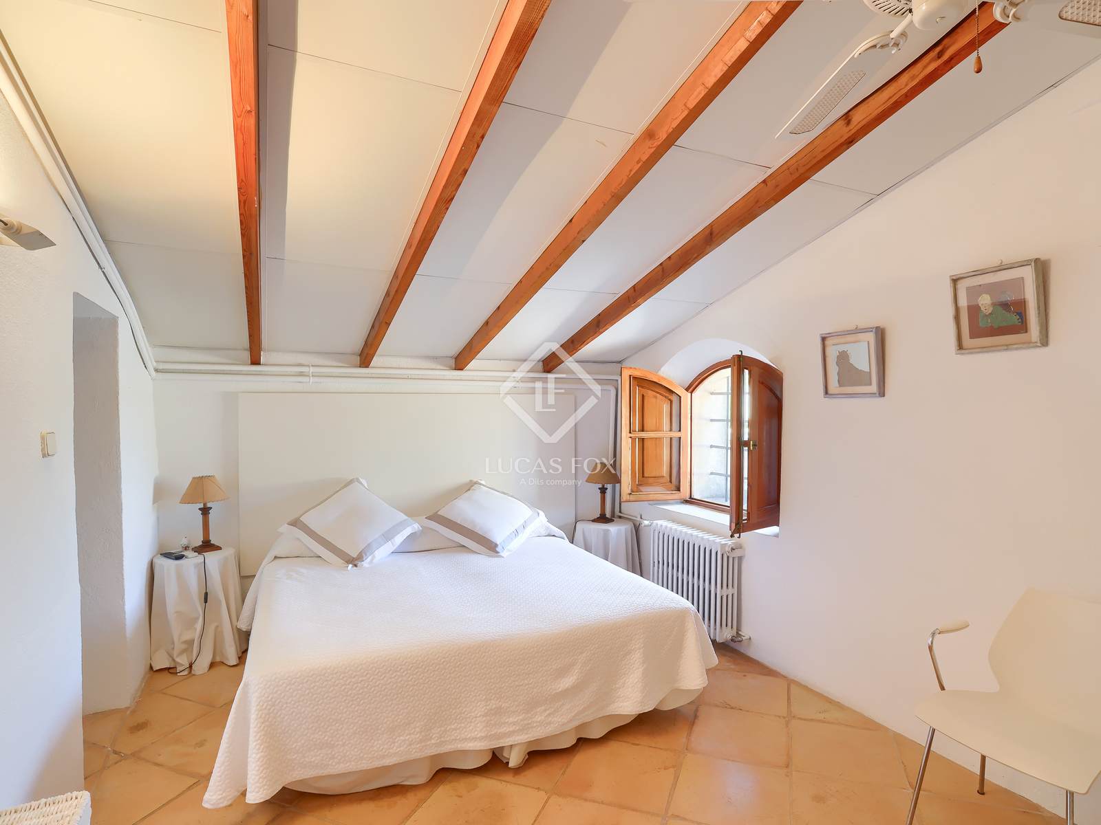 A casa principal possui cinco quartos e quatro banheiros, além de um quarto de empregada com banheiro privativo e um estúdio separado com cozinha e banheiro, ideal para hóspedes ou funcionários. No térreo, há uma aconchegante sala de estar com lareira, área de jantar, cozinha totalmente equipada e outros espaços projetados para relaxamento. Um dos quartos no andar de cima possui um amplo terraço ensolarado voltado para sudoeste, com vistas panorâmicas deslumbrantes da Serra de Tramuntana.