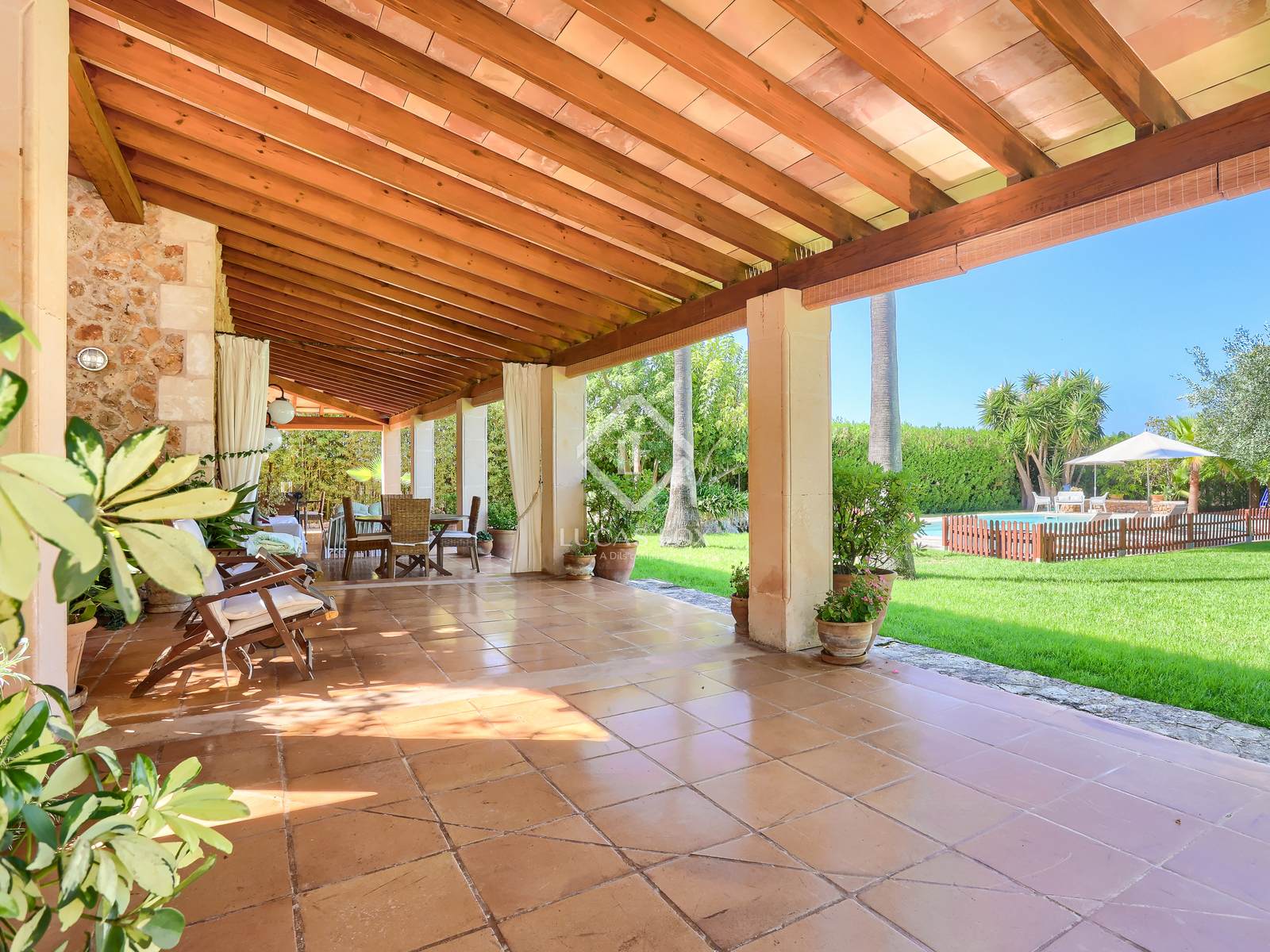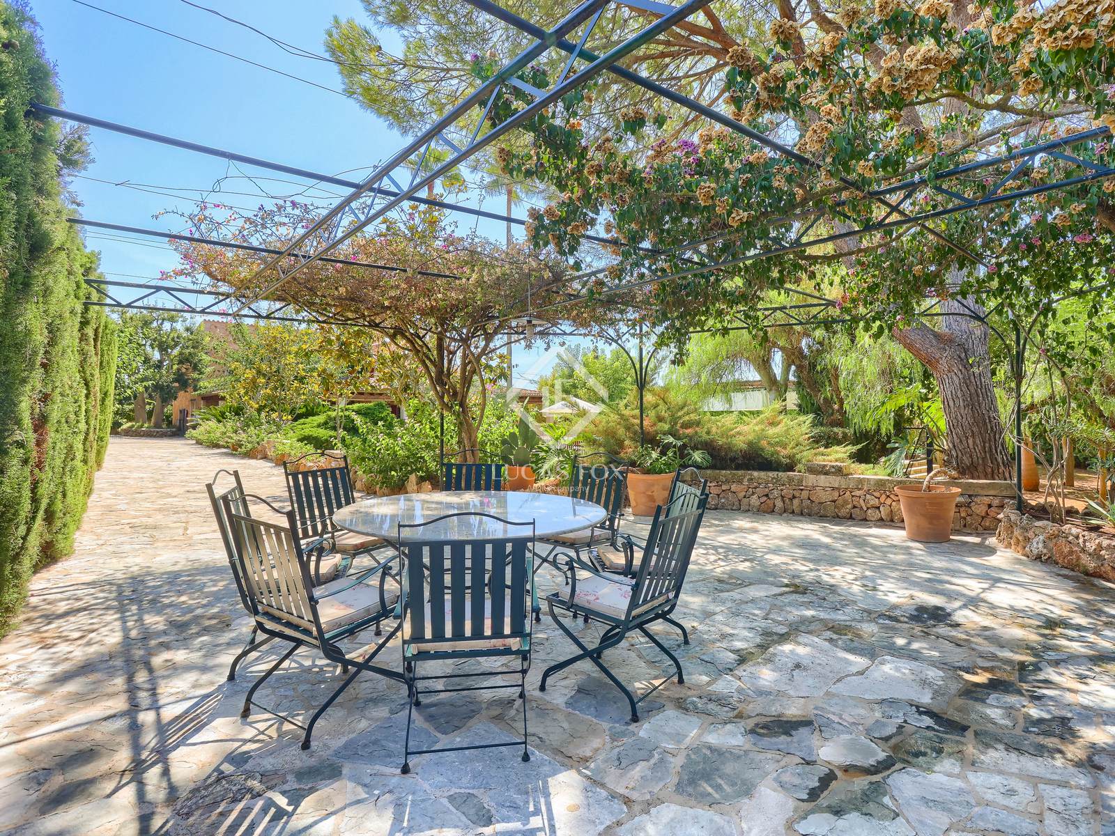 Charmosa chácara em Santa Maria com 5 quartos, casa de hóspedes, piscina e jardins exuberantes. Inclui painéis solares, lareiras, ar-condicionado e um estúdio. A apenas 15 minutos de Palma, perfeita para famílias com vista panorâmica de Tramuntana.