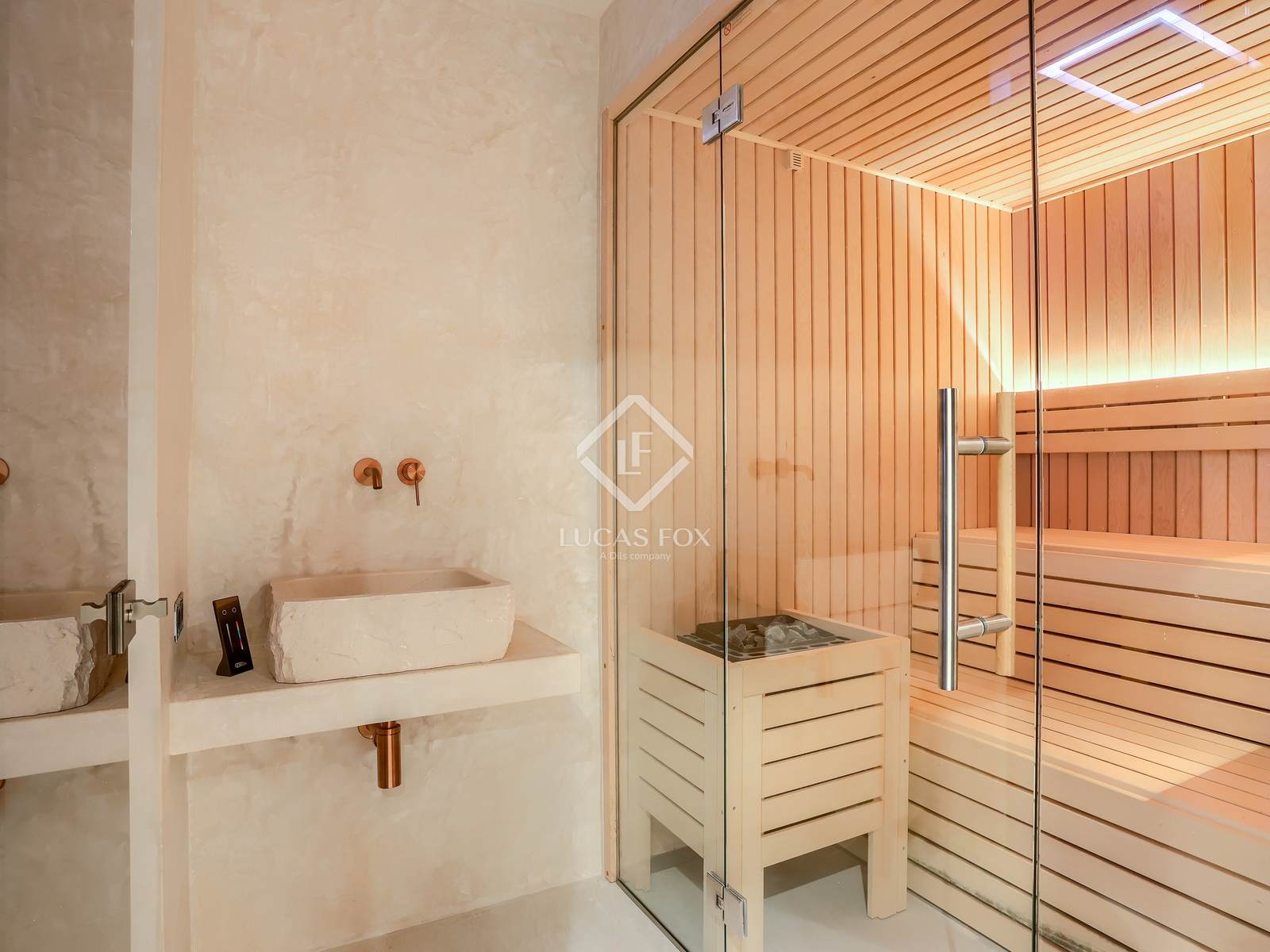 Os espaços ao ar livre foram cuidadosamente projetados para refletir o ritmo da vida maiorquina. Uma generosa piscina de mais de 67 metros quadrados convida a longas tardes de verão, enquanto varandas e pérgolas sombreadas criam cenários perfeitos para refeições ao ar livre ou para relaxar com os amigos. Os jardins são paisagísticos com oliveiras, pomares de frutas cítricas e uma pequena horta, realçando a sensação de imersão no charme autêntico da ilha. Muros de pedra, calçadas naturais e detalhes em madeira trazem aconchego e textura, garantindo que a vila se integre harmoniosamente ao entorno.