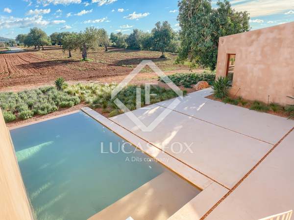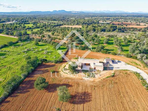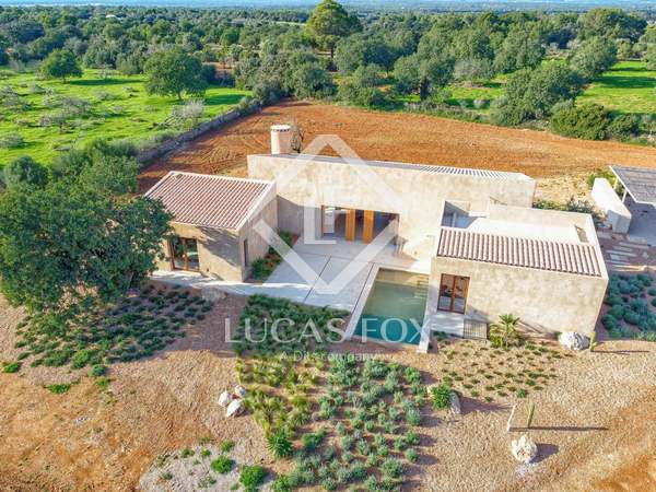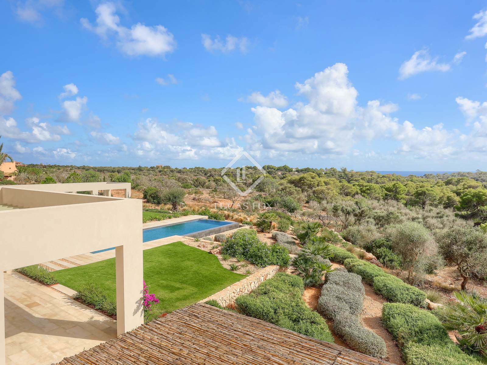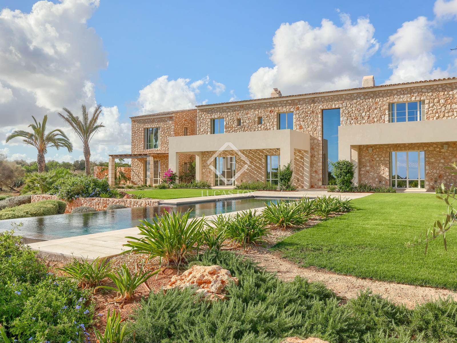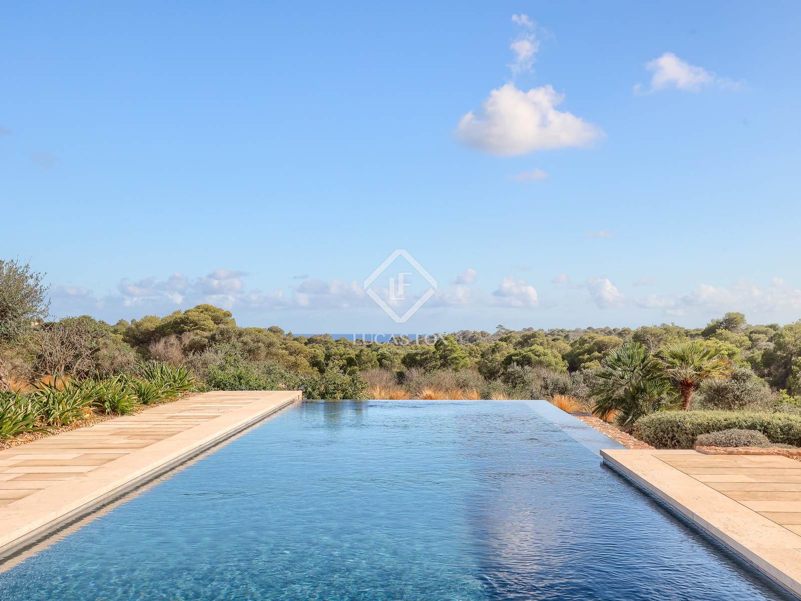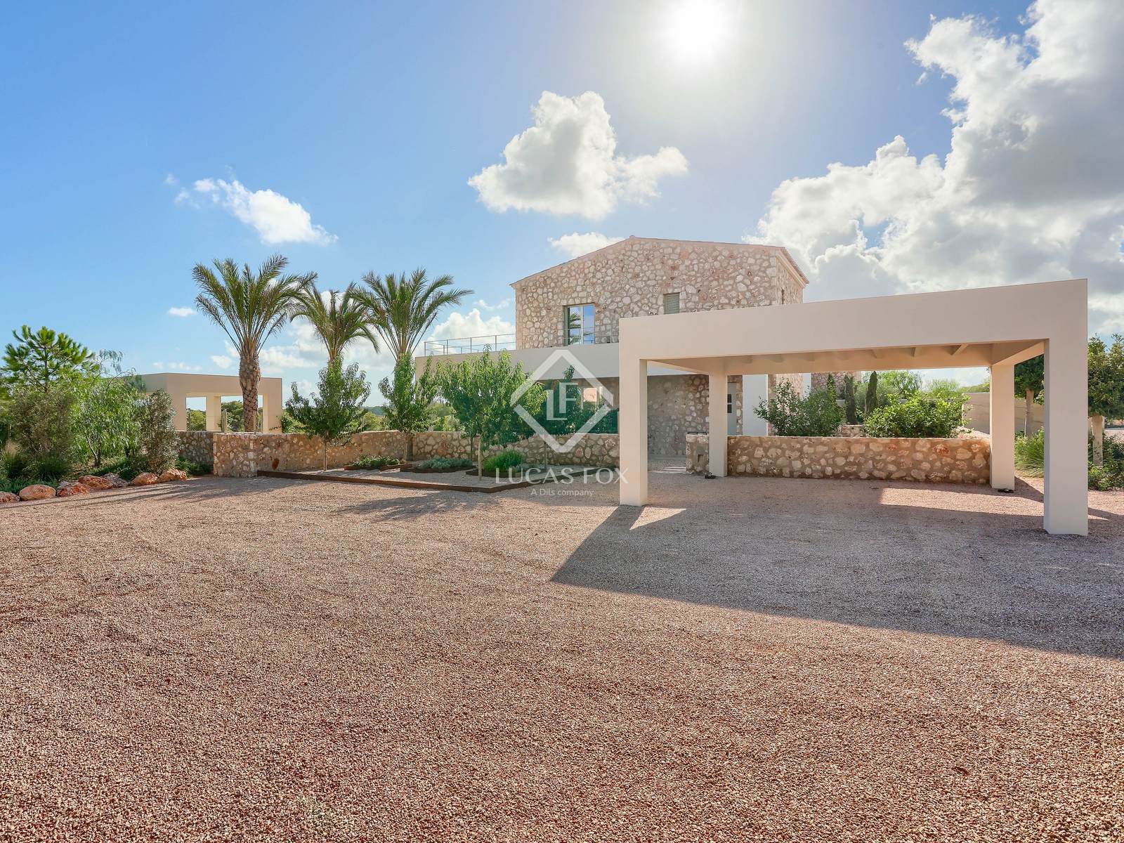 Elegante vila nova em terreno de 15.000 m², com 6 quartos com banheiro privativo, áreas de estar espaçosas, terraços, piscina e jardins paisagísticos com oliveiras e árvores cítricas, a poucos minutos de Cala Llombards.