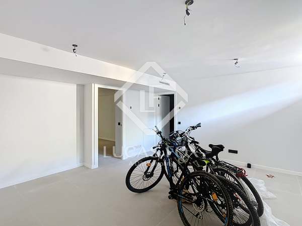 O edifício distribui-se por vários pisos. No rés-do-chão encontra-se uma divisão com acesso independente, utilizada como loja, a porta de acesso à casa e um terceiro acesso à garagem e armazém de 125 m² com logradouro. É possível integrá-lo em um único ambiente de aproximadamente 200 m².