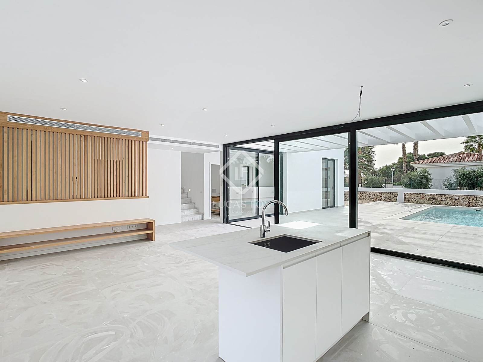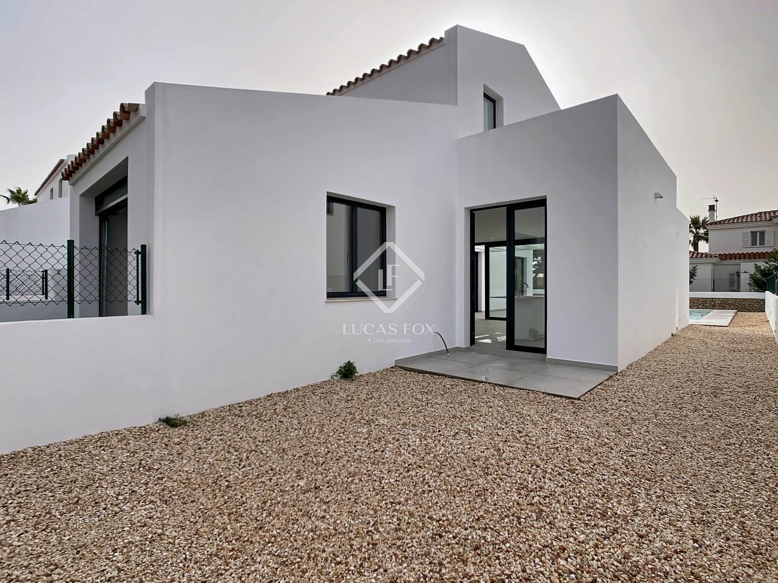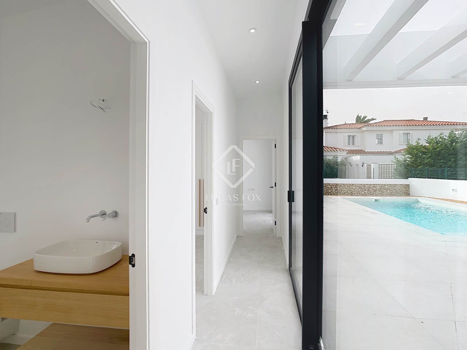 Lucas Fox apresenta esta belíssima moradia de estilo contemporâneo, recém-construída, com 185m² num terreno de 625m², na prestigiada urbanização Son Blanc, no município de Ciutadella de Menorca.