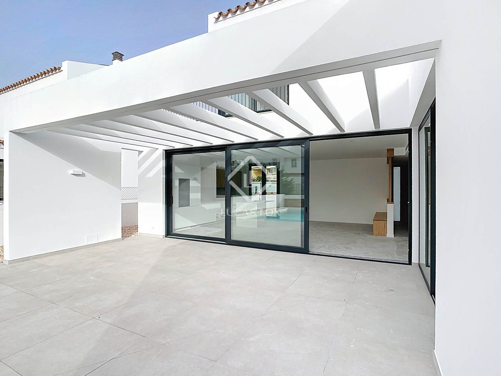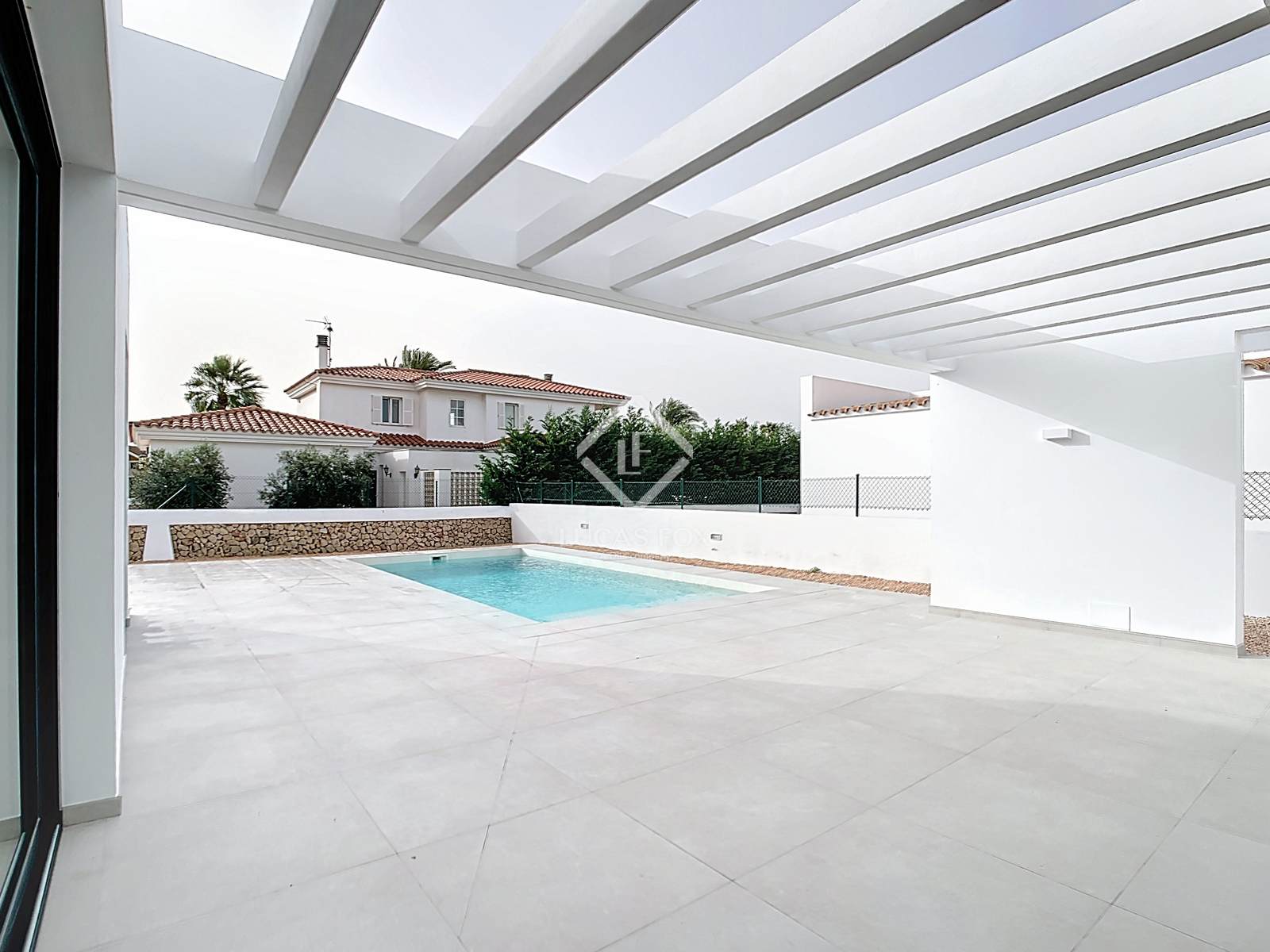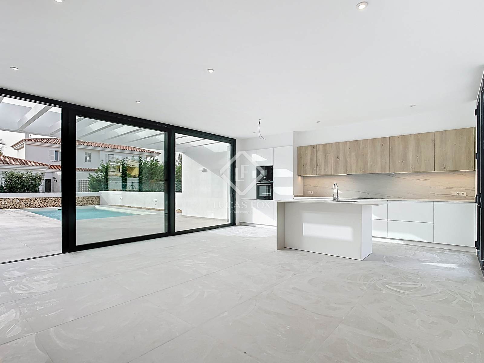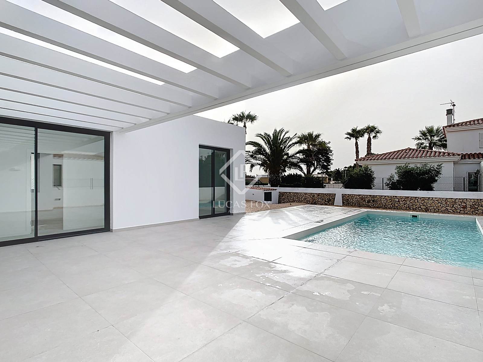 Lucas Fox apresenta esta belíssima moradia de estilo contemporâneo, recém-construída, com 185m² num terreno de 625m², na prestigiada urbanização Son Blanc, no município de Ciutadella de Menorca.