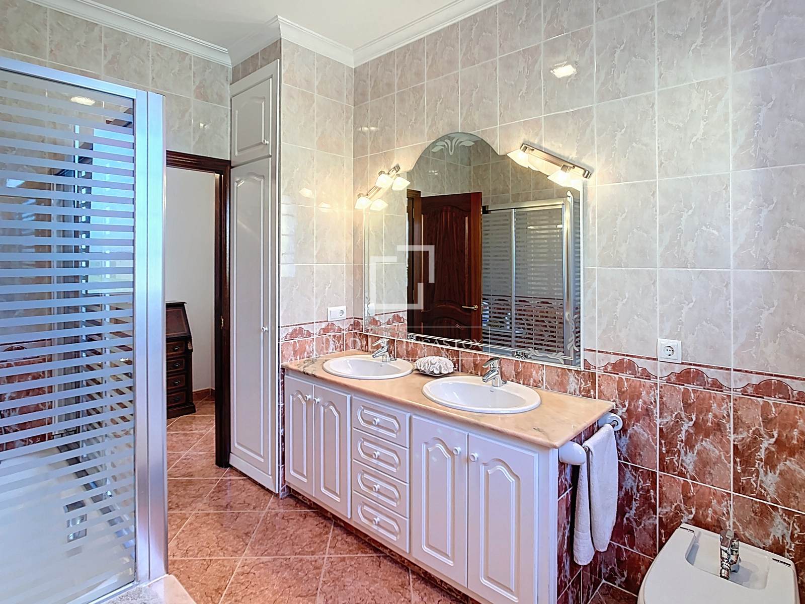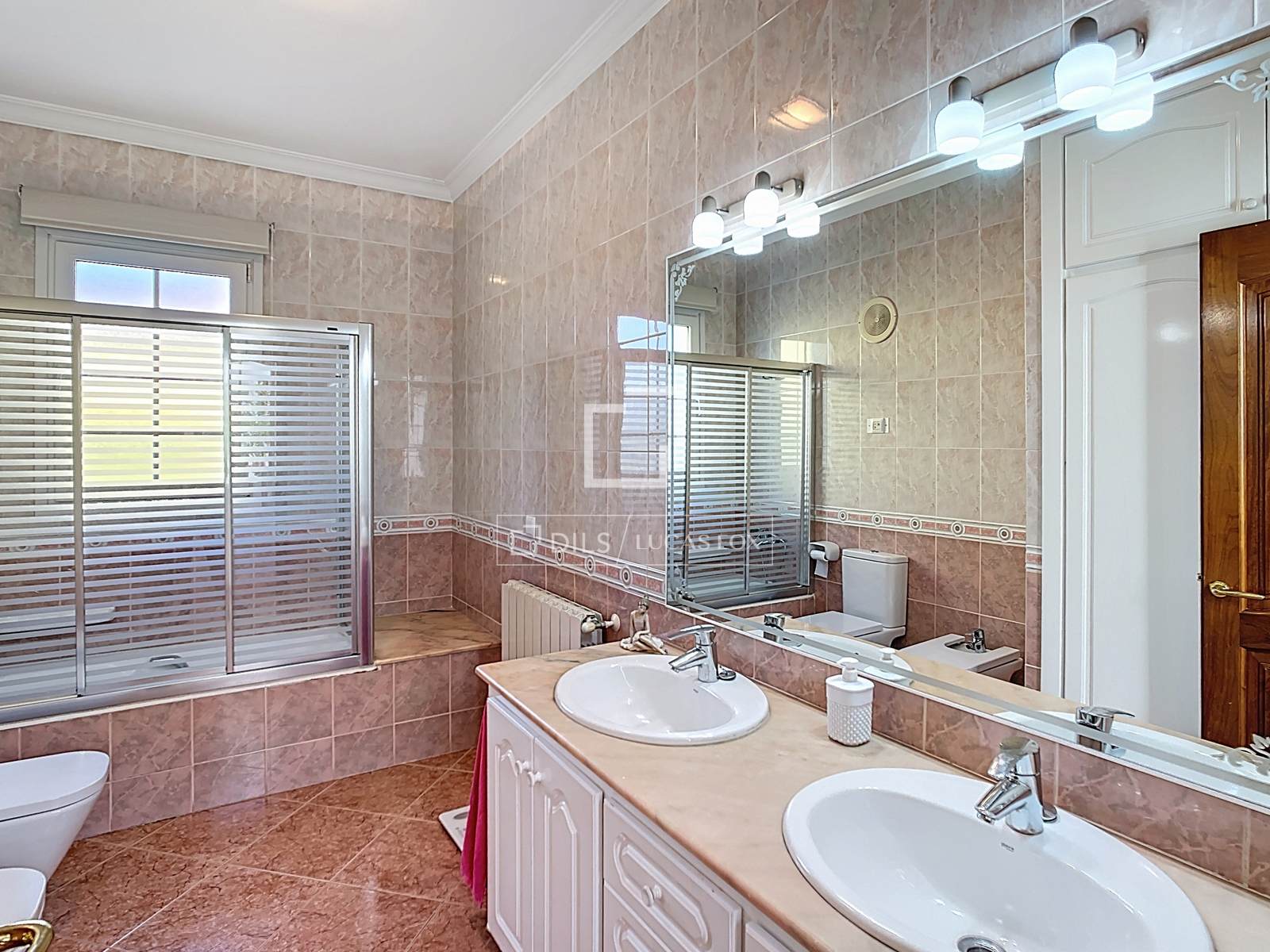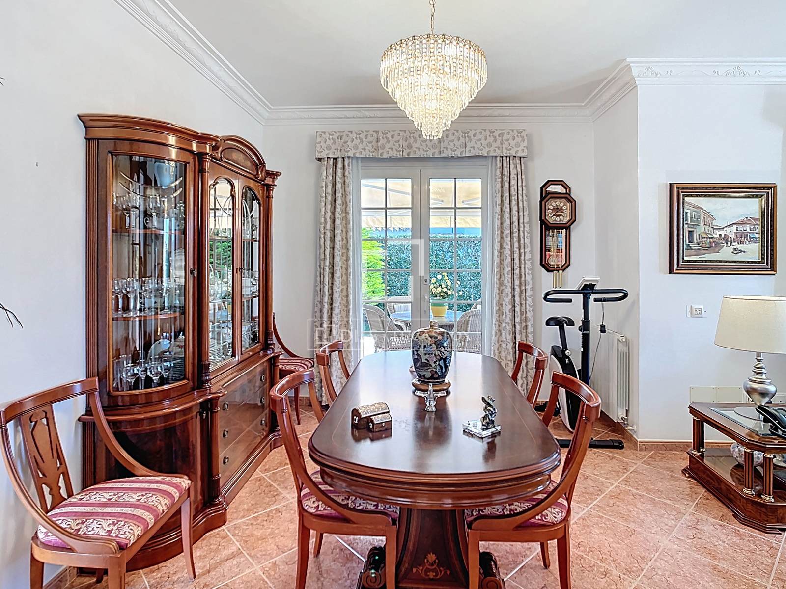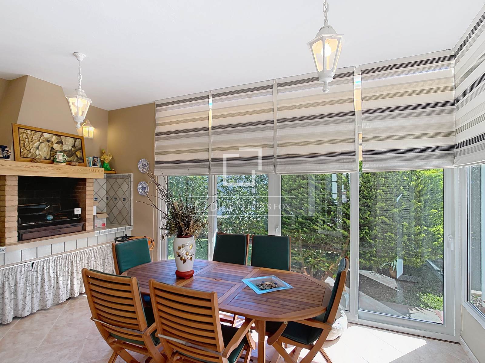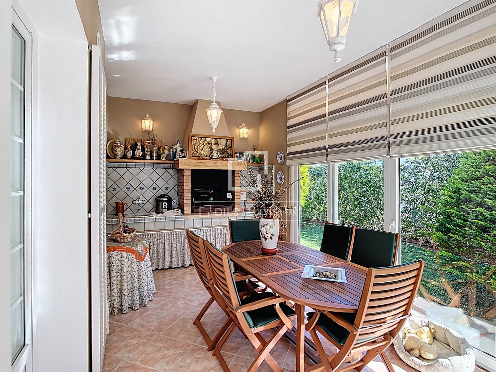 A casa está distribuída inteiramente no térreo. Ao entrar, você é recebido por um hall de entrada espaçoso e iluminado. A propriedade conta com uma suíte master, um escritório separado, um corredor que leva a dois quartos de casal que compartilham um banheiro amplo, uma sala de estar/jantar com acesso a um terraço coberto, uma cozinha espaçosa e totalmente equipada com copa e acesso a um pátio interno que inunda todo o ambiente com luz natural, além de uma lavanderia. Da cozinha, você pode acessar uma área de jantar com churrasqueira totalmente envidraçada, com acesso a um agradável terraço coberto com vista para o jardim e a piscina, ideal para desfrutar de noites ao ar livre. Duas garagens com espaço para três veículos completam a propriedade.
