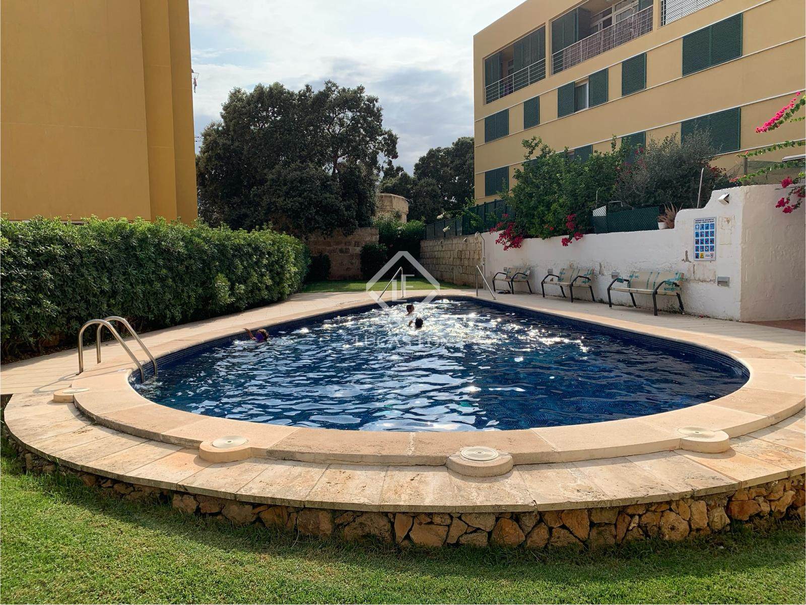 Lindo duplex com terraço, estacionamento e área comum com jardim, área infantil e piscina em Ciutadella de Menorca.