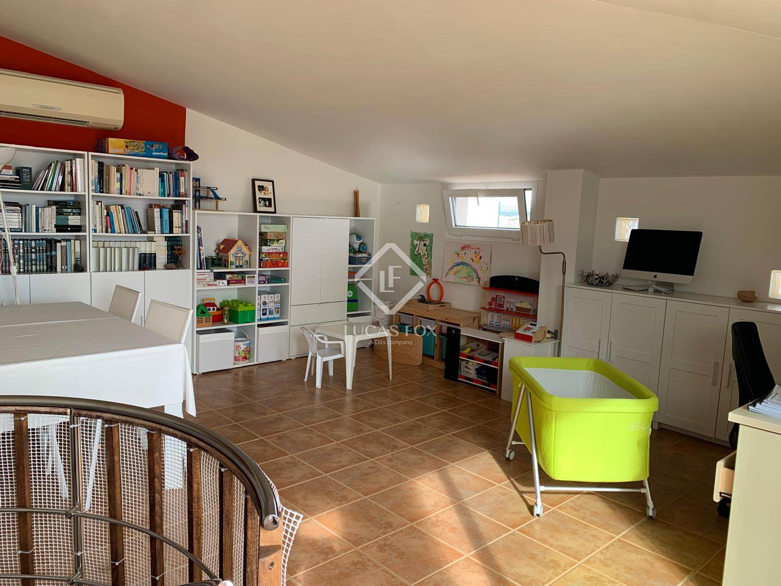 Do hall de entrada, uma bela escada em espiral leva ao andar superior de 32 m², que conta com uma sala de estar/escritório em plano aberto e acesso ao esplêndido terraço de 74 m² com churrasqueira integrada, ideal para refeições ao ar livre. O apartamento também dispõe de ar-condicionado e aquecimento.