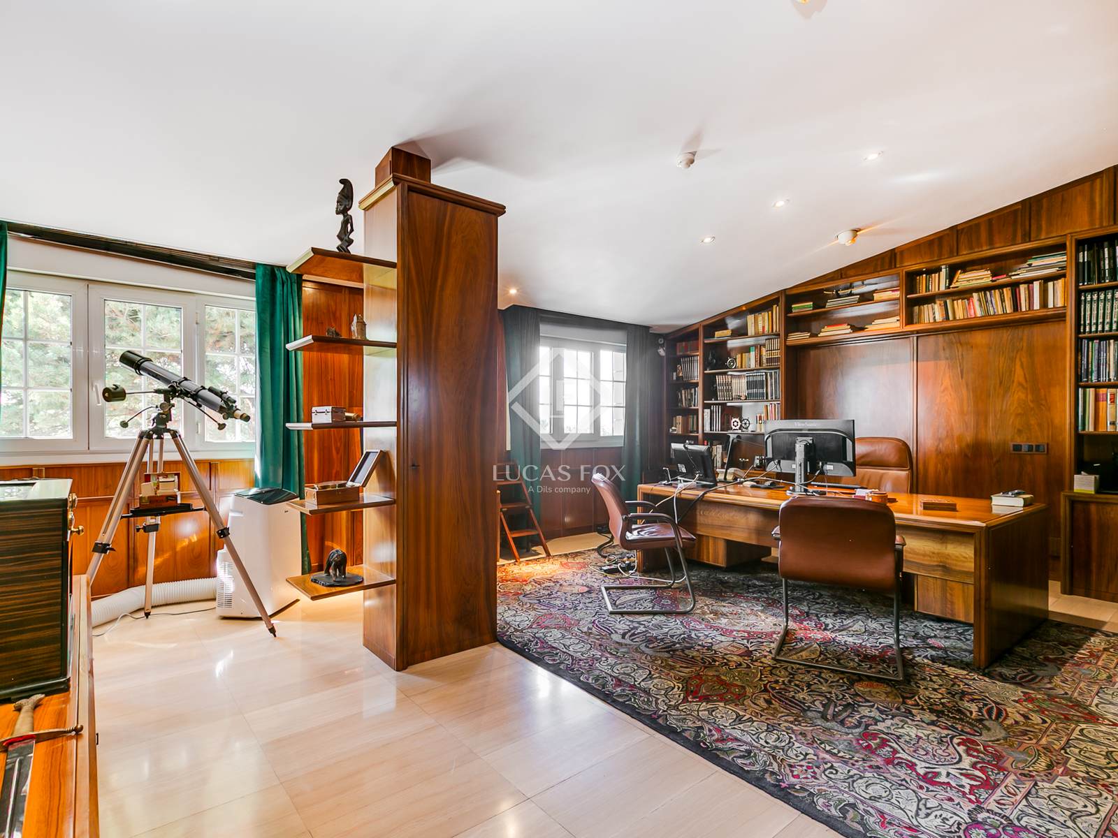 Localizada em uma prestigiosa área residencial ao norte de Madri, a propriedade possui mais de 2,6 hectares de terra — um terreno urbano de 6.563 m² — que abriga a residência principal e uma propriedade rural de 2 hectares com acesso direto ao vale do Rio Jarama, ideal para uso equestre ou como área de lazer privativa.