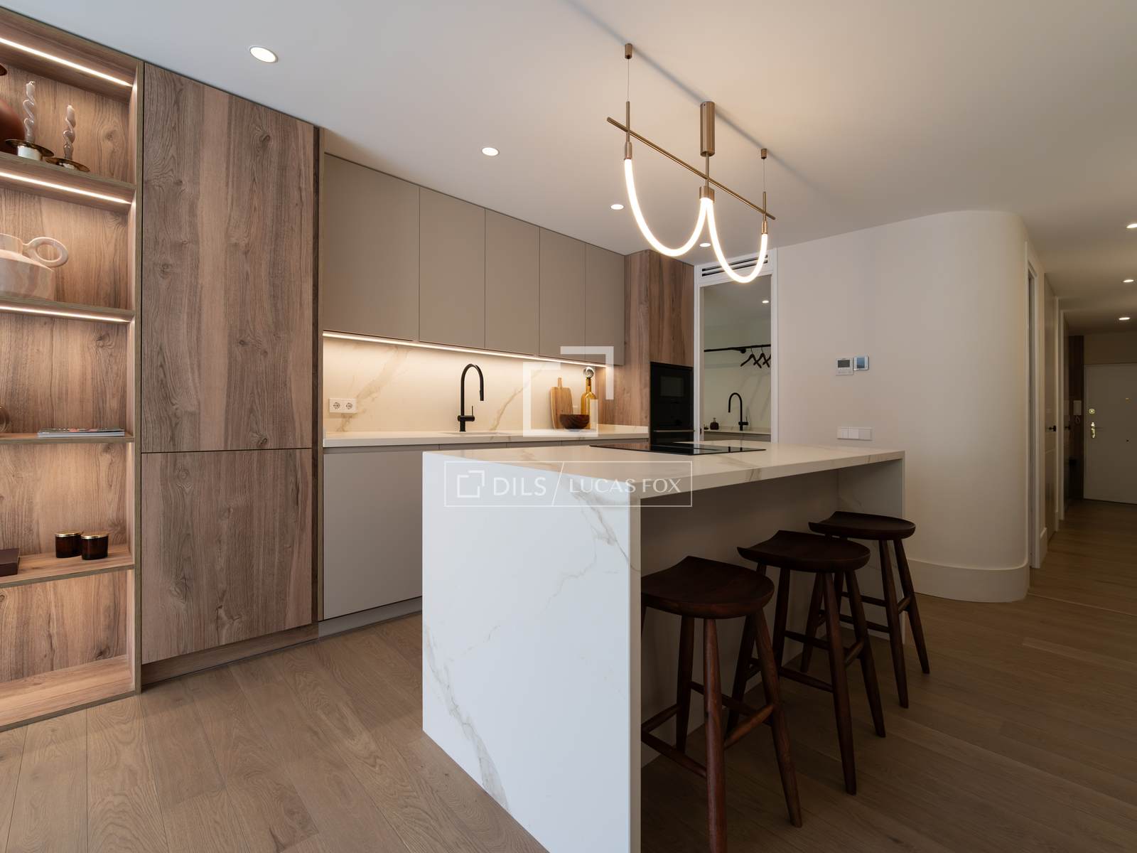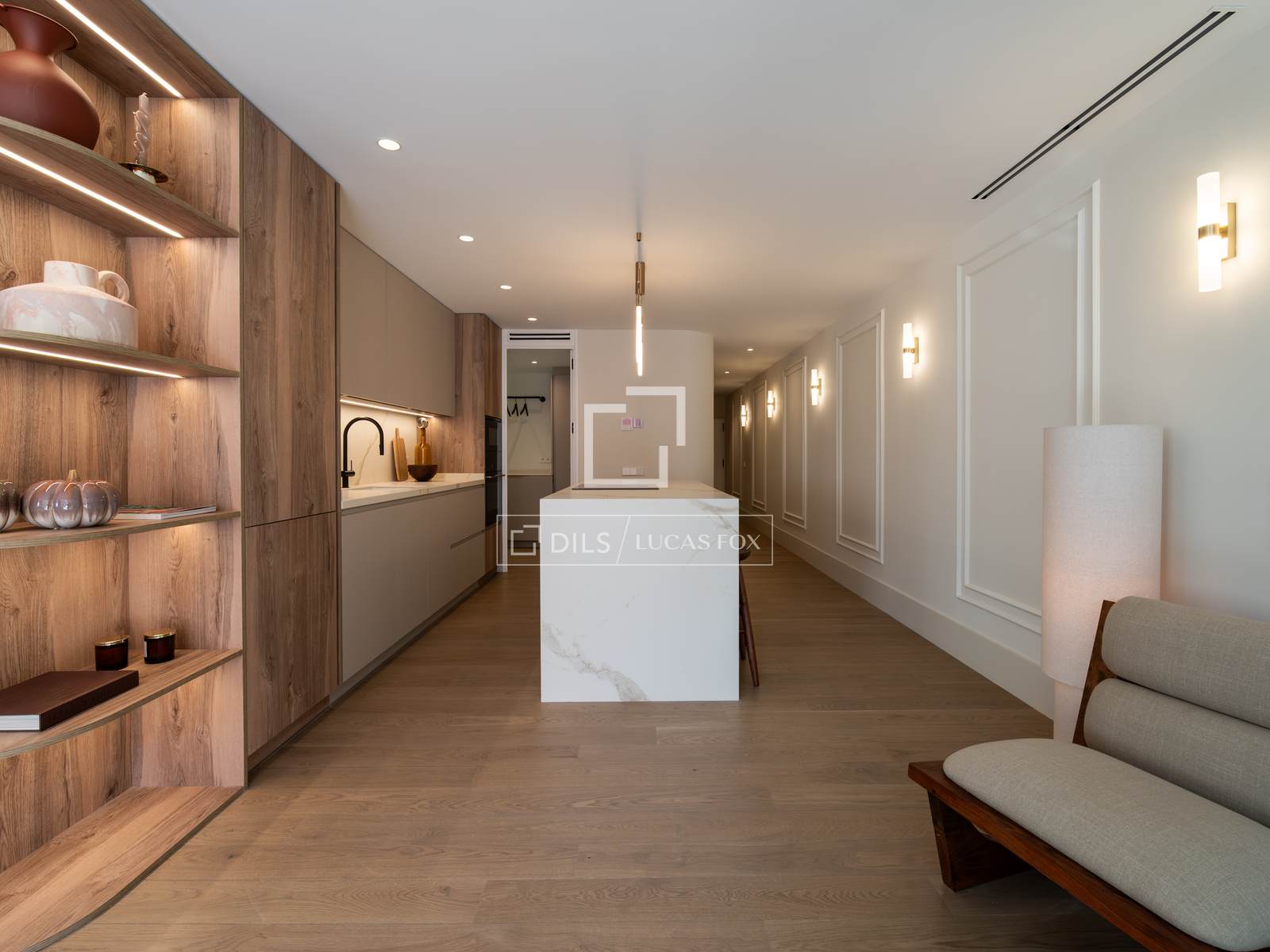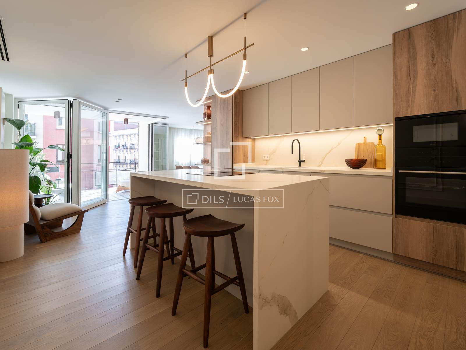 Com 163 m² de área útil e orientação sudoeste, este imóvel destaca-se pela excepcional luminosidade natural e pela planta inteligente. A espaçosa sala de estar e jantar, organizada em diversos ambientes distintos, integra-se harmoniosamente a uma moderna cozinha de design, com uma grande ilha central e equipada com eletrodomésticos de alta qualidade. Ambos os espaços abrem-se para um agradável terraço privativo, perfeito para desfrutar do ar livre com total privacidade.