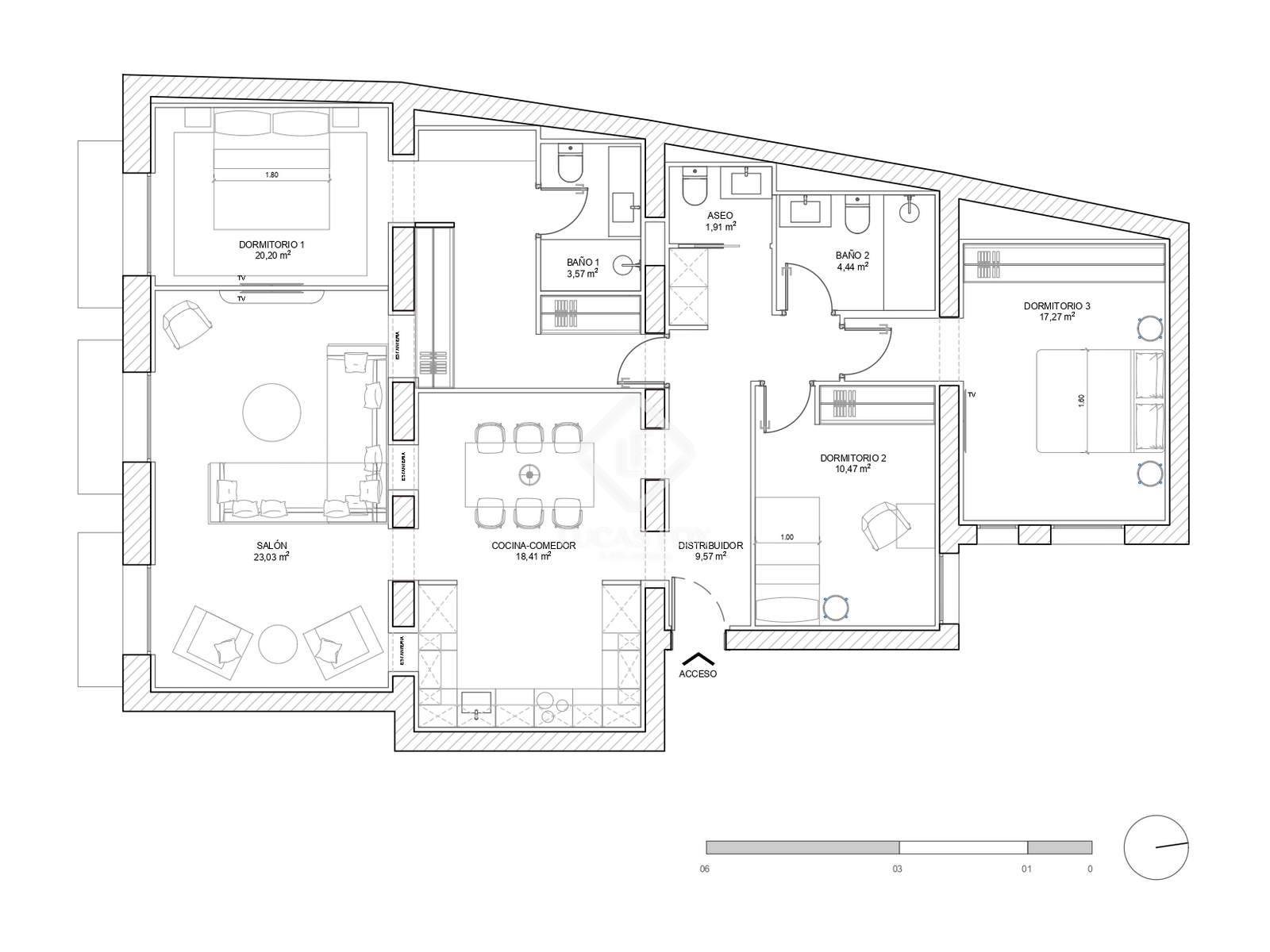 Apartamento reformado de 3 quartos à venda em Malasaña, Madri.
