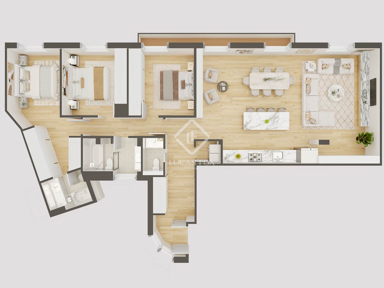 O apartamento está localizado em uma área privilegiada, a poucos metros do emblemático Parque do Retiro, com todos os serviços, transportes e uma vibrante oferta cultural e gastronômica a uma curta distância a pé.