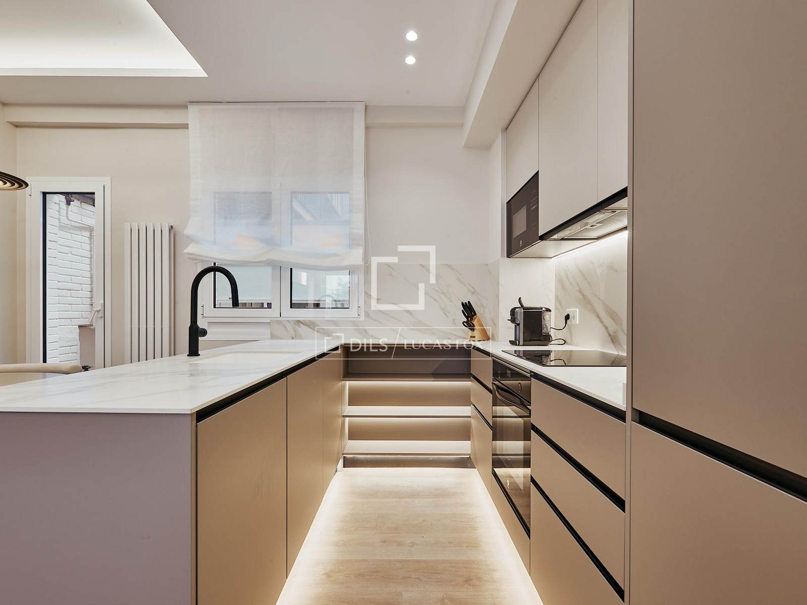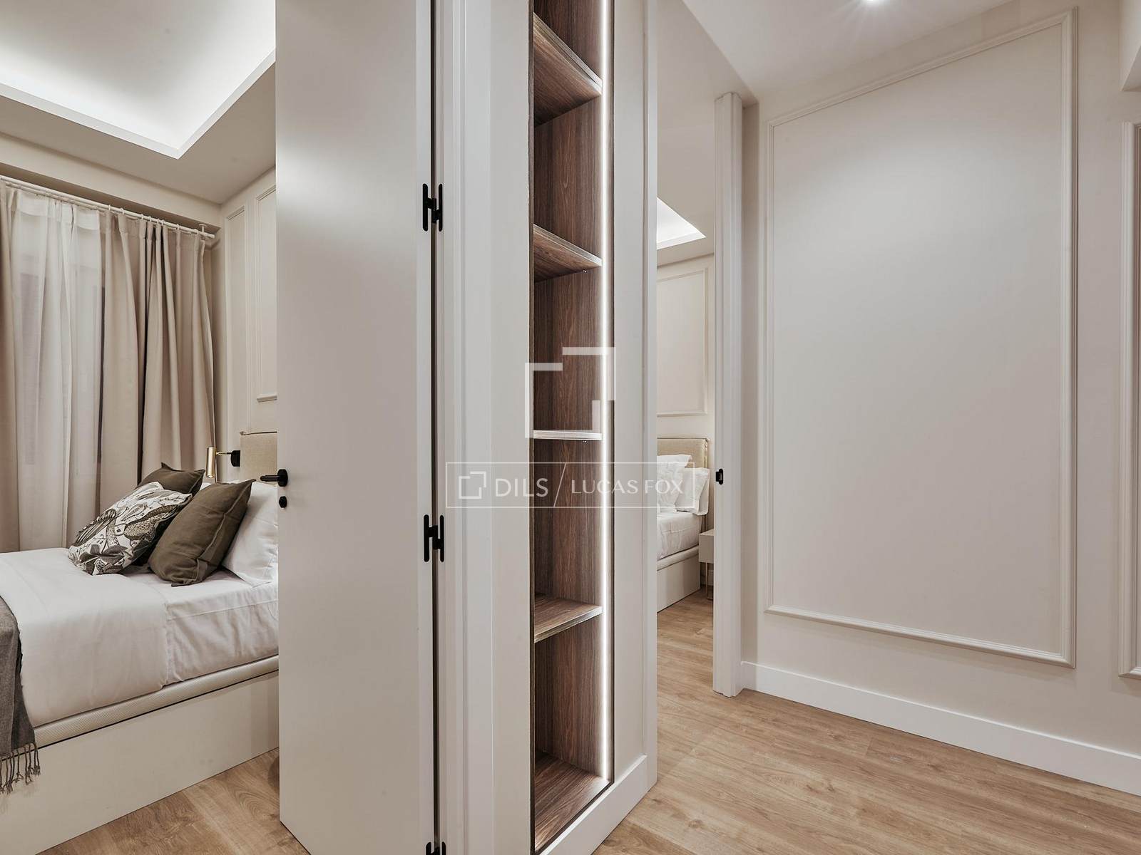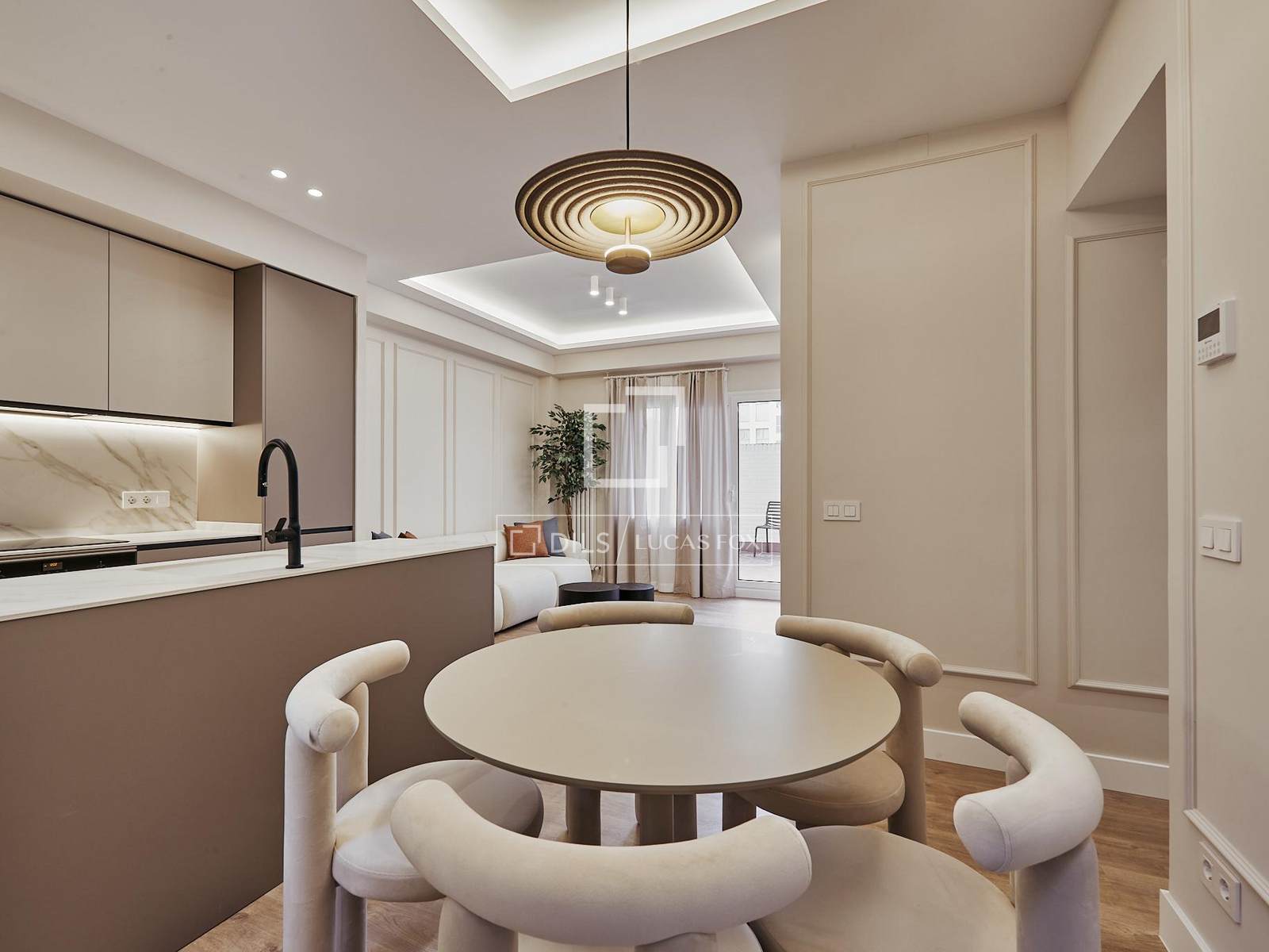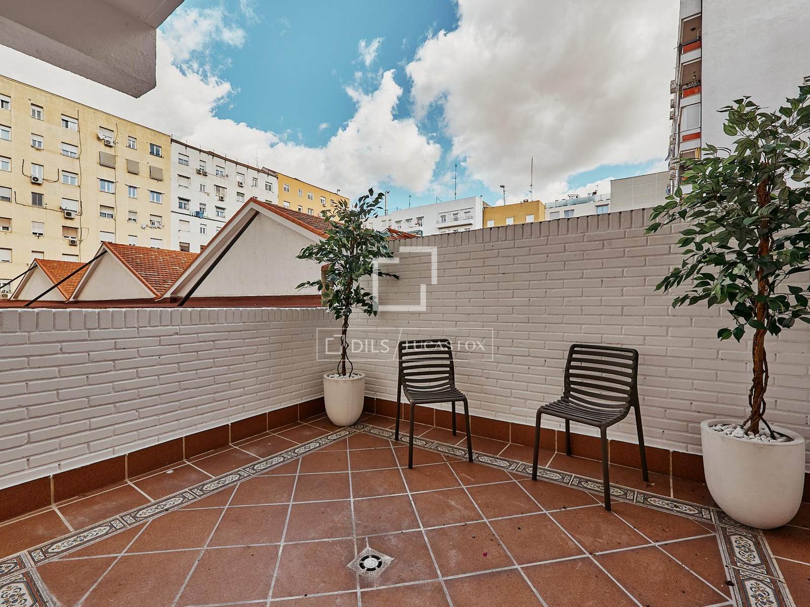 Elegante apartamento de 105 m² totalmente reformado, com 2 quartos, 2 banheiros completos e 3 terraços à venda no exclusivo bairro de Ibiza, próximo ao Parque do Retiro, em Madri.