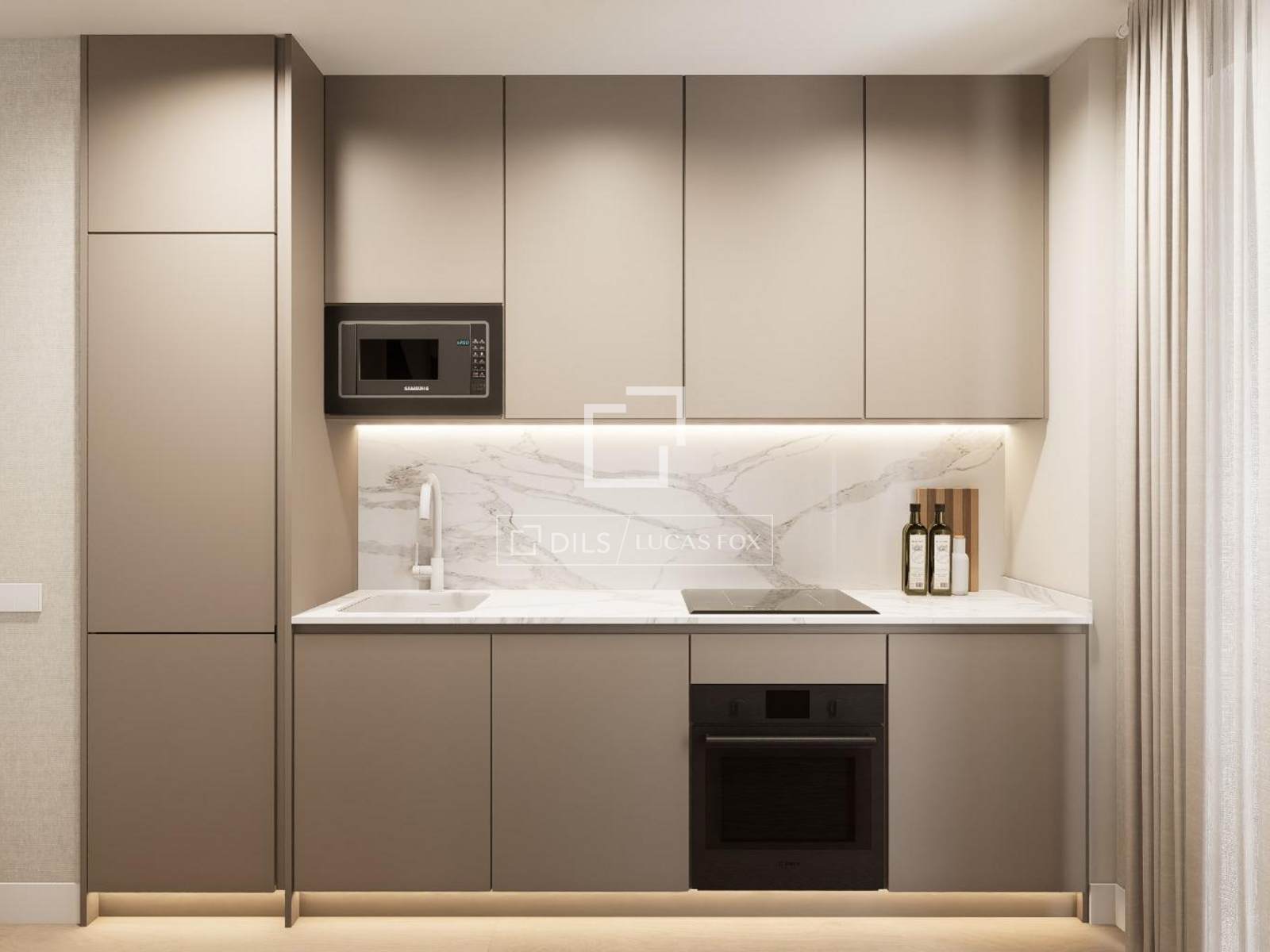 O apartamento é entregue totalmente mobiliado e conta com uma cozinha americana moderna e completa. Entre as comodidades, destacam-se o aquecimento central e o ar-condicionado split, garantindo excelente conforto durante todo o ano.