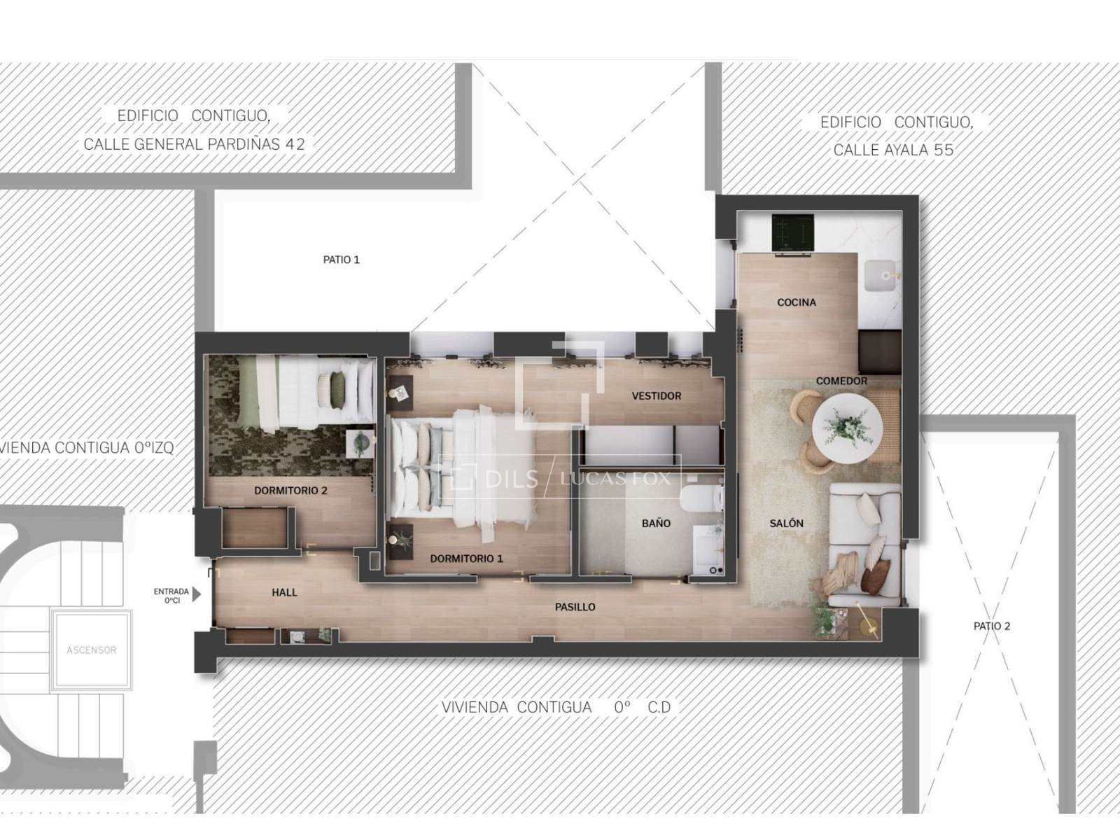 Lucas Fox apresenta este excelente imóvel localizado na rua General Pardiñas, no coração do bairro Goya, dentro do prestigiado distrito de Salamanca, em Madrid.