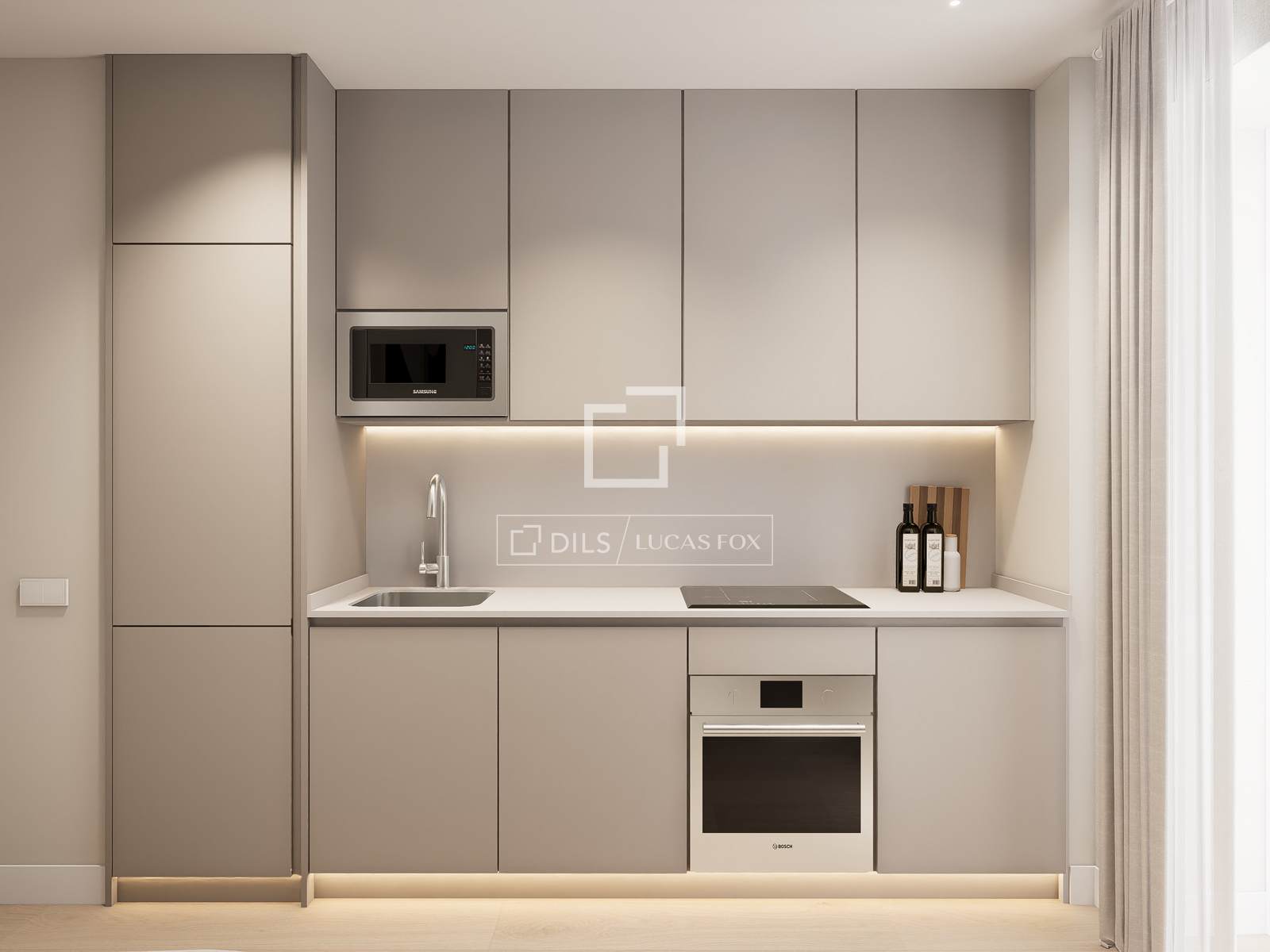 O apartamento é entregue totalmente mobiliado e dispõe de uma cozinha separada e completamente equipada. Entre os principais recursos, destacam-se o aquecimento individual a gás e o ar-condicionado split, proporcionando conforto durante todo o ano.