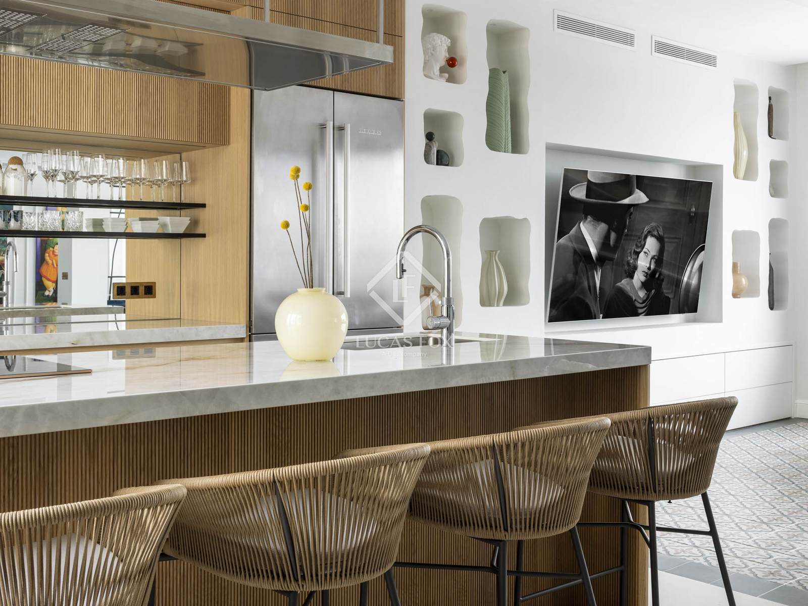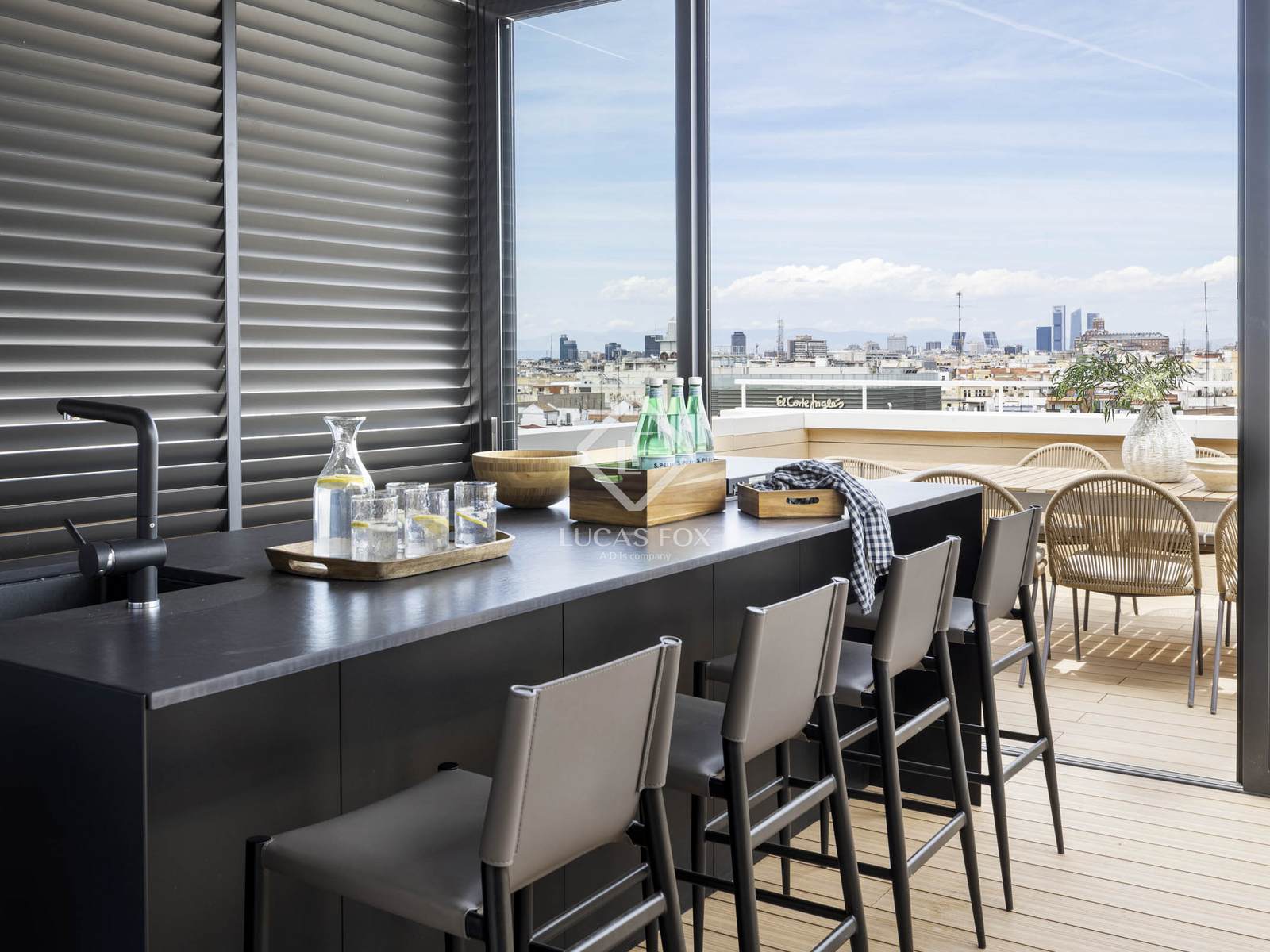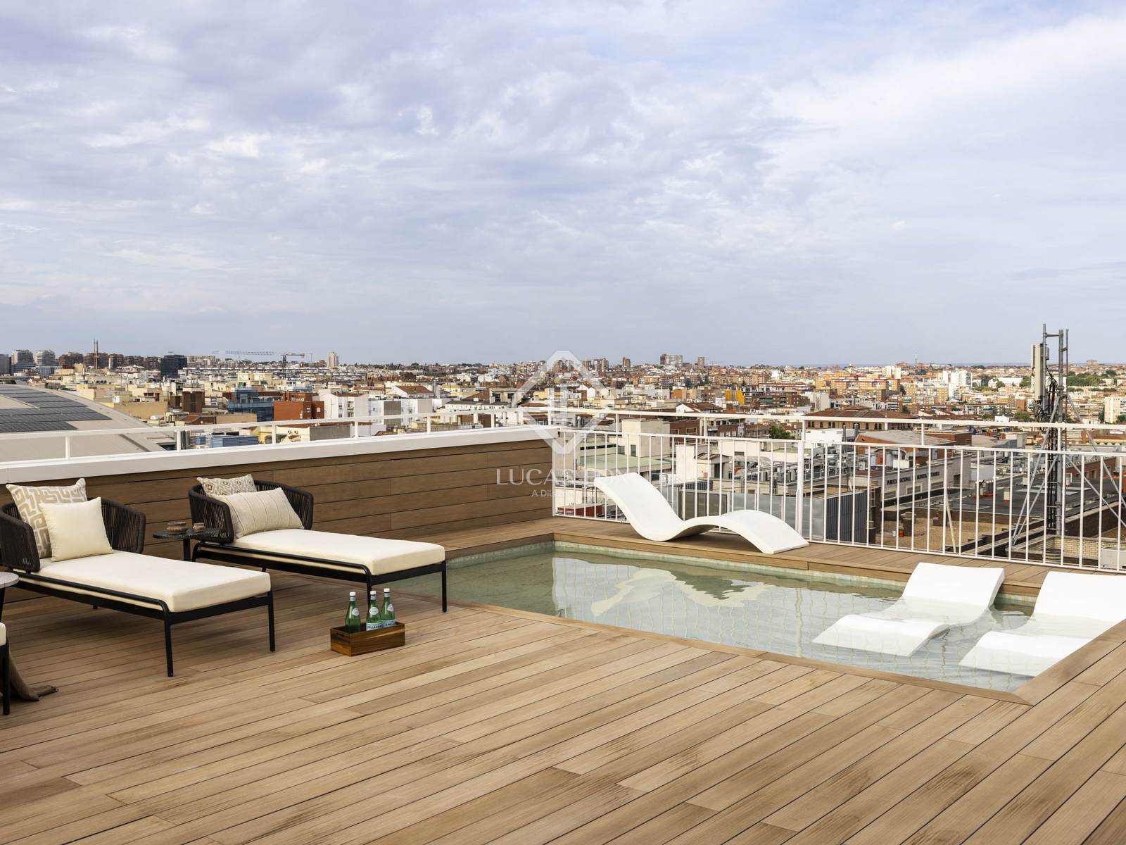 Cobertura à venda com reformas de design no bairro de Salamanca. Dispõe de vaga de estacionamento no local e um amplo terraço com cozinha compacta e piscina.