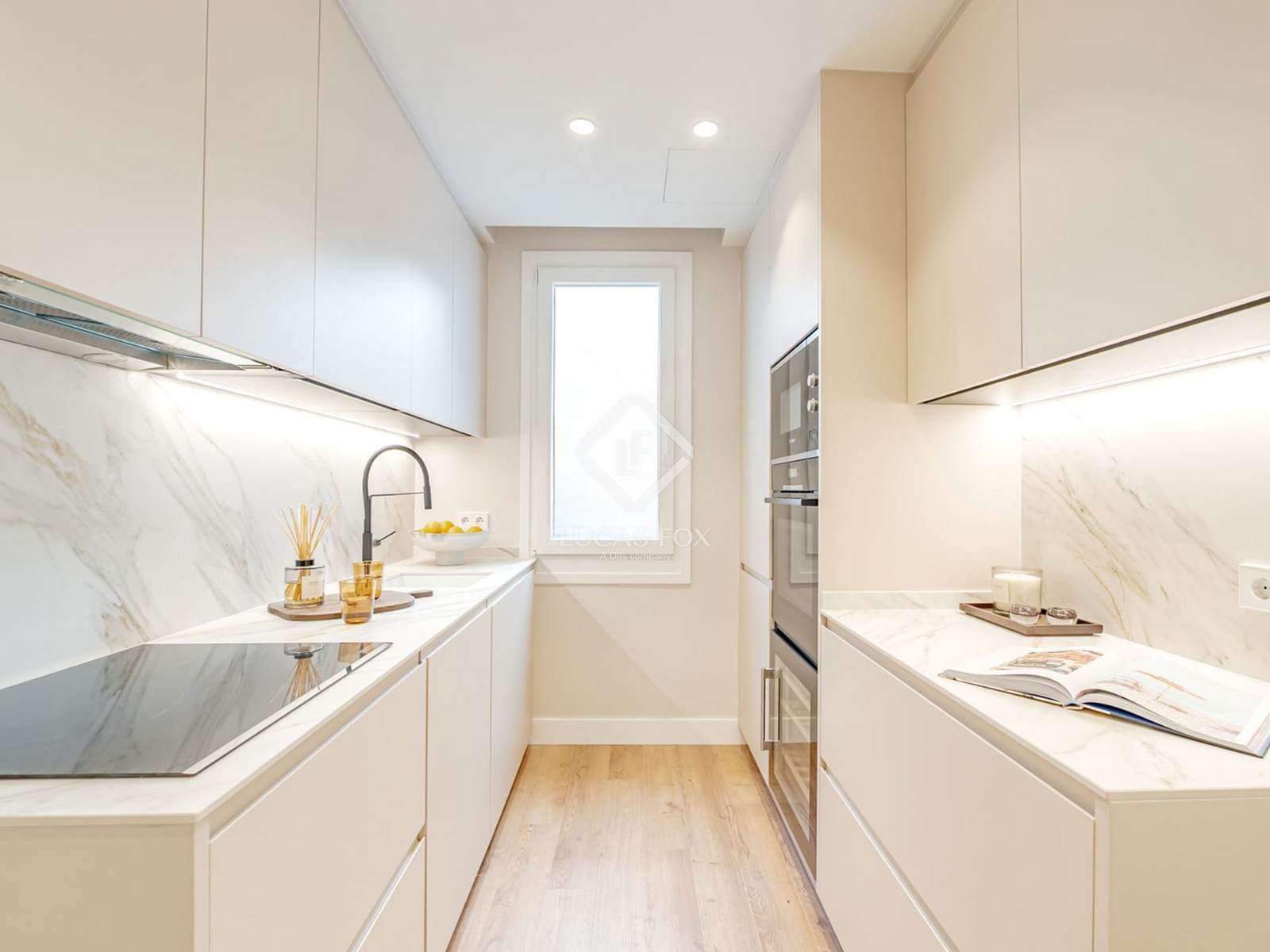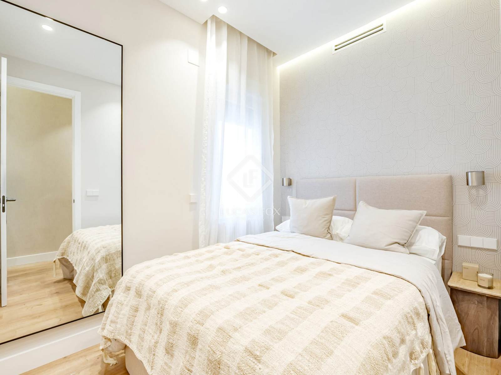Lucas Fox apresenta este apartamento exclusivo, renovado e mobiliado, em uma localização privilegiada no bairro de Salamanca, em Madri. O imóvel está situado no terceiro andar de um prédio clássico com elevador.