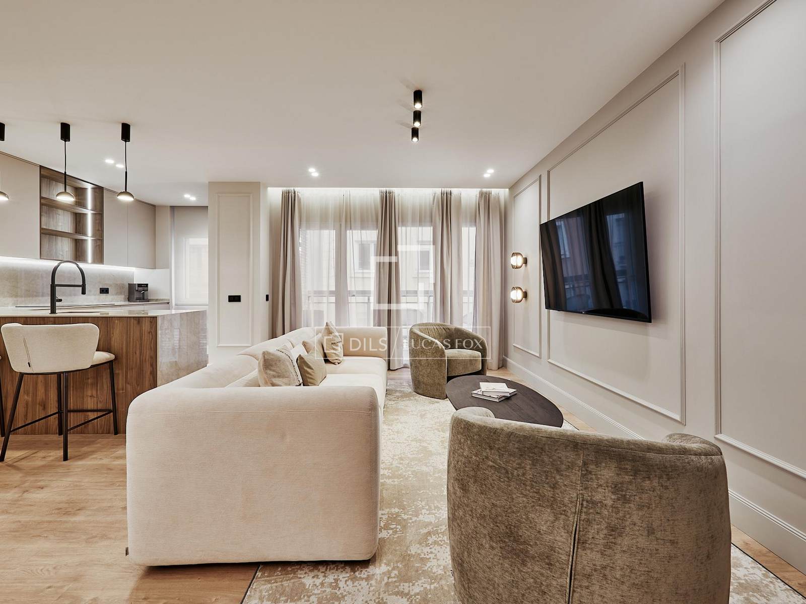 Apartamento de design elegante com 120 m², totalmente reformado, com 3 quartos, 2 banheiros e terraço, à venda no exclusivo bairro da Lista, distrito de Salamanca, Madri.