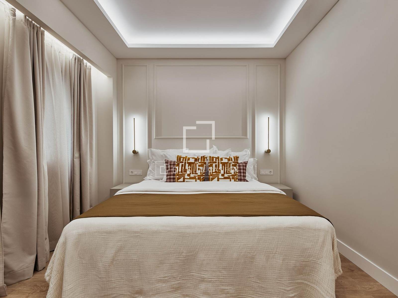 Localizado no quarto andar com acesso por elevador, o imóvel possui 134 metros quadrados de área útil e foi meticulosamente projetado para oferecer conforto, elegância e funcionalidade em todos os ambientes. Seu design de interiores mescla o estilo clássico madrilenho com uma estética contemporânea refinada, utilizando materiais de alta qualidade e uma paleta de tons neutros e aconchegantes que criam uma atmosfera luminosa e harmoniosa.