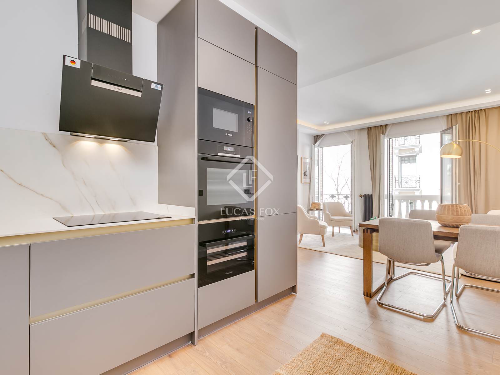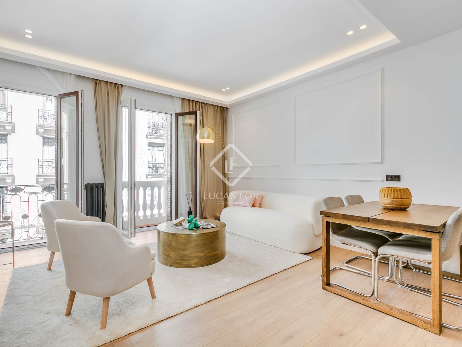 Lucas Fox apresenta este fantástico apartamento recém-reformado no prestigiado bairro de Recoletos, localizado em um edifício clássico com todo o charme da arquitetura tradicional e o conforto de uma casa moderna. Este imóvel iluminado e voltado para o oeste se destaca por suas duas varandas voltadas para a rua, que adicionam amplitude e luminosidade ao ambiente.