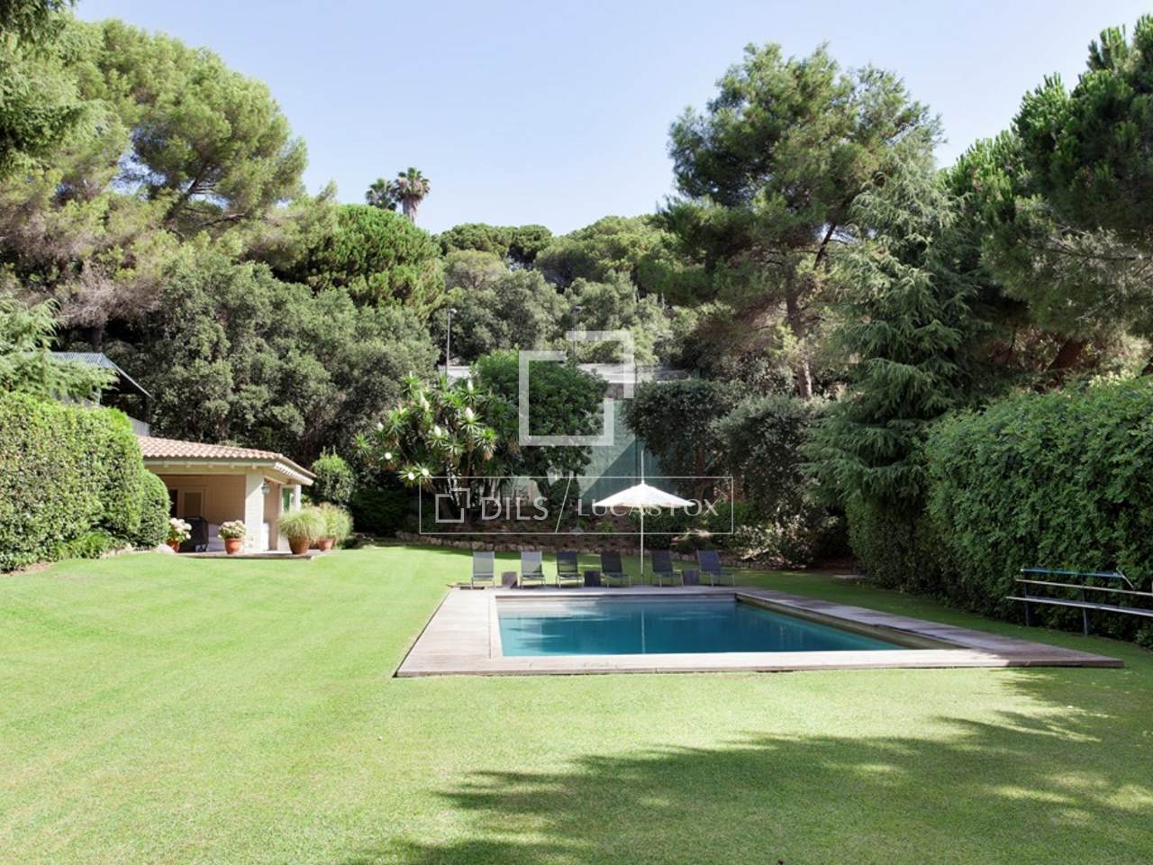 Участок, на котором расположена вилла, насчитывает 3.350 кв.м., на облагороженной территории есть открытые веранды, бассейн и летняя столовая.