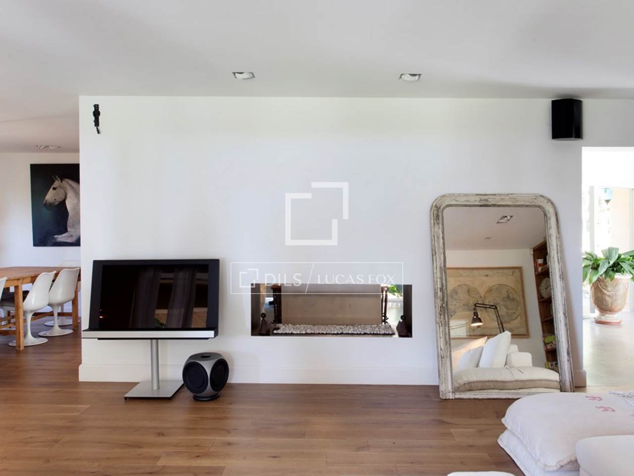 Вилла в продаже на северном побережье Барселоны, Маресме, интерьер в стиле минимализм с элементами эклектики, внешняя облицовка дома сохранена в первозданном виде. Дизайн дома был выполнен известным архитектором с использованием высококачественных материалов. Общая площадь дома составляет 370 кв.м., в нем три этажа.